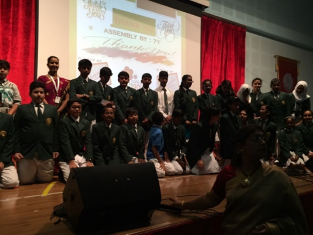 news and Khushi came up with the DPS news. The choir group of Jayeda, Huda, Varsha and Hana filled the beauty of love into the atmosphere with their melodious song. Ayshaniya delivered a speech on the topic “Not all of us can do great things but we can do small things with great love“ by Mother Teresa. It was an inspirational speech with the message that all of us can do small things with great love. All the students of class VII – G participated to present a skit on the topic given for the assembly. The message after the skit was presented by Rashi. Anamika came with the vote of thanks and invited the Activity Coordinator Ms. Deepa and Academic Coordinator Ms. Rachel to speak a few words about the assembly. They both appreciated all the students of class VII-G for their active participation. The assembly dispersed after the National Anthem by all students of class VII G. |