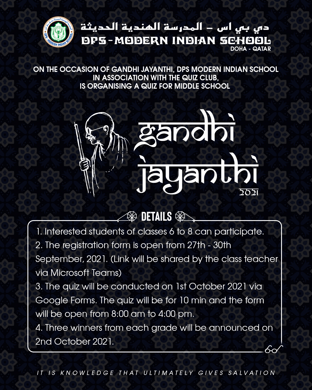 QUIZ CLUB ORGANISING QUIZ FOR GRADE VI-VIII ON THE OCCASION OF GANDHI JAYANTHI
