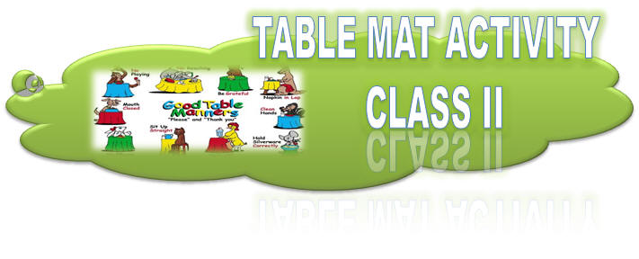 will be using during the break time. Pictures of fruits and vegetables were given to them. The students coloured the pictures beautifully and stuck it on the chart boards. The children learnt good table manners as well as healthy eating habits. It was learning through activity.....true to the spirit of DPS. |