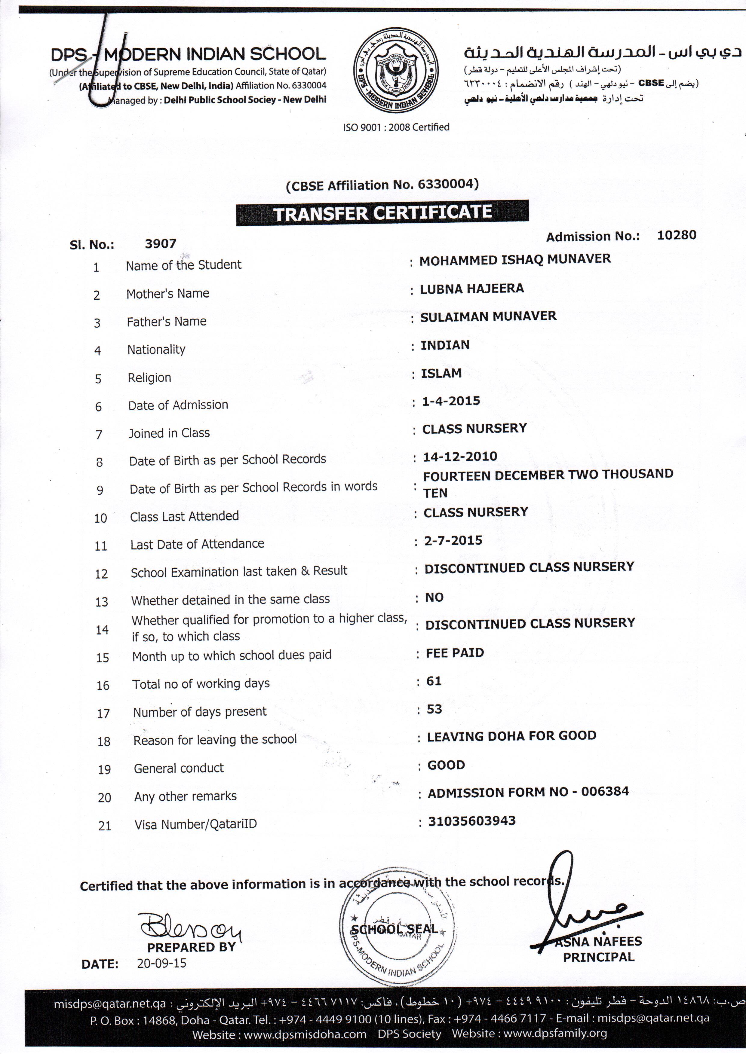 10280 Class Nur MOHAMMED ISHAQ MUNAVER