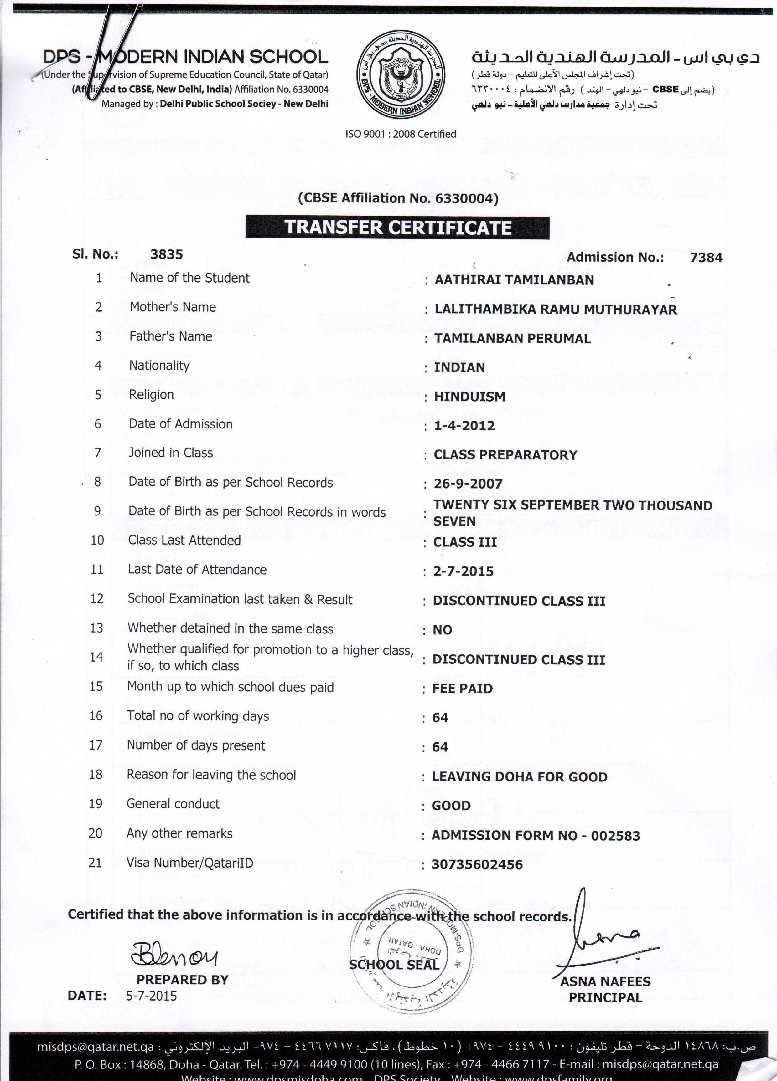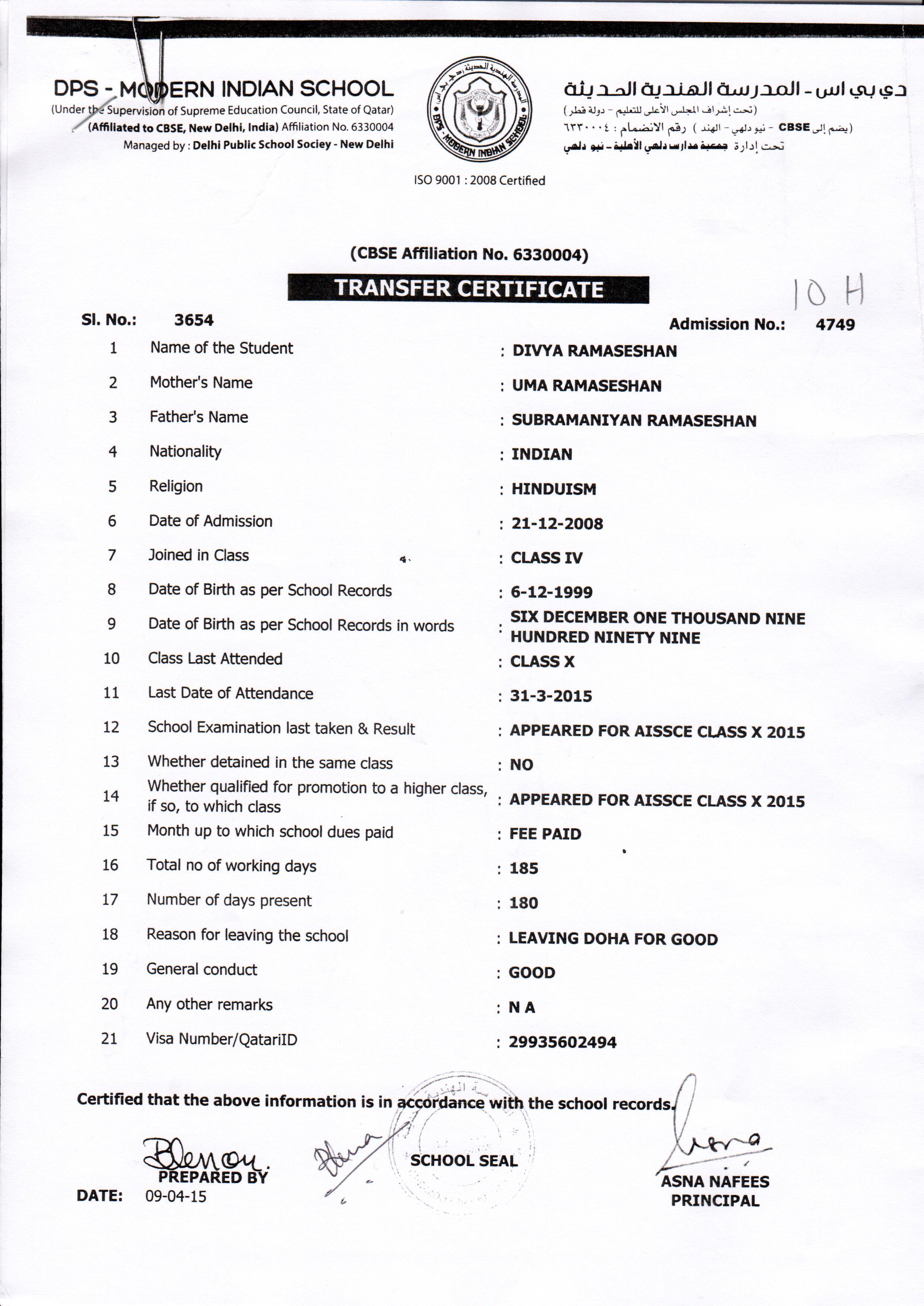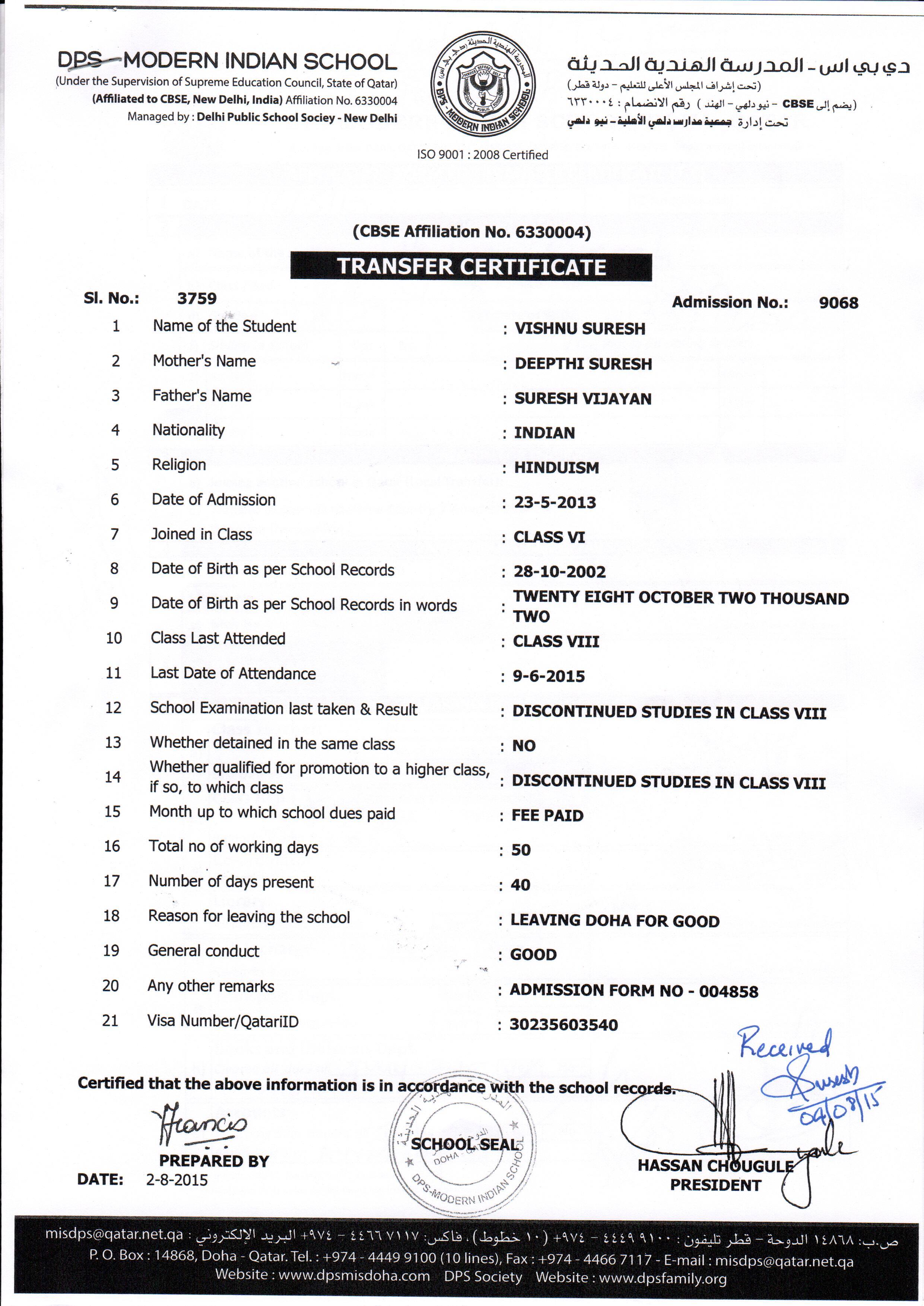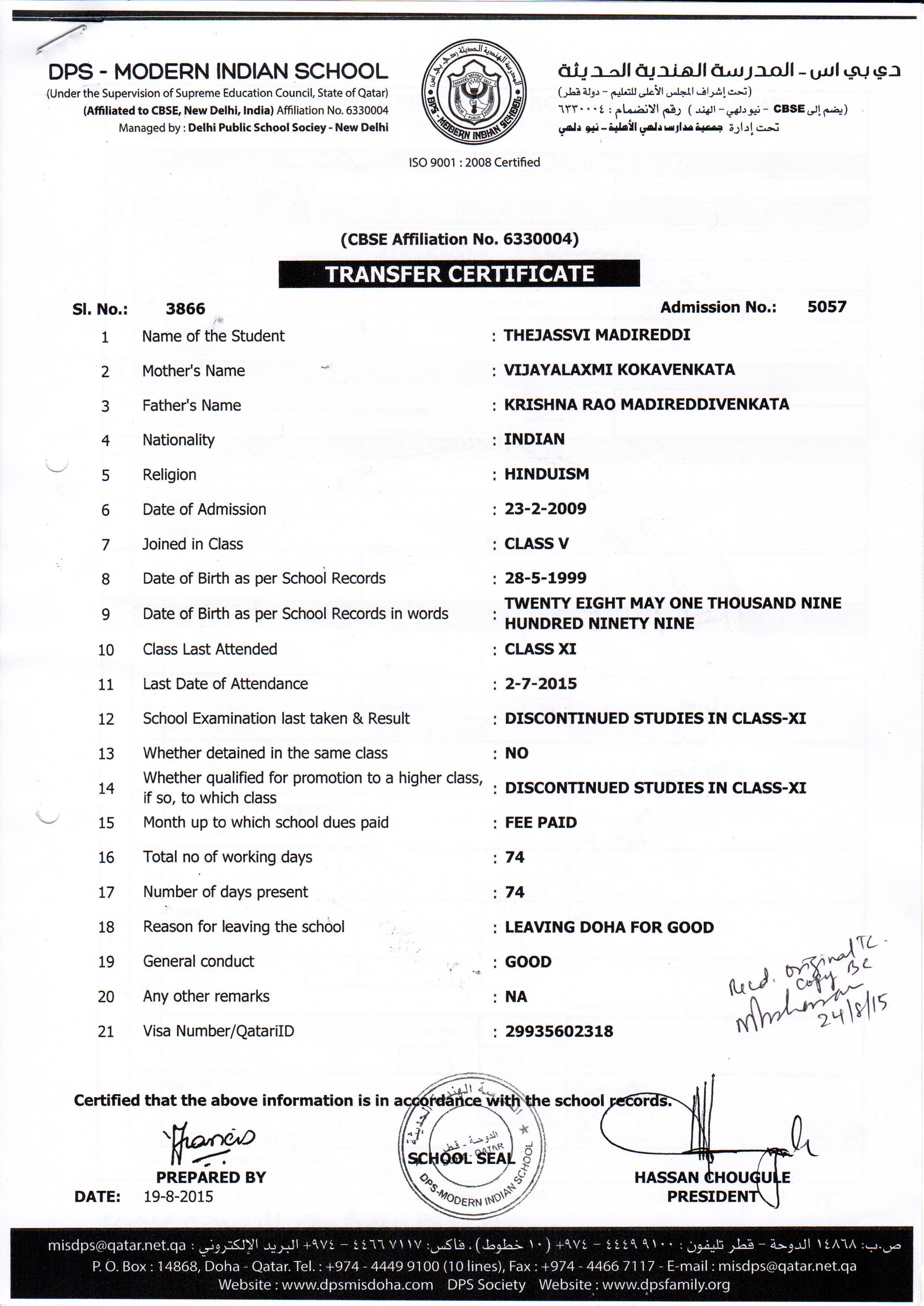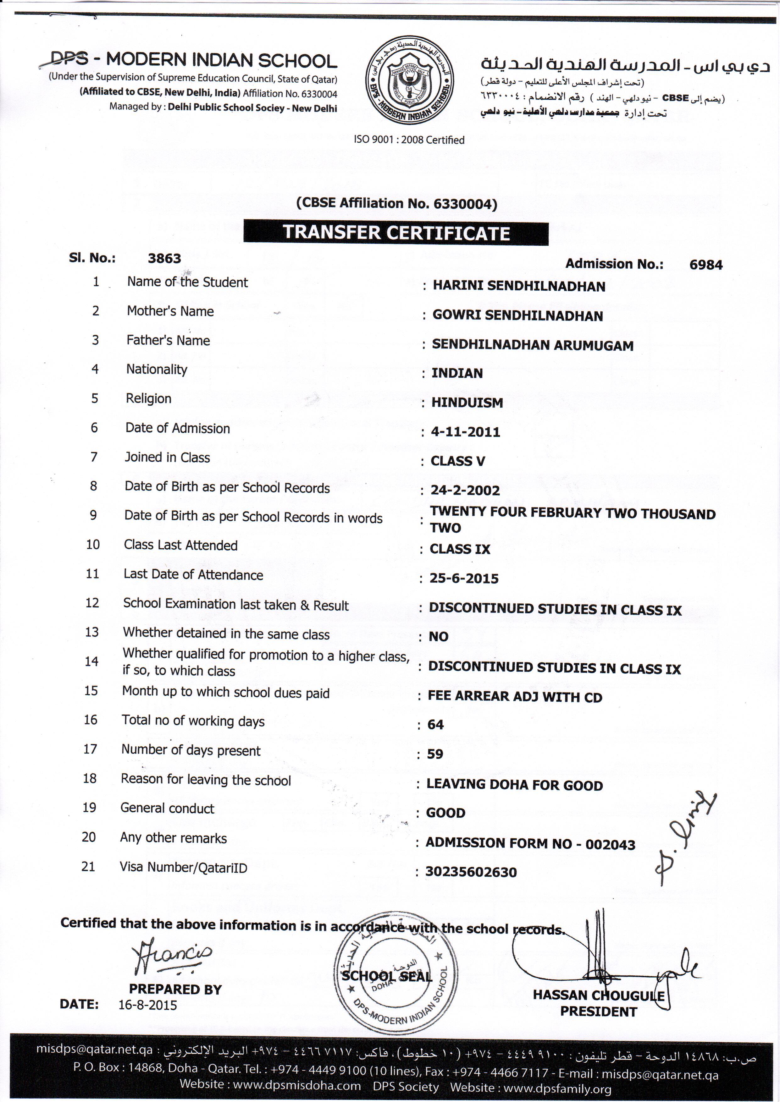 Click on the admission number to view the TC