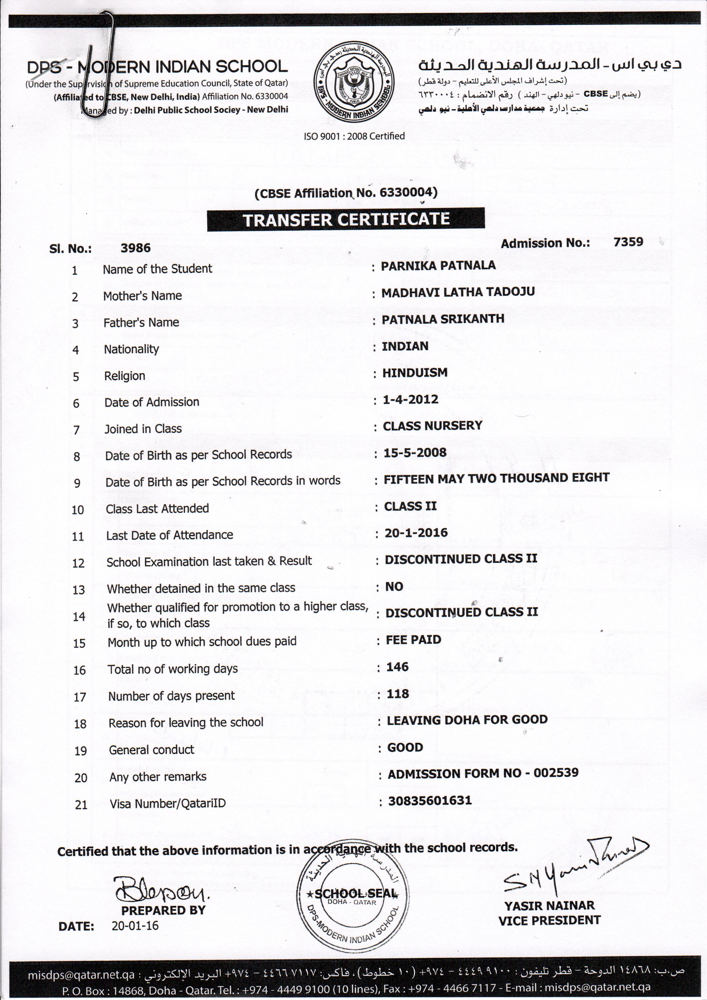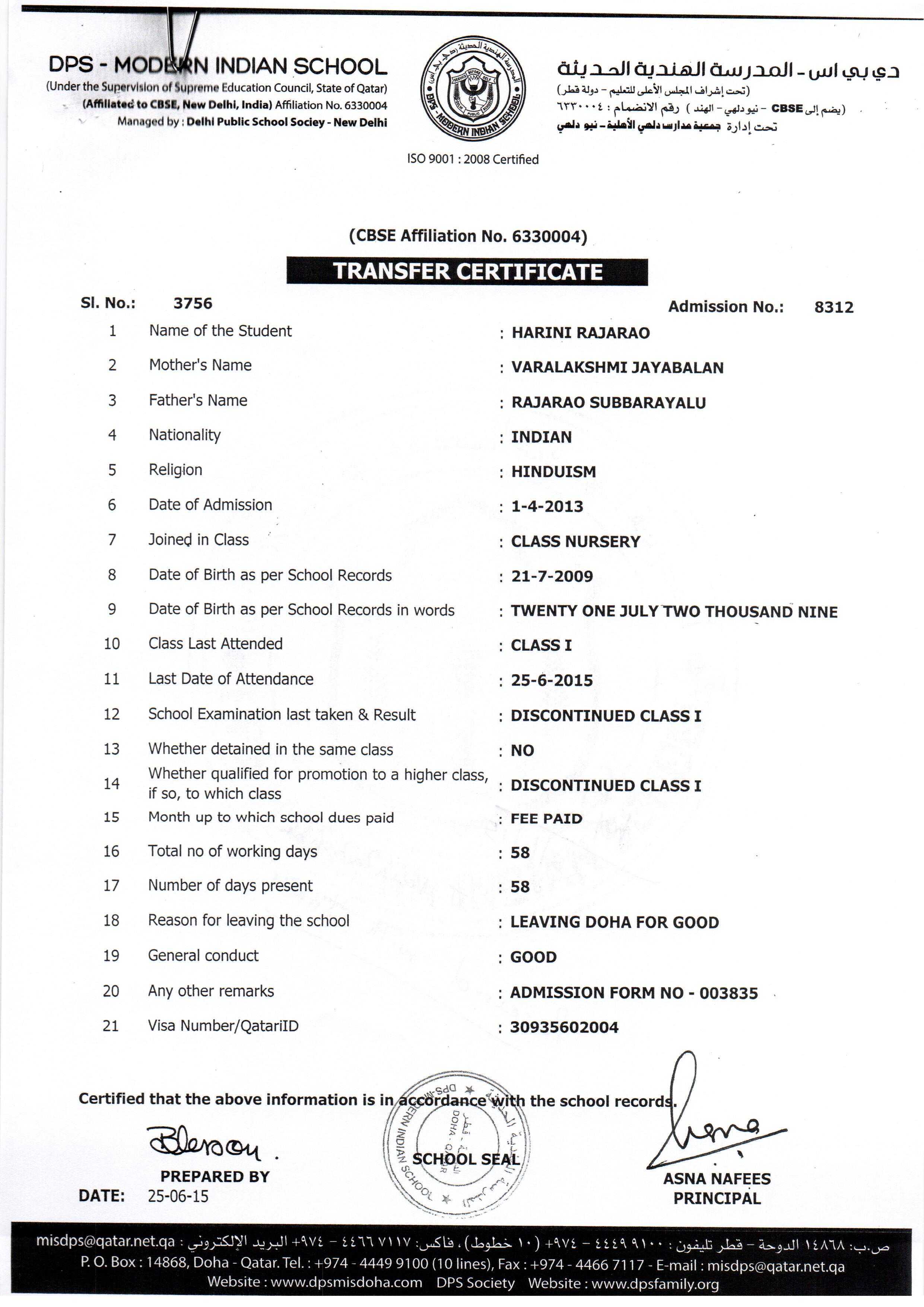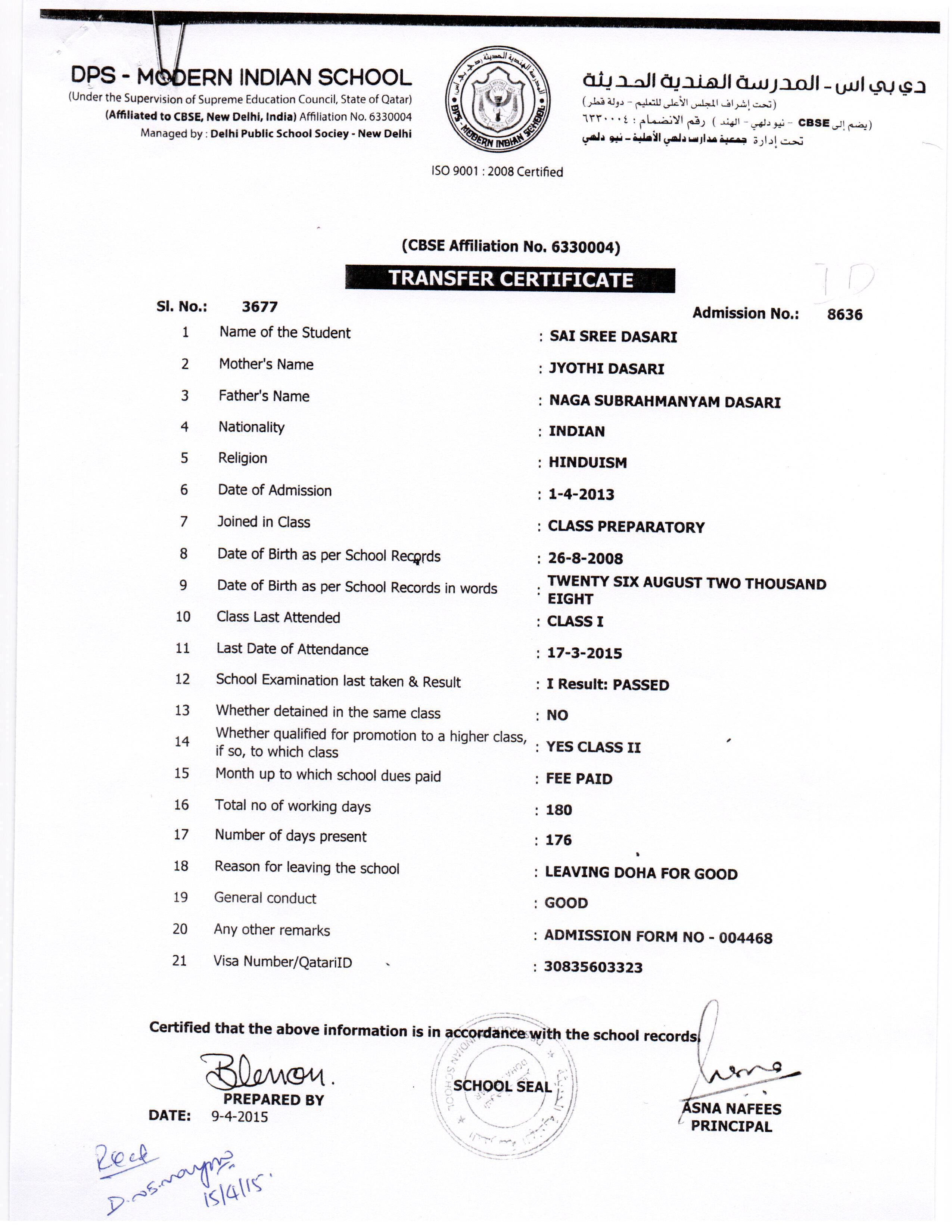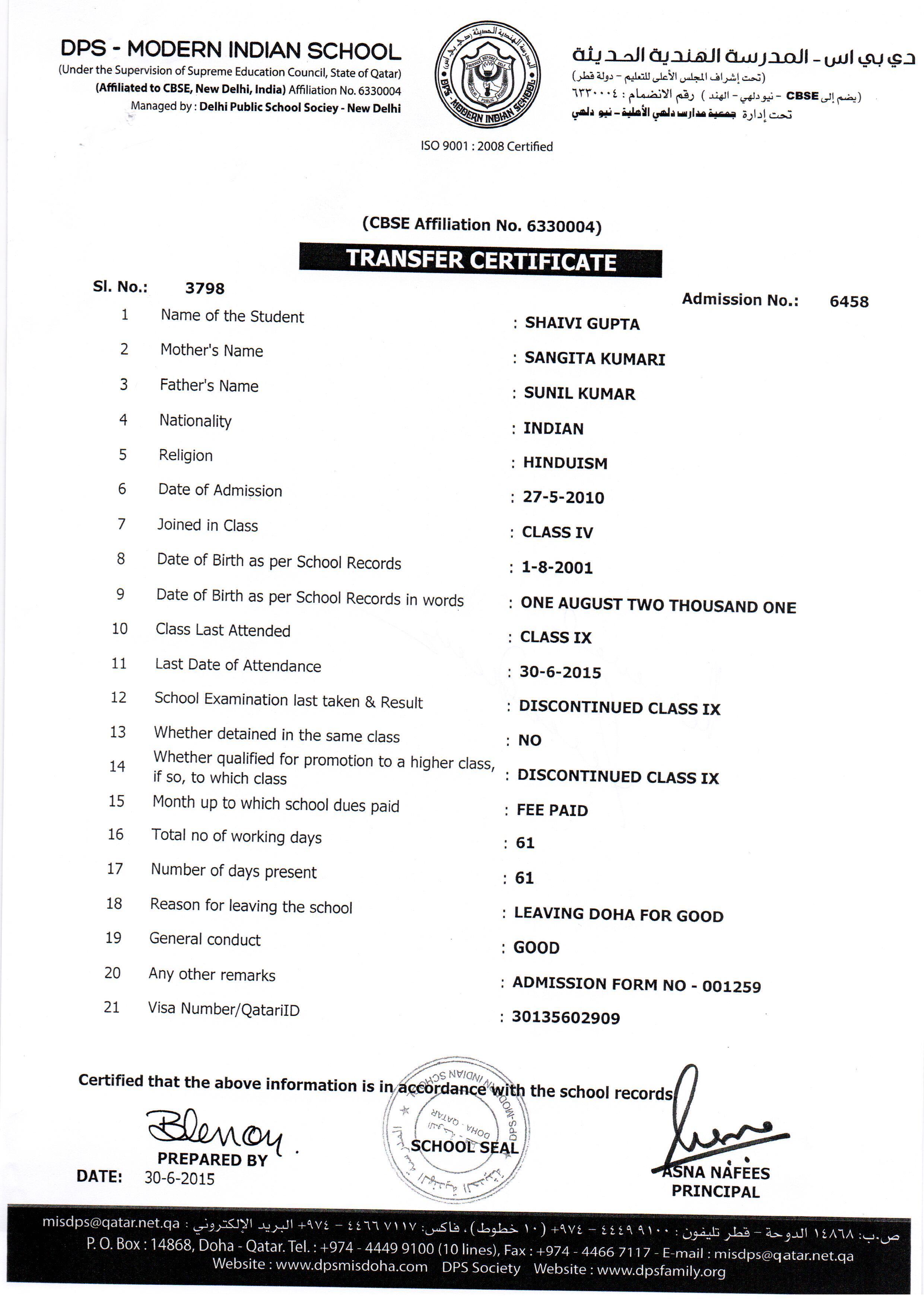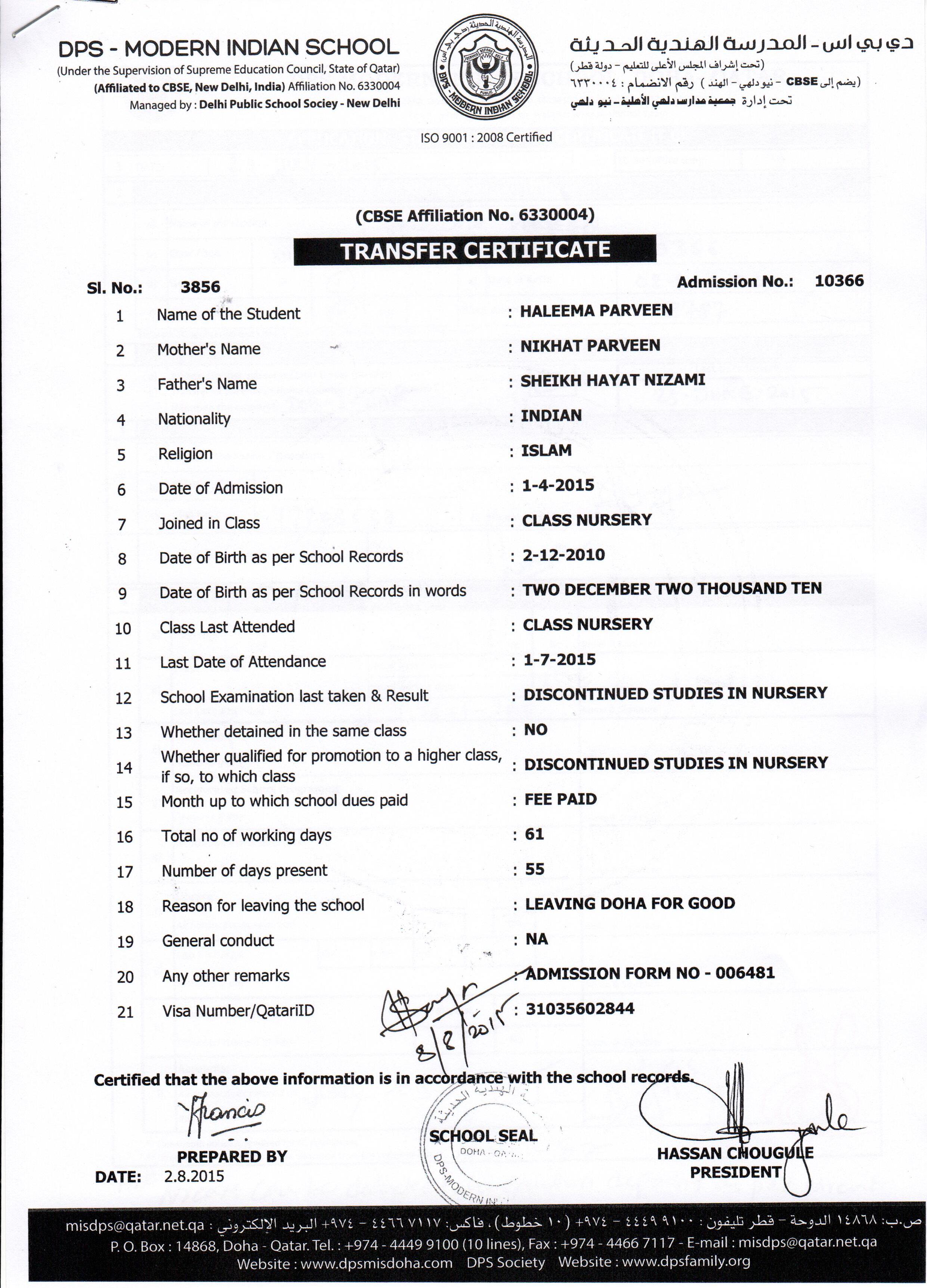 Click on the admission number to view the TC