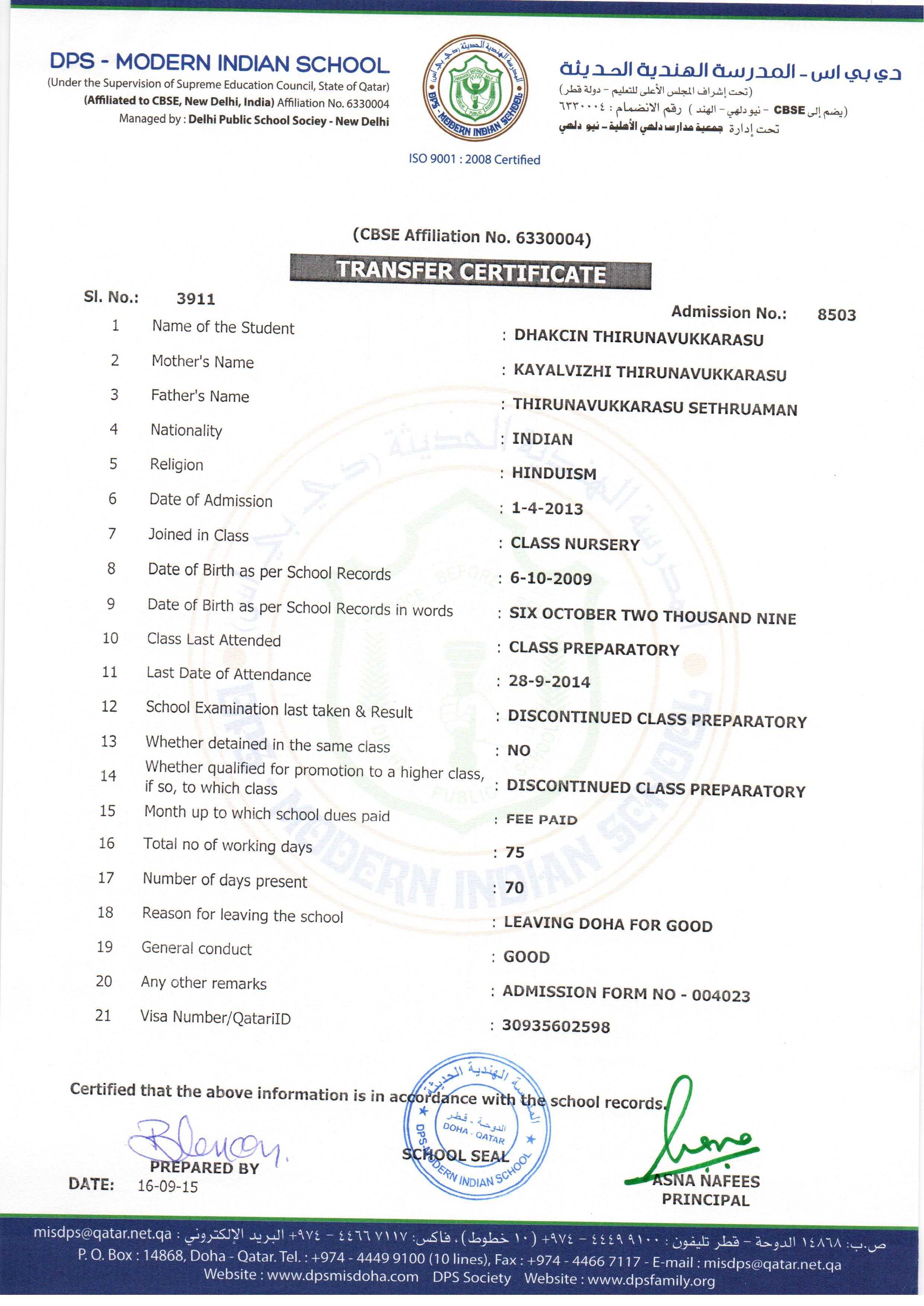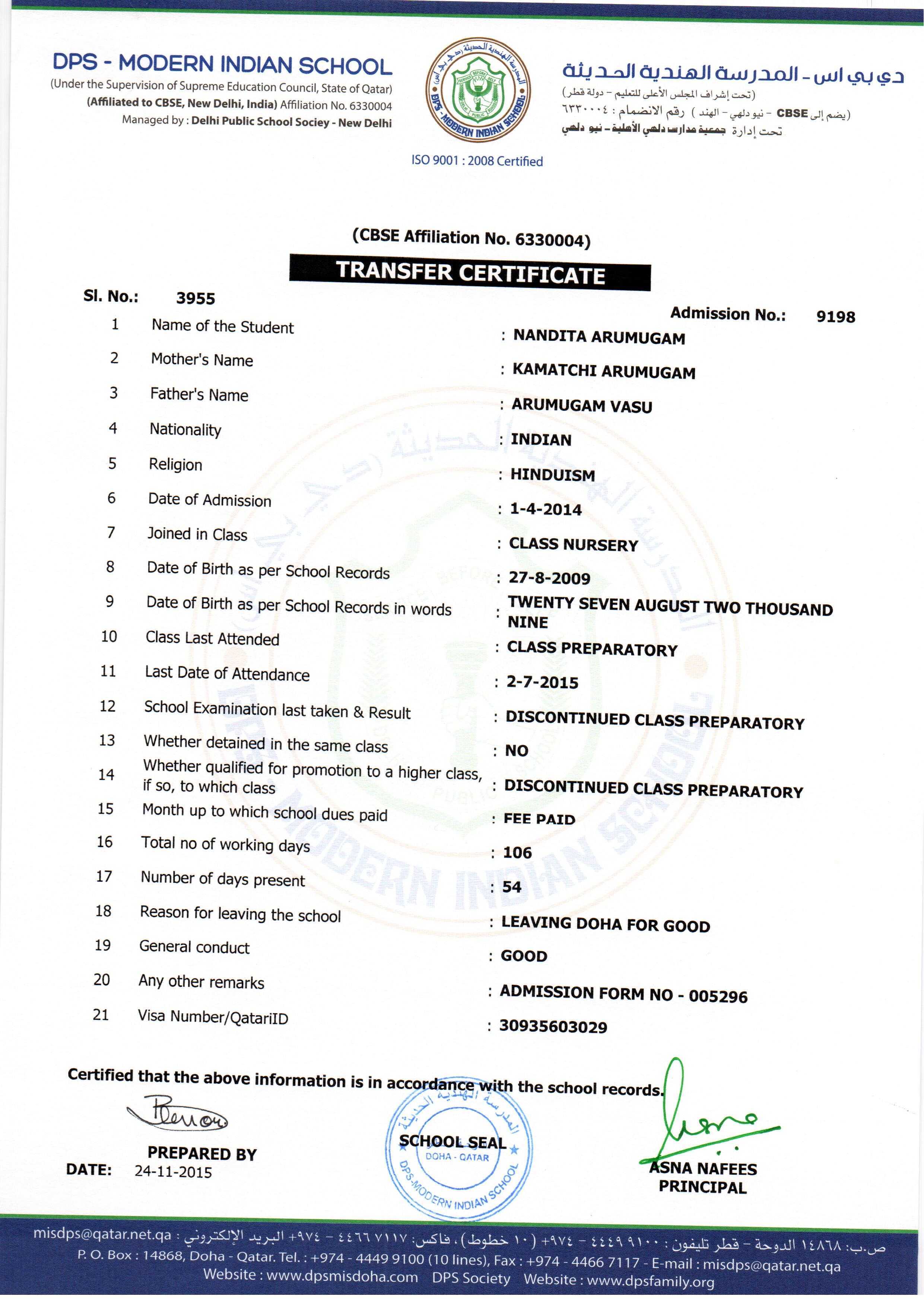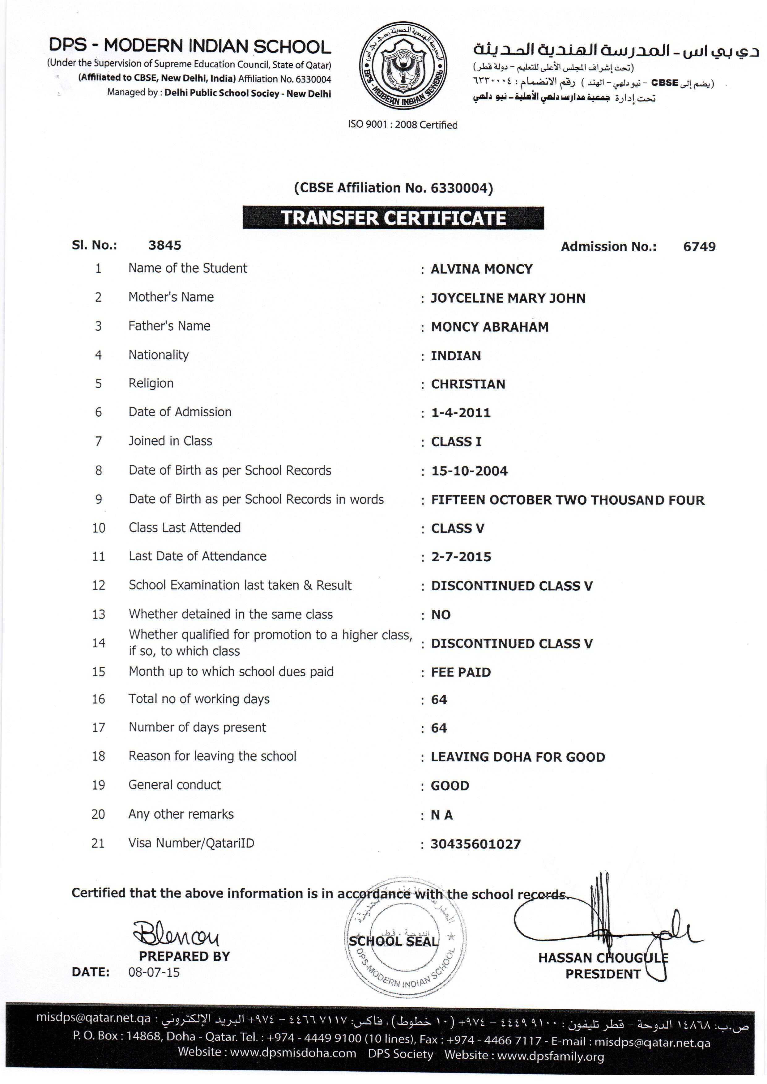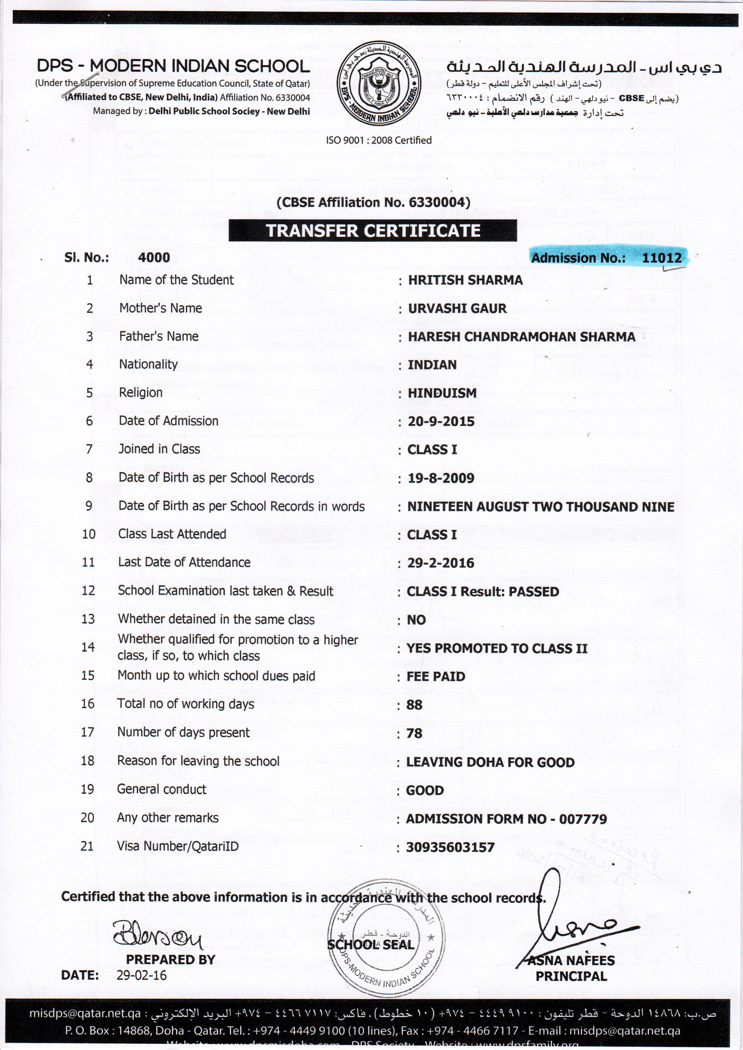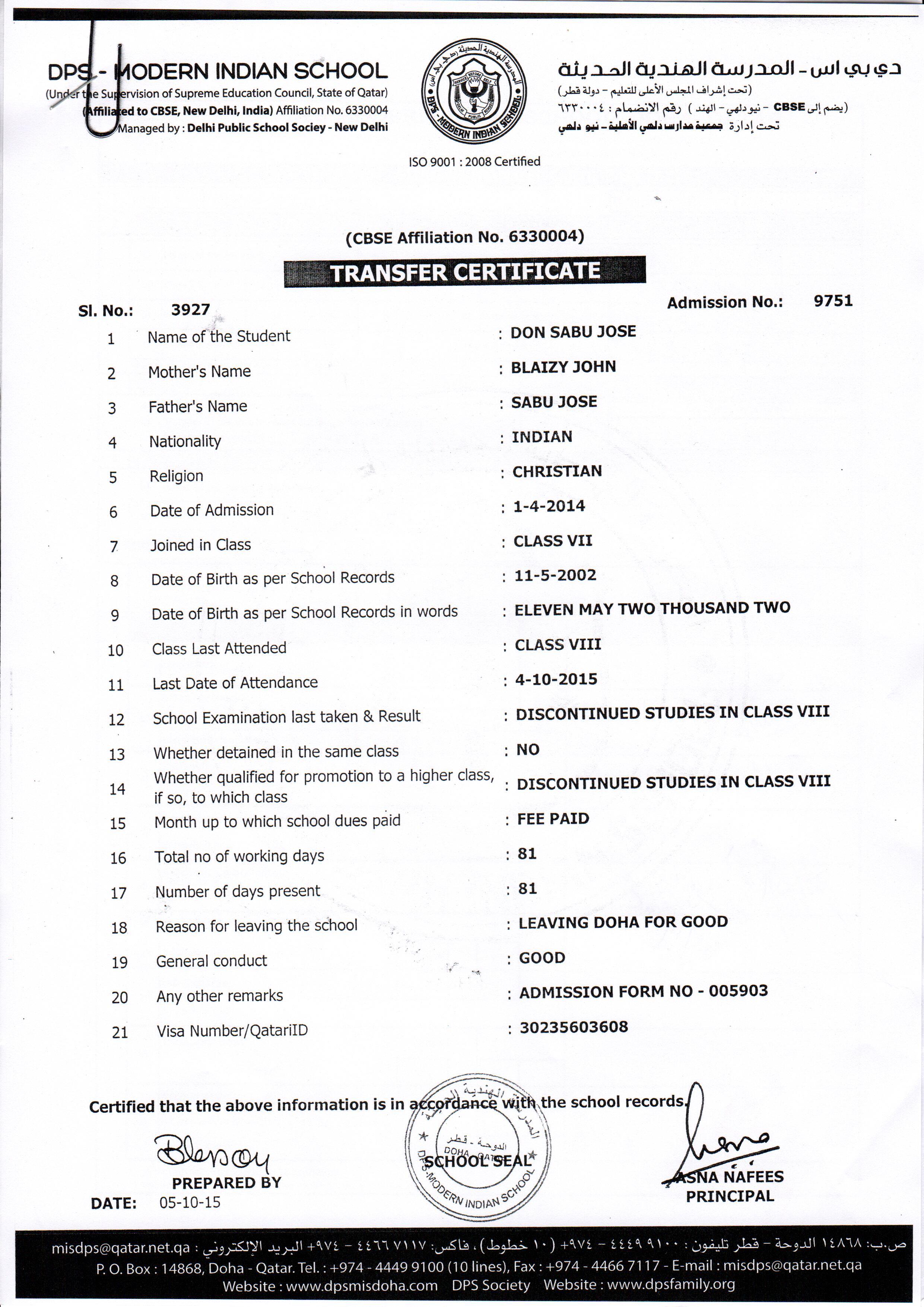Click on the admission number to view the TC