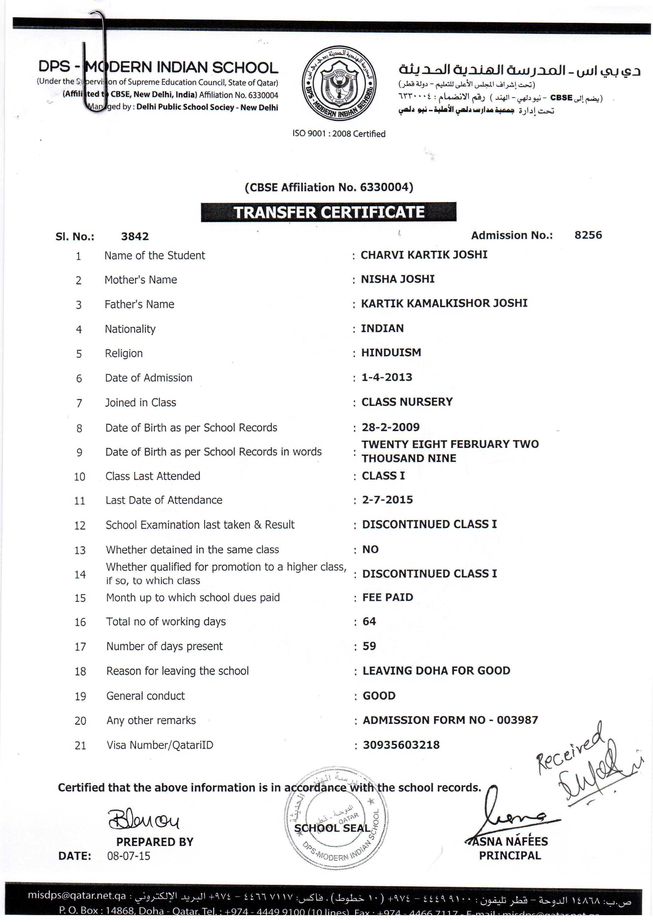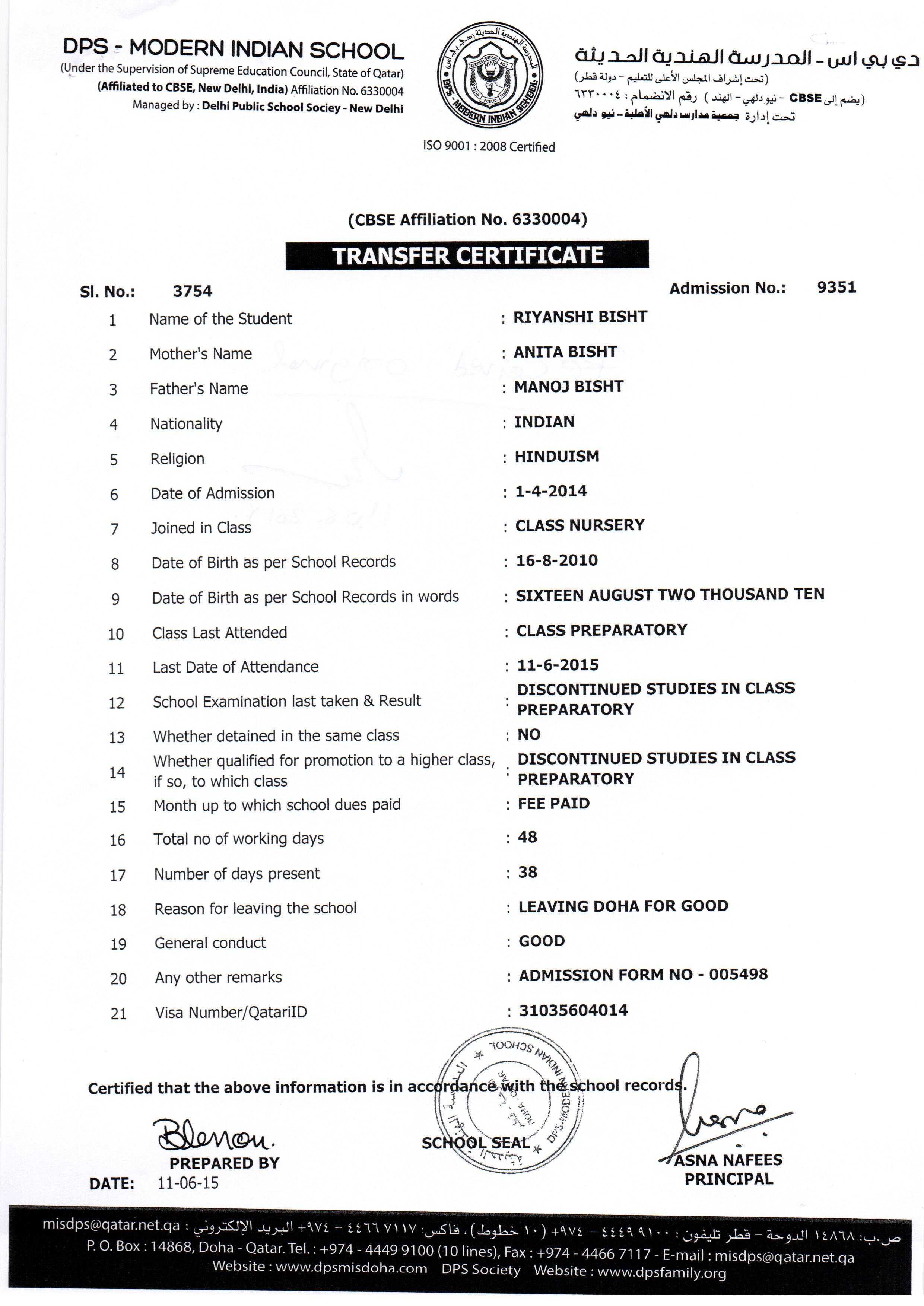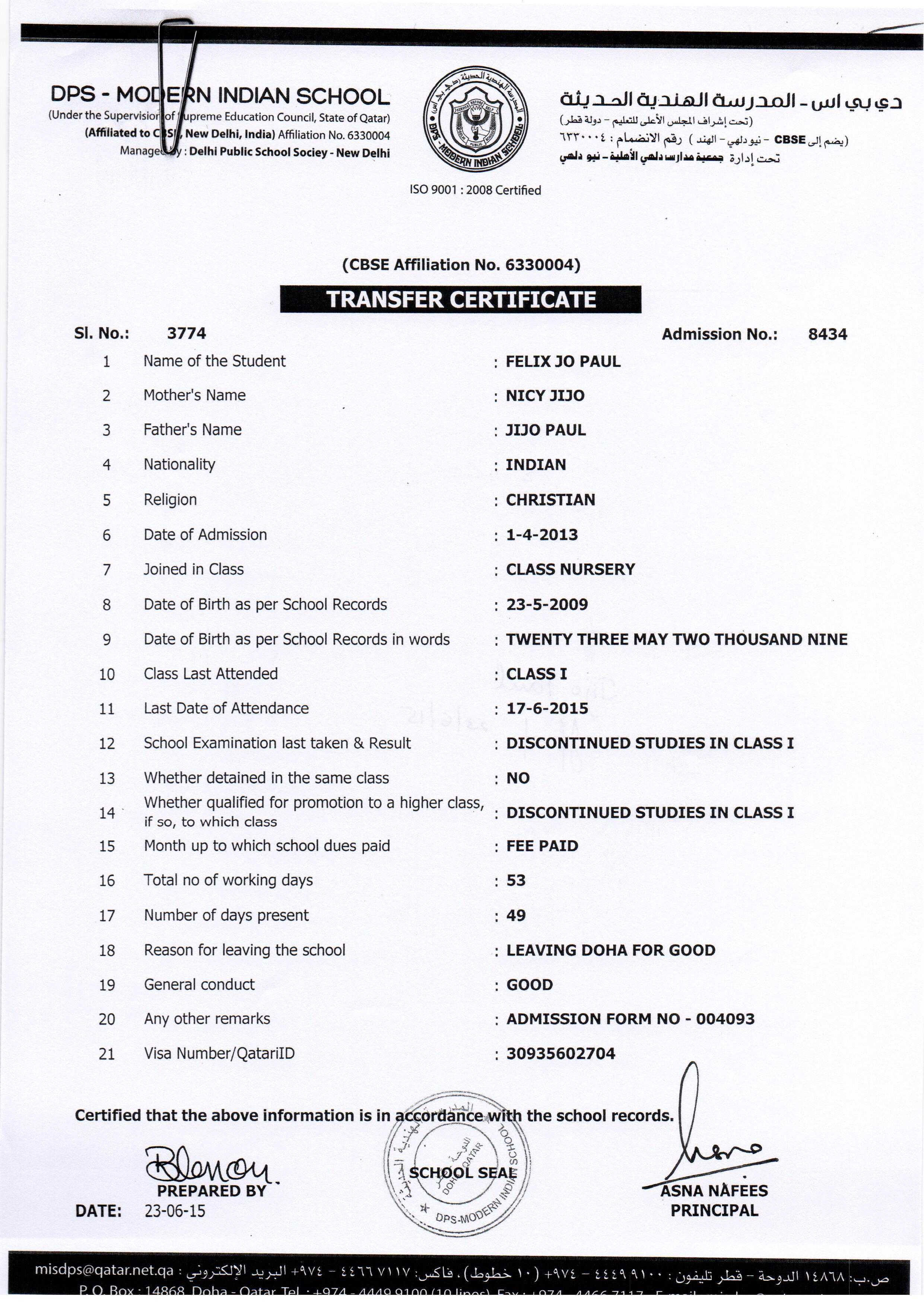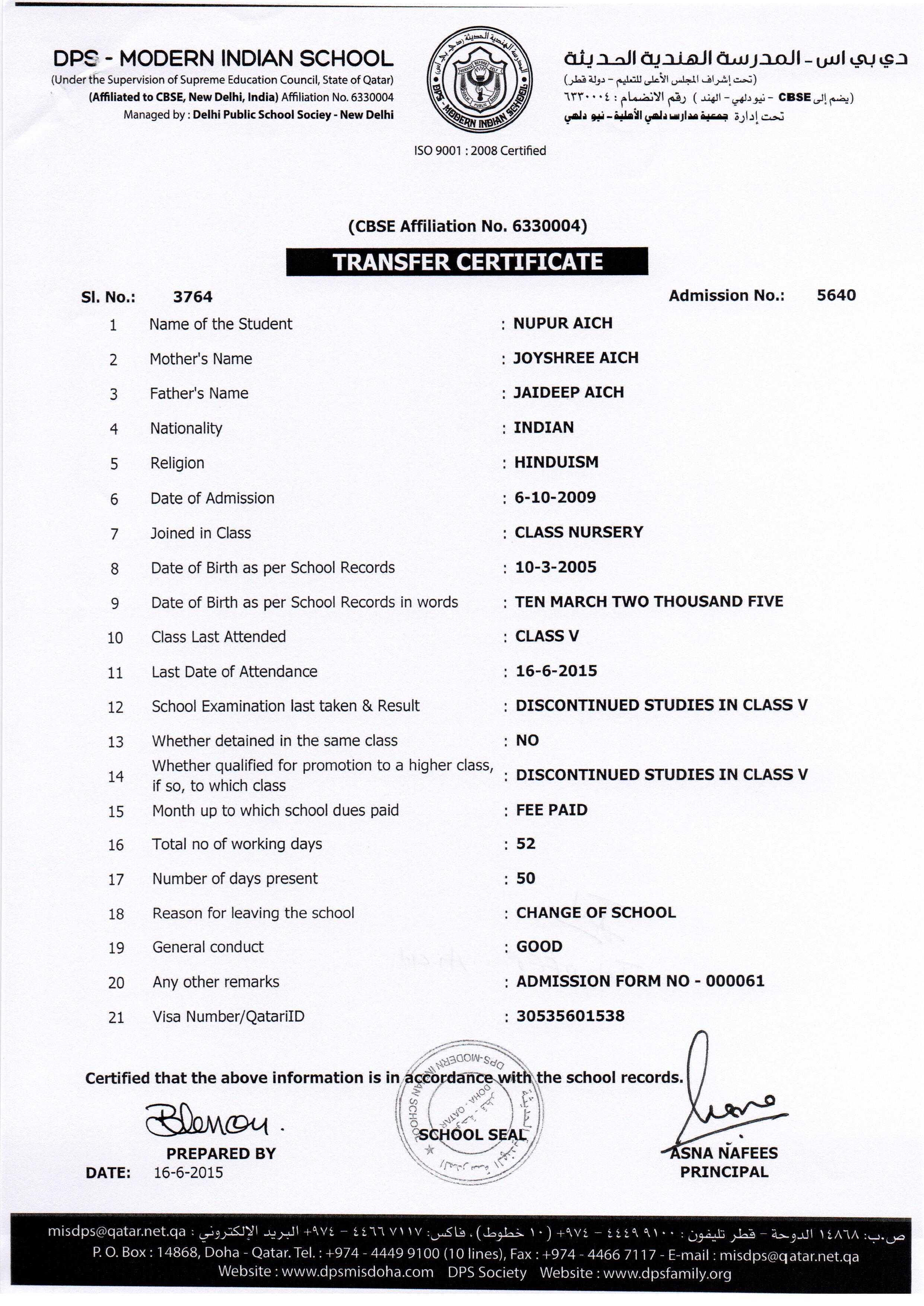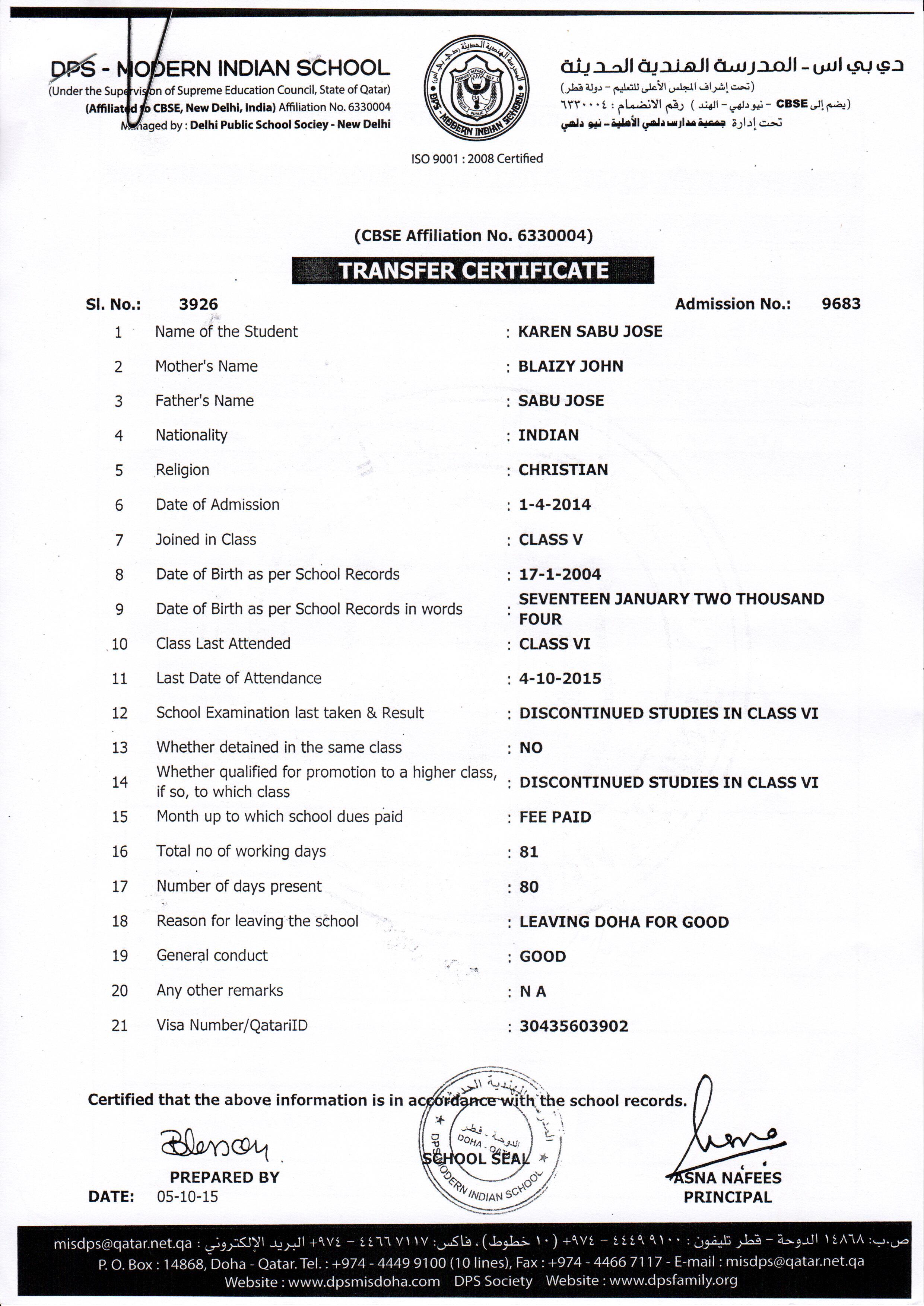 Click on the admission number to view the TC
