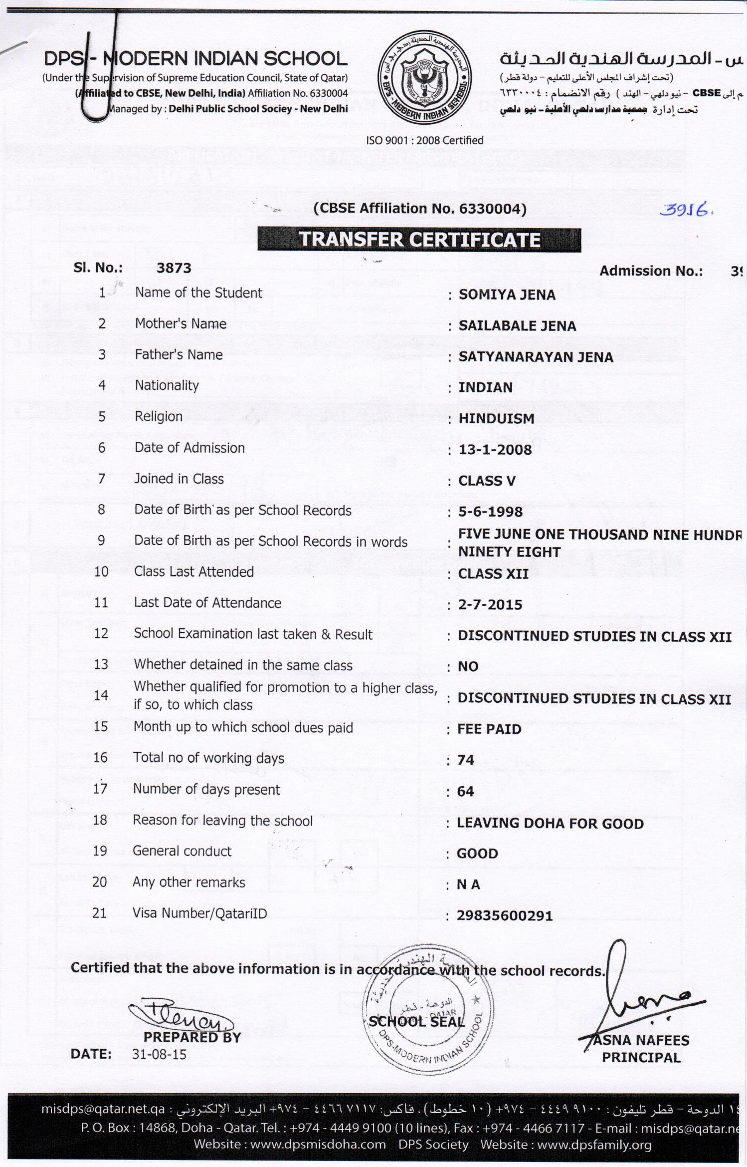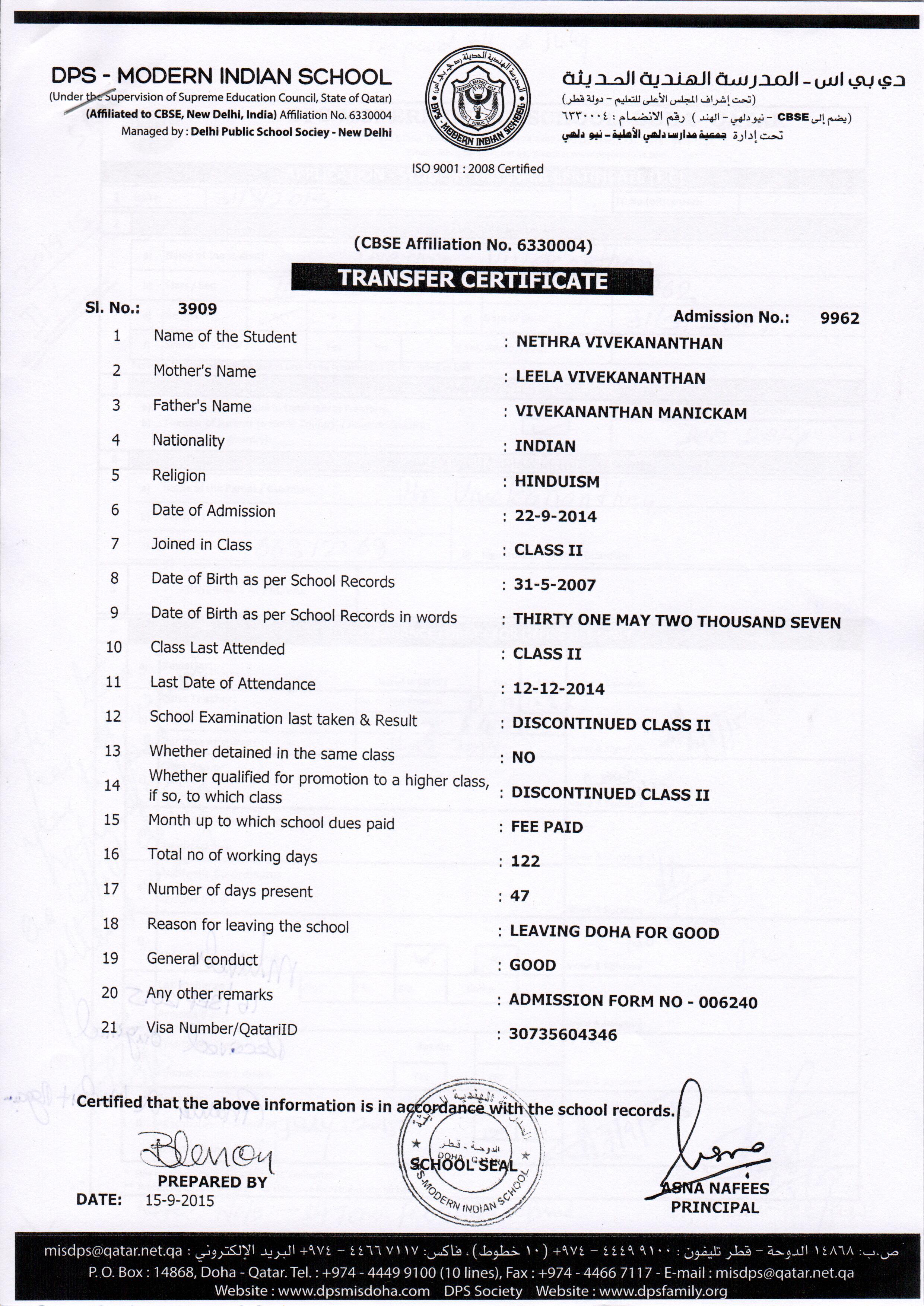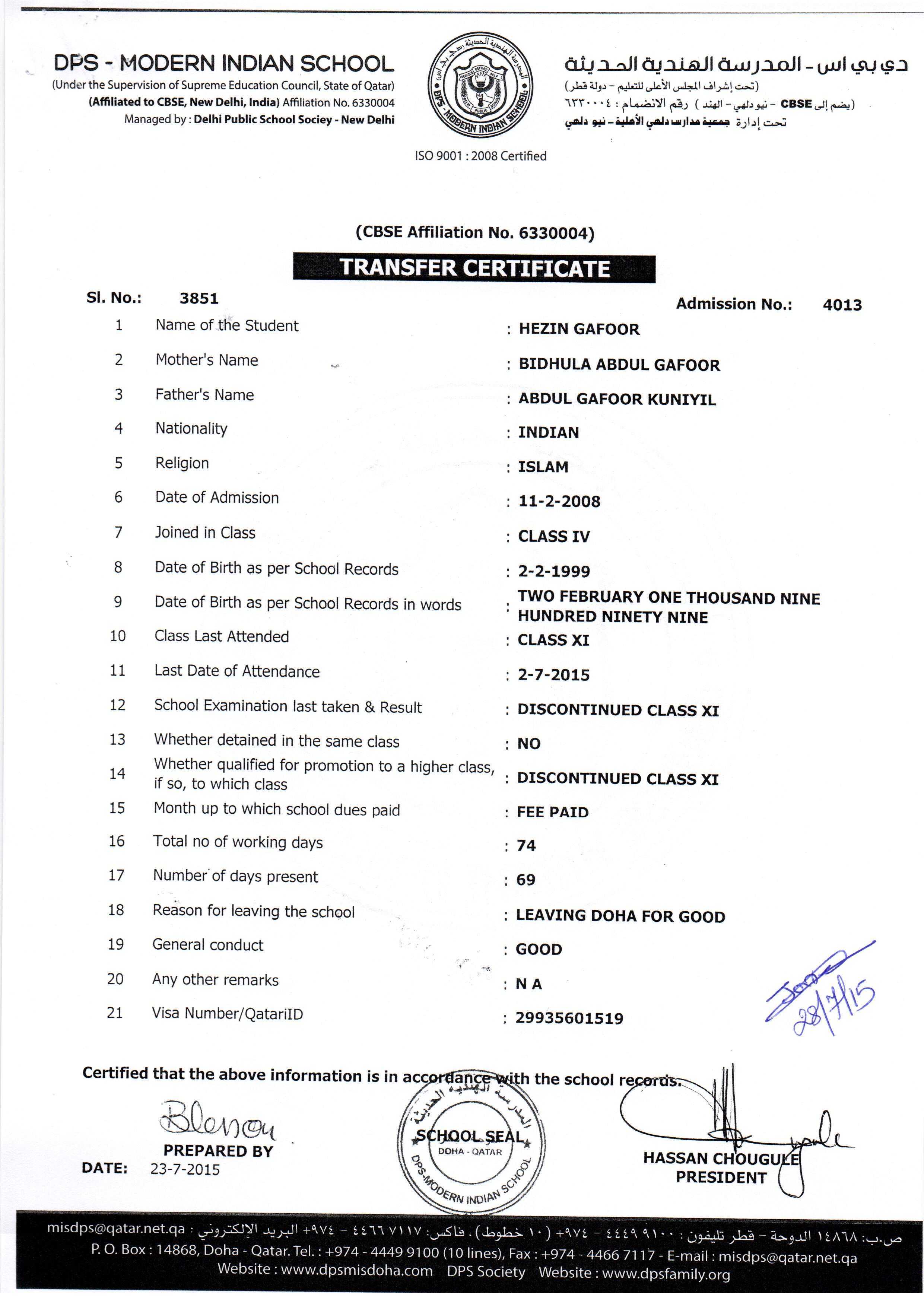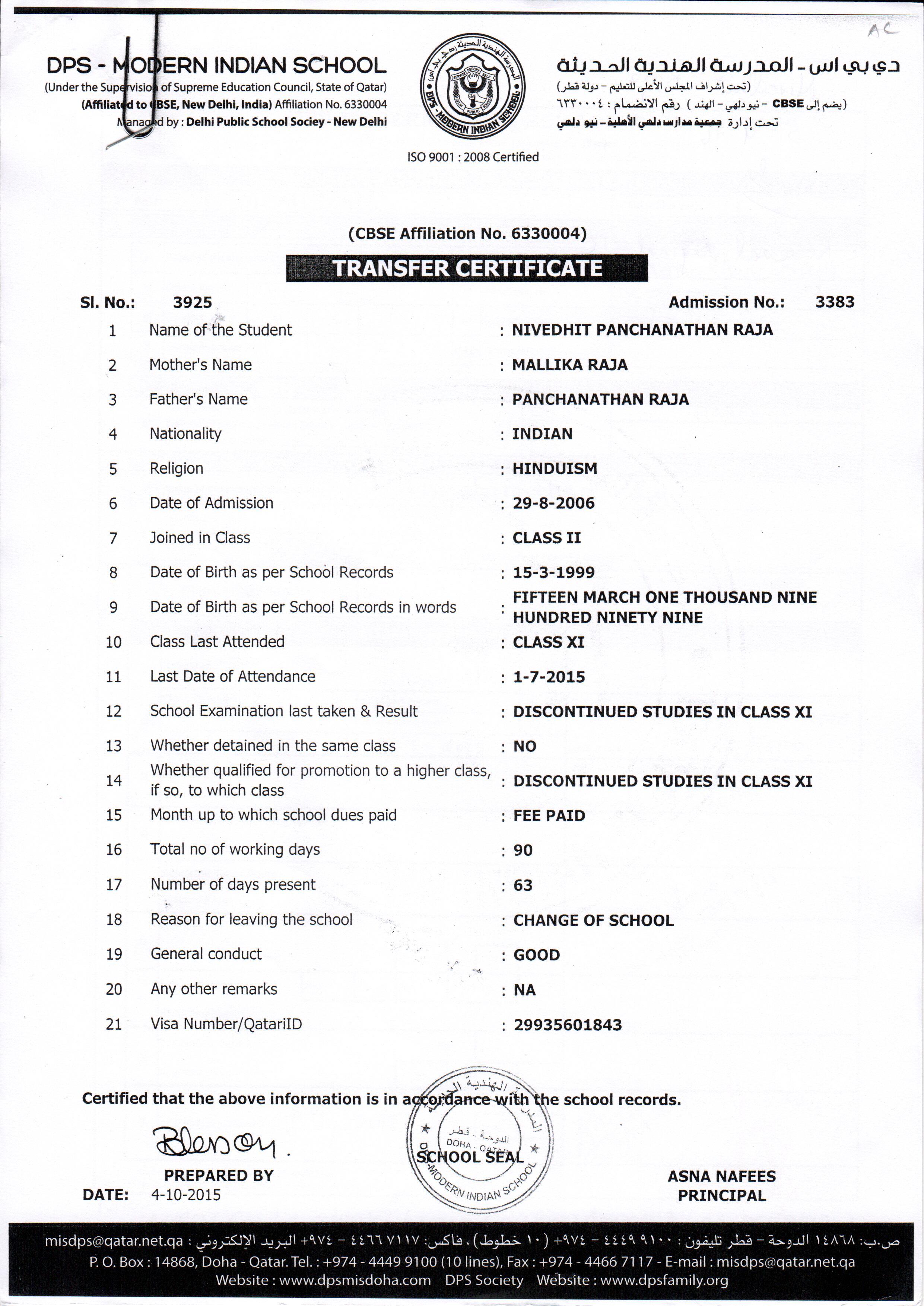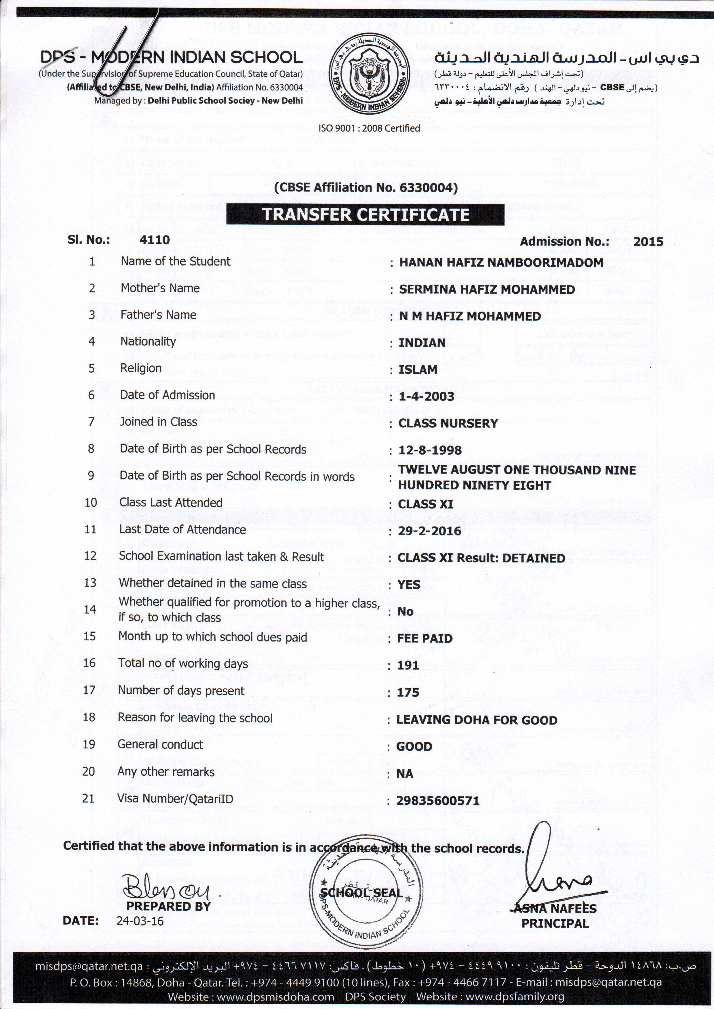2015 Class XI HANAN HAFIZ NAMBOORIMADOM (NP)
