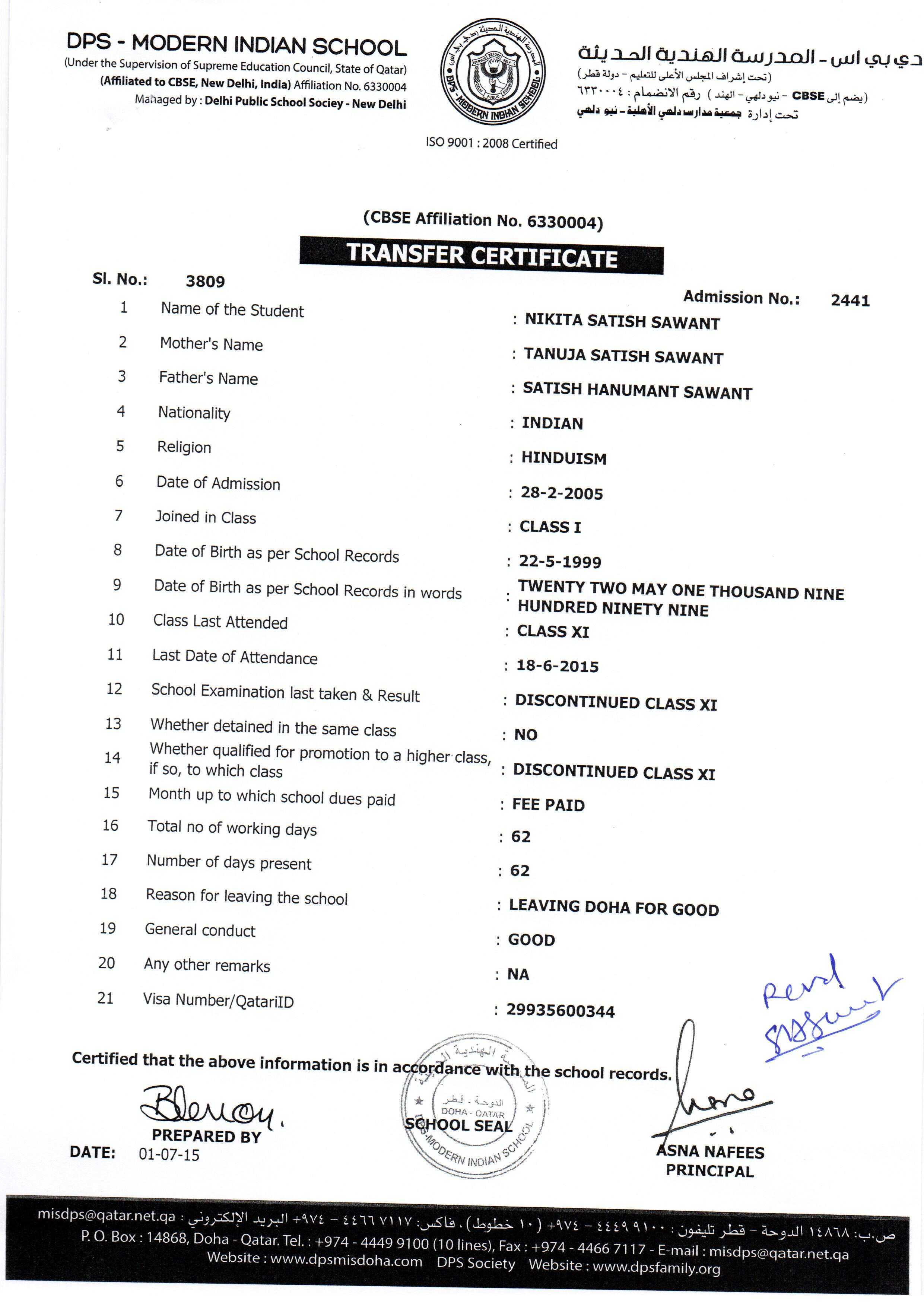 2441 Class XI NIKITA SATISH SAWANT