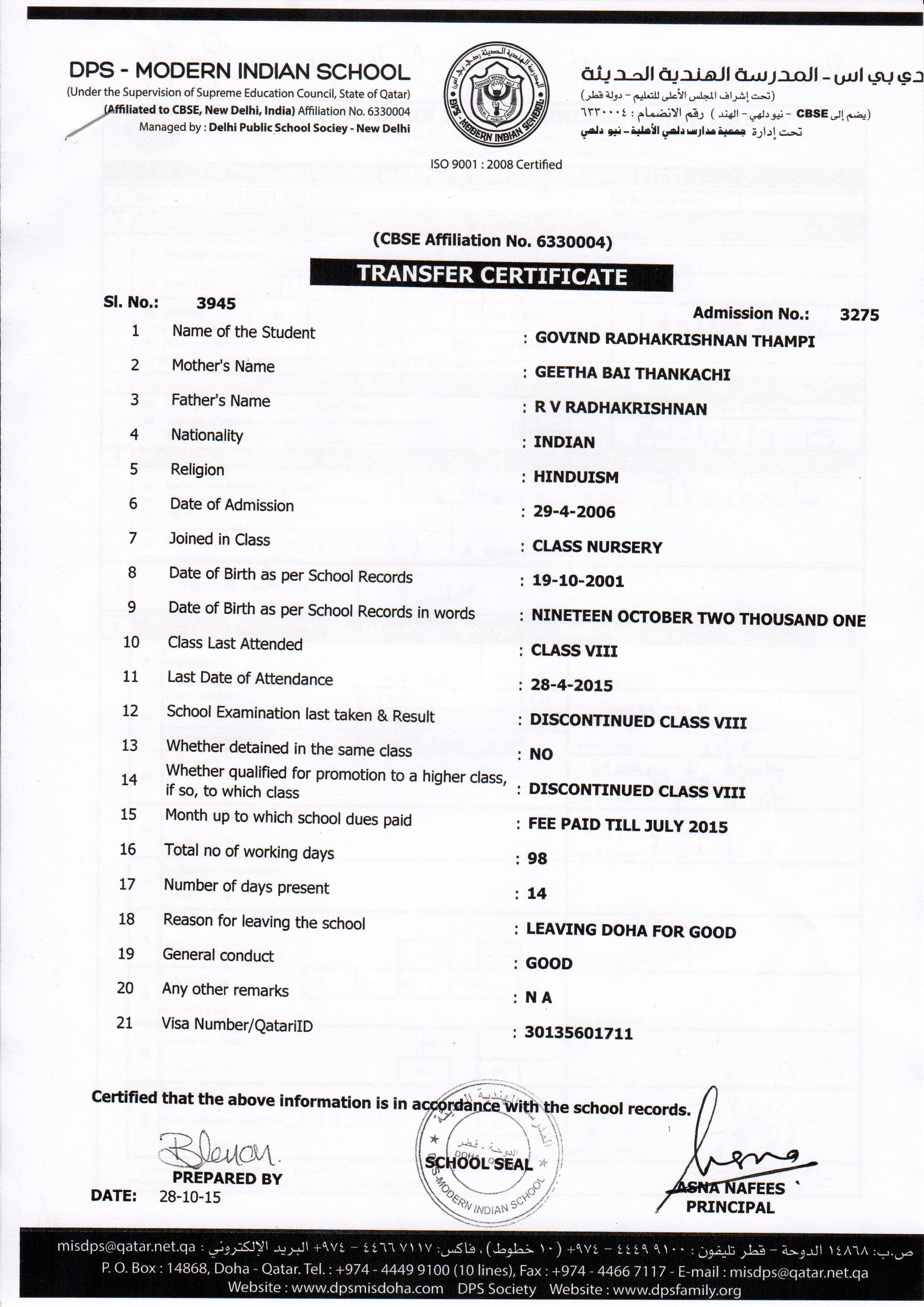 3275 Class VIII GOVIND RADHAKRISHNAN TAMPI