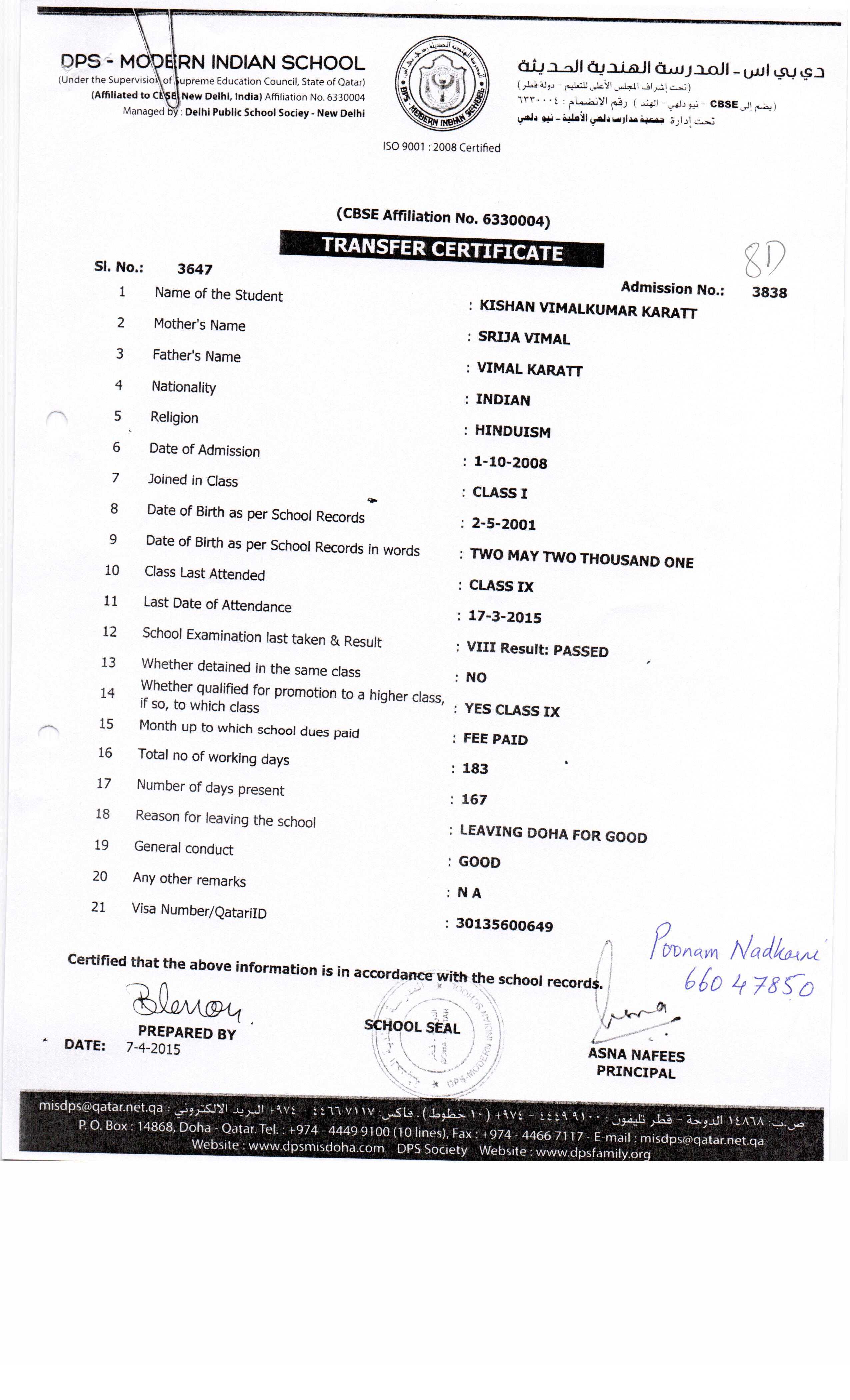 3838 Class IX KISHAN VIMALKUMAR KARATT