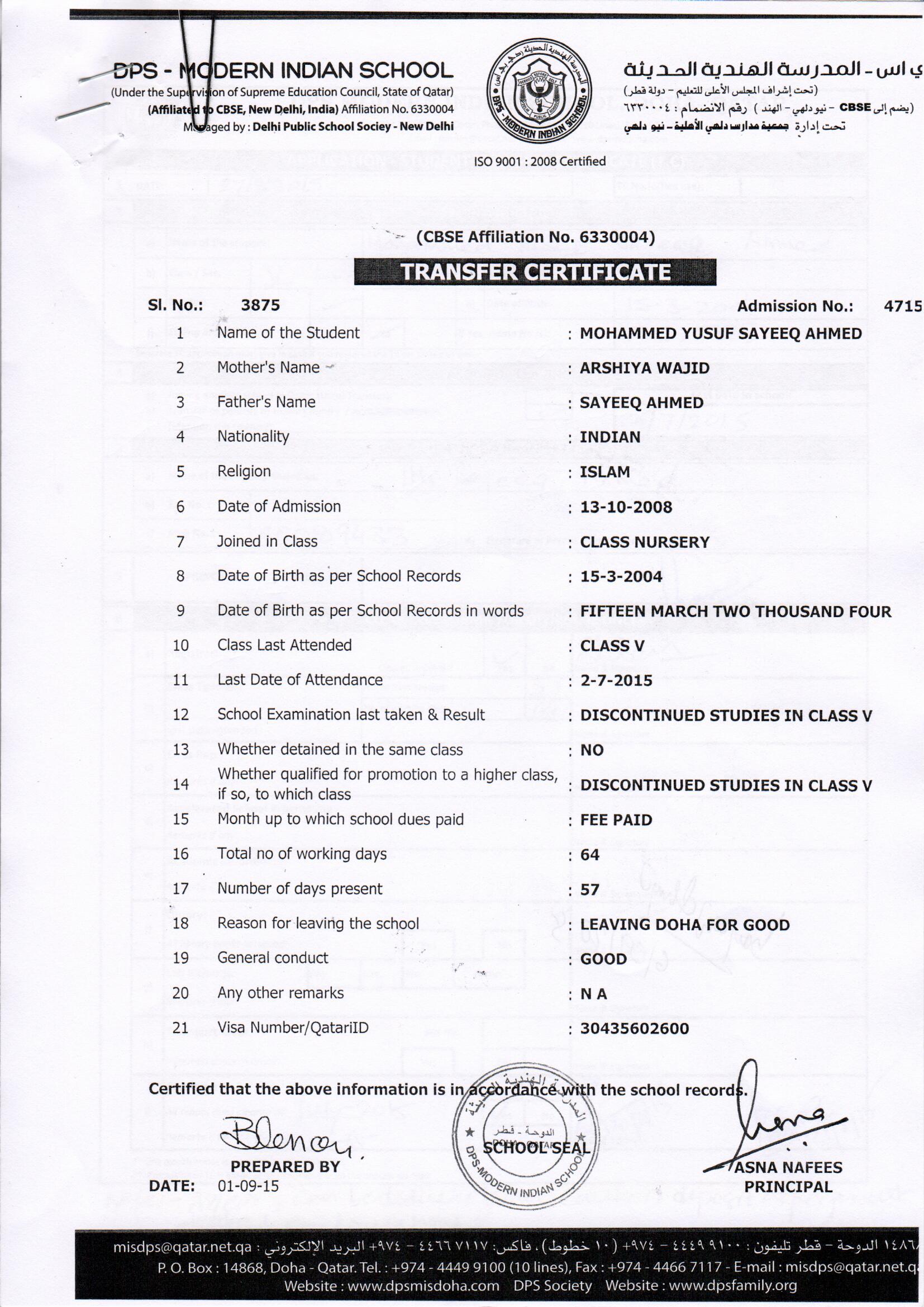 4715 Class V MOHAMMED YUSUF SAYEEQ AHMED