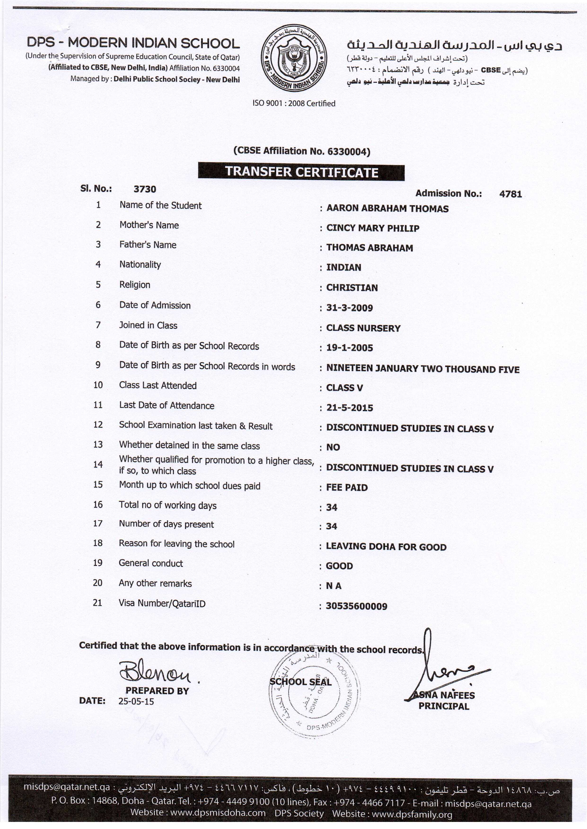 4781 Class V AARON ABRAHAM THOMAS