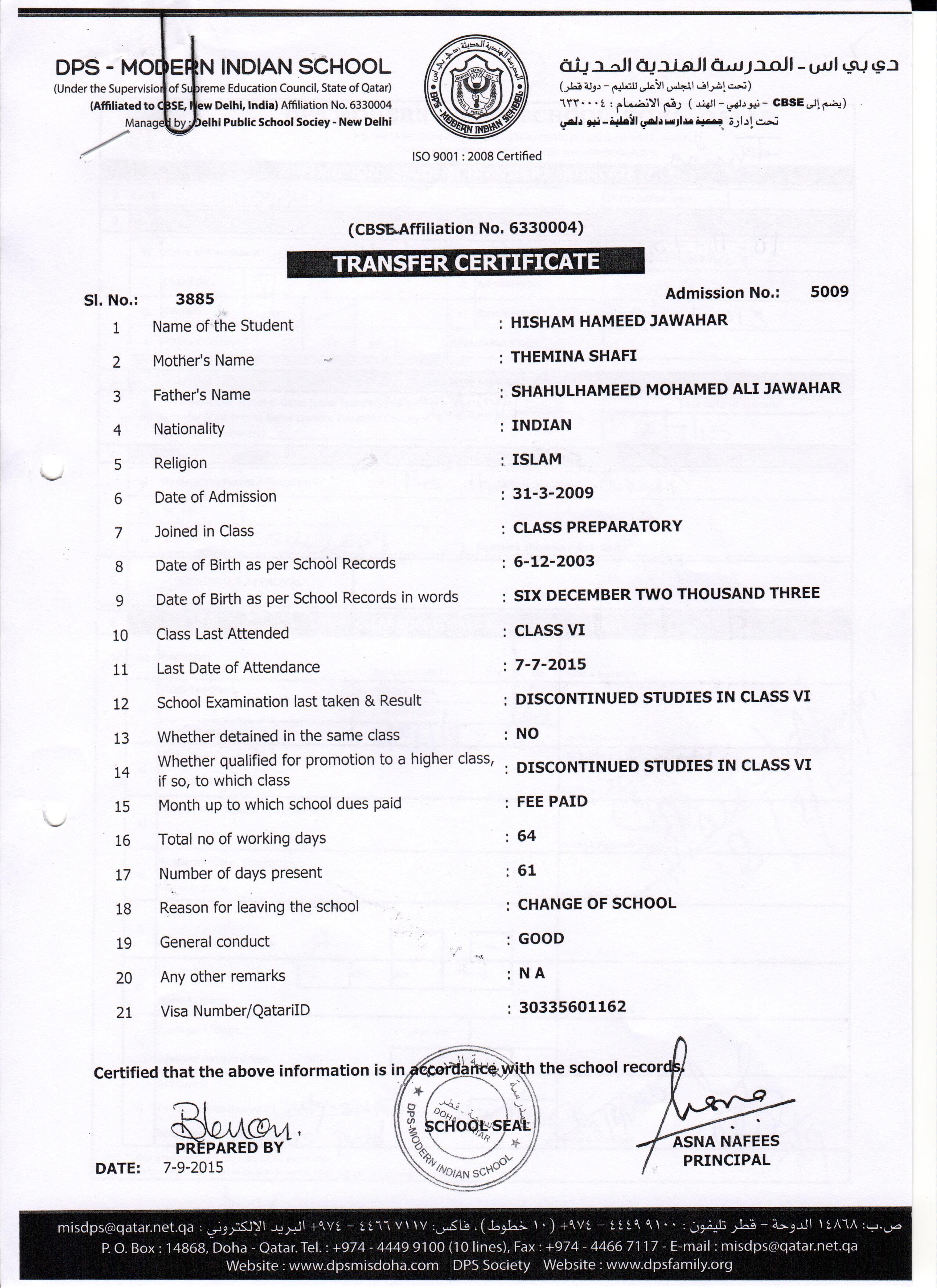 5009 Class VI HISHAM HAMEED JAWAHAR