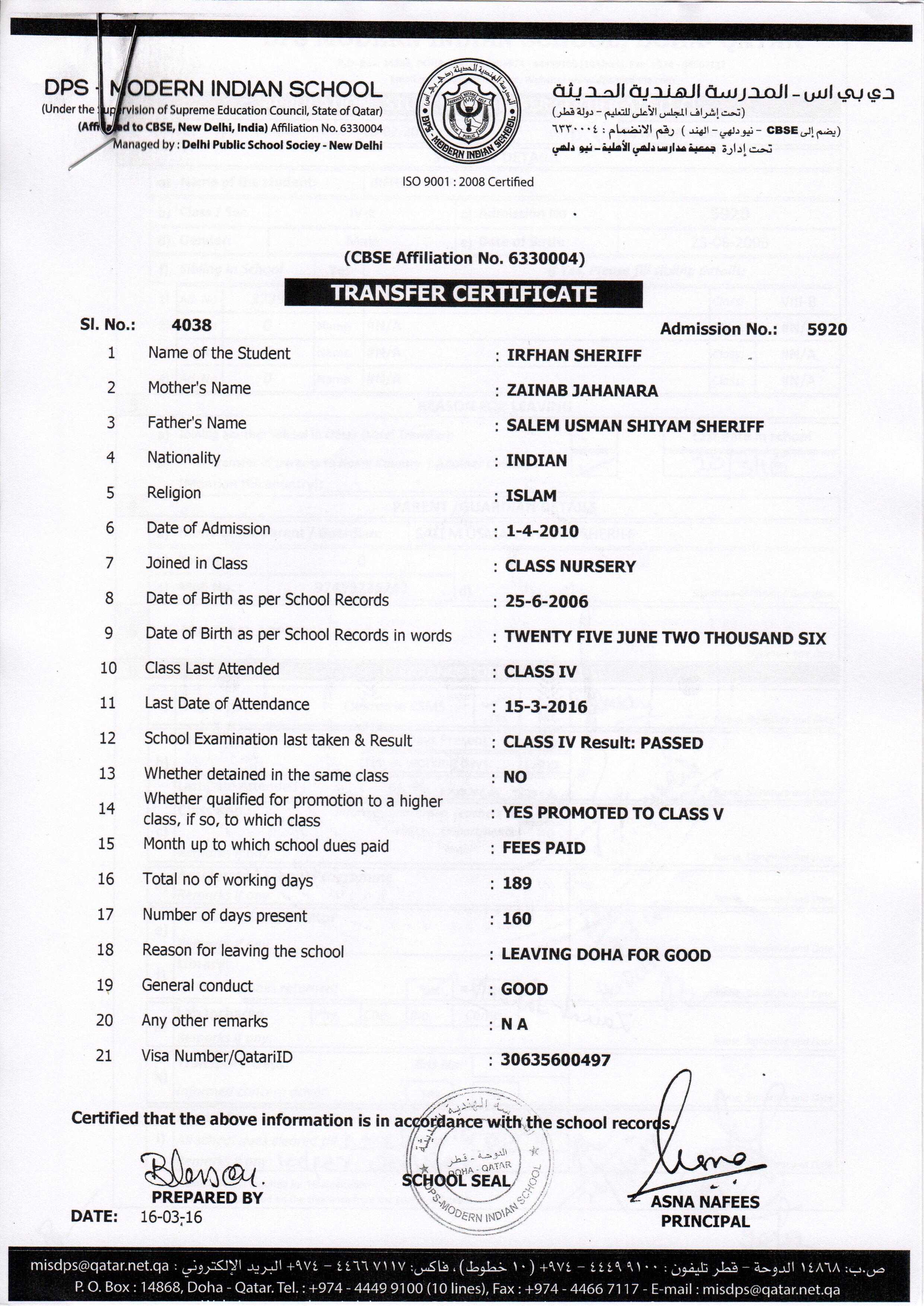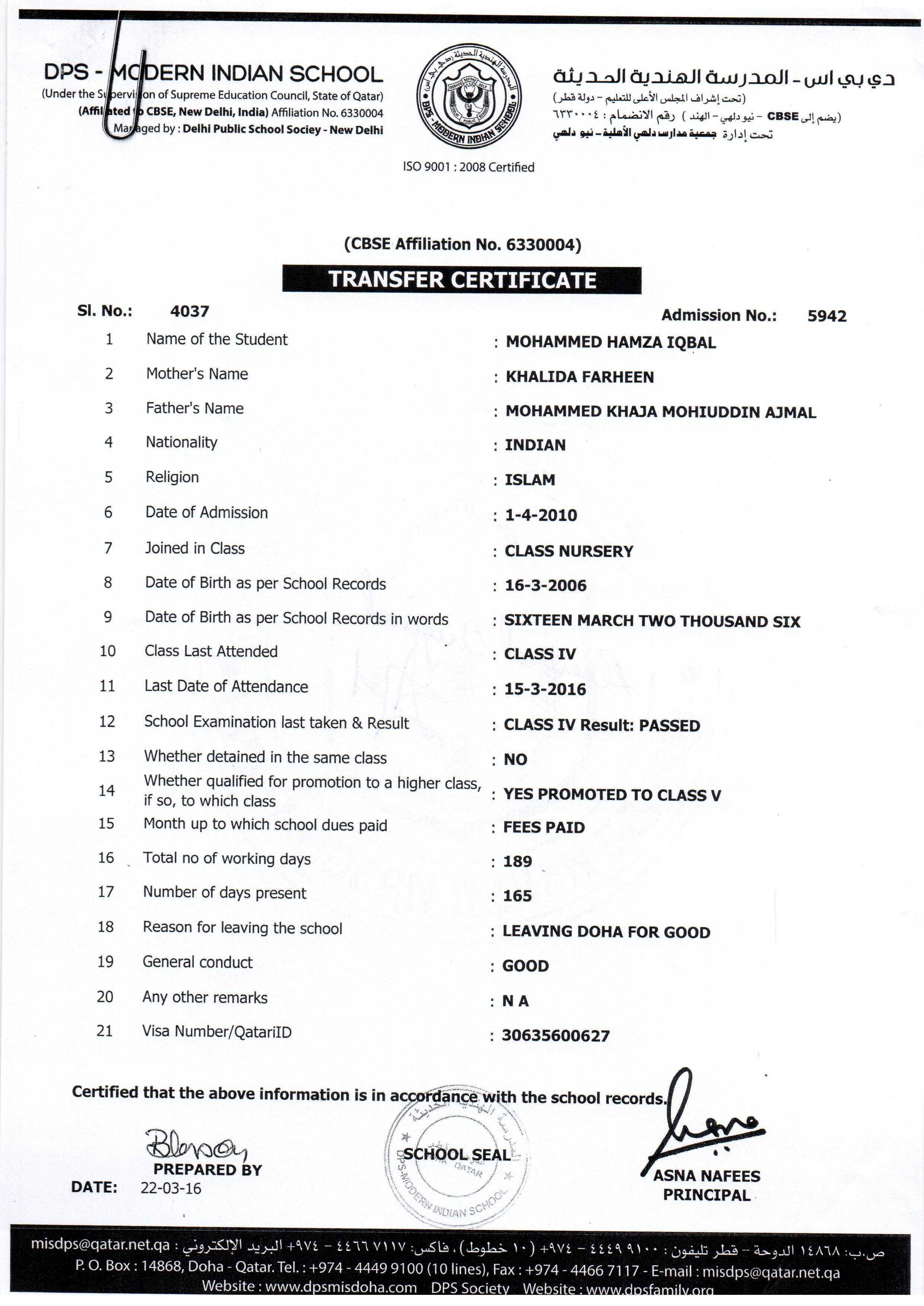5942 Class IV MOHAMMED HAMZA IQBAL