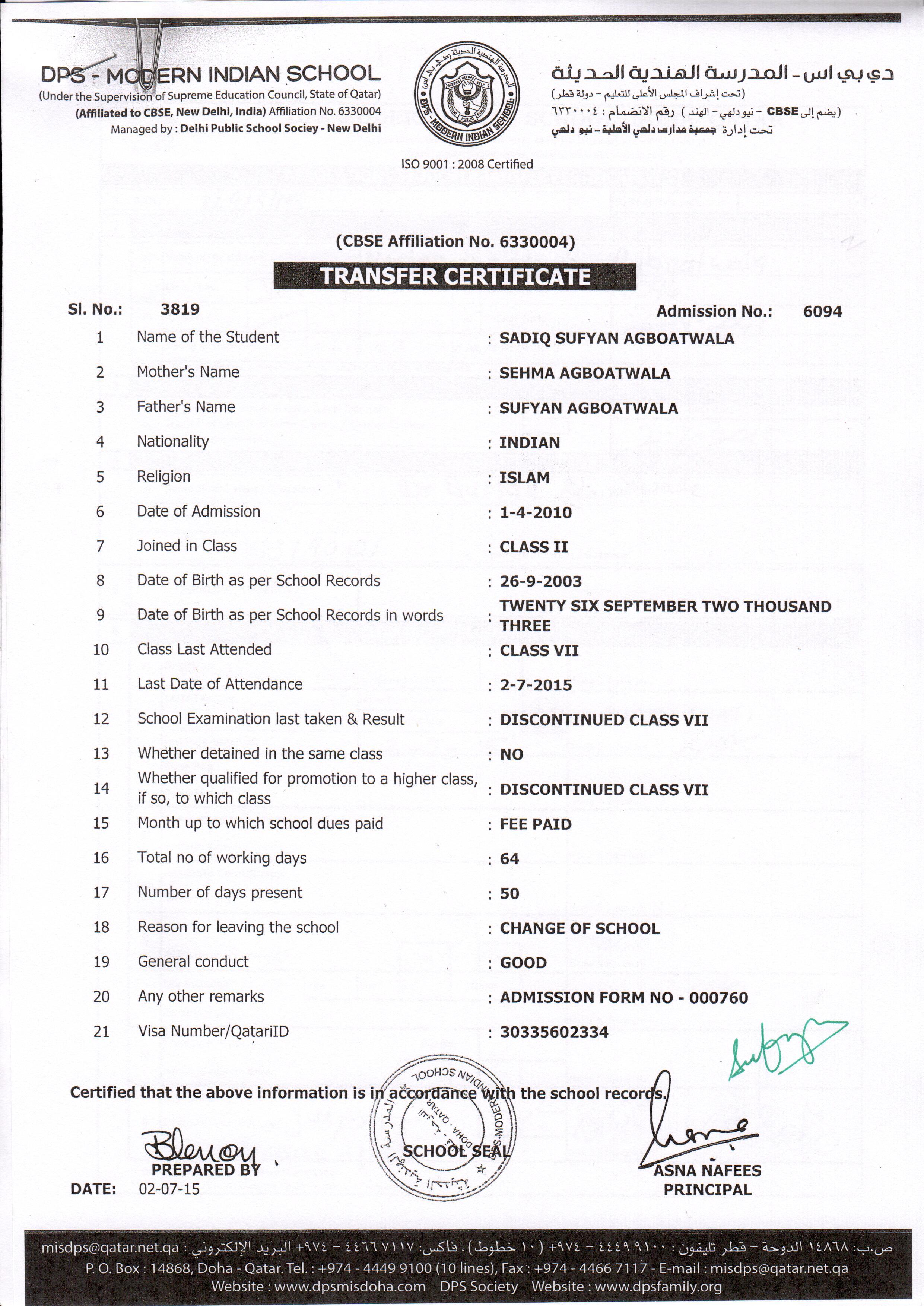 6094 Class VII SADIQ SUFYAN AGBOATWALA