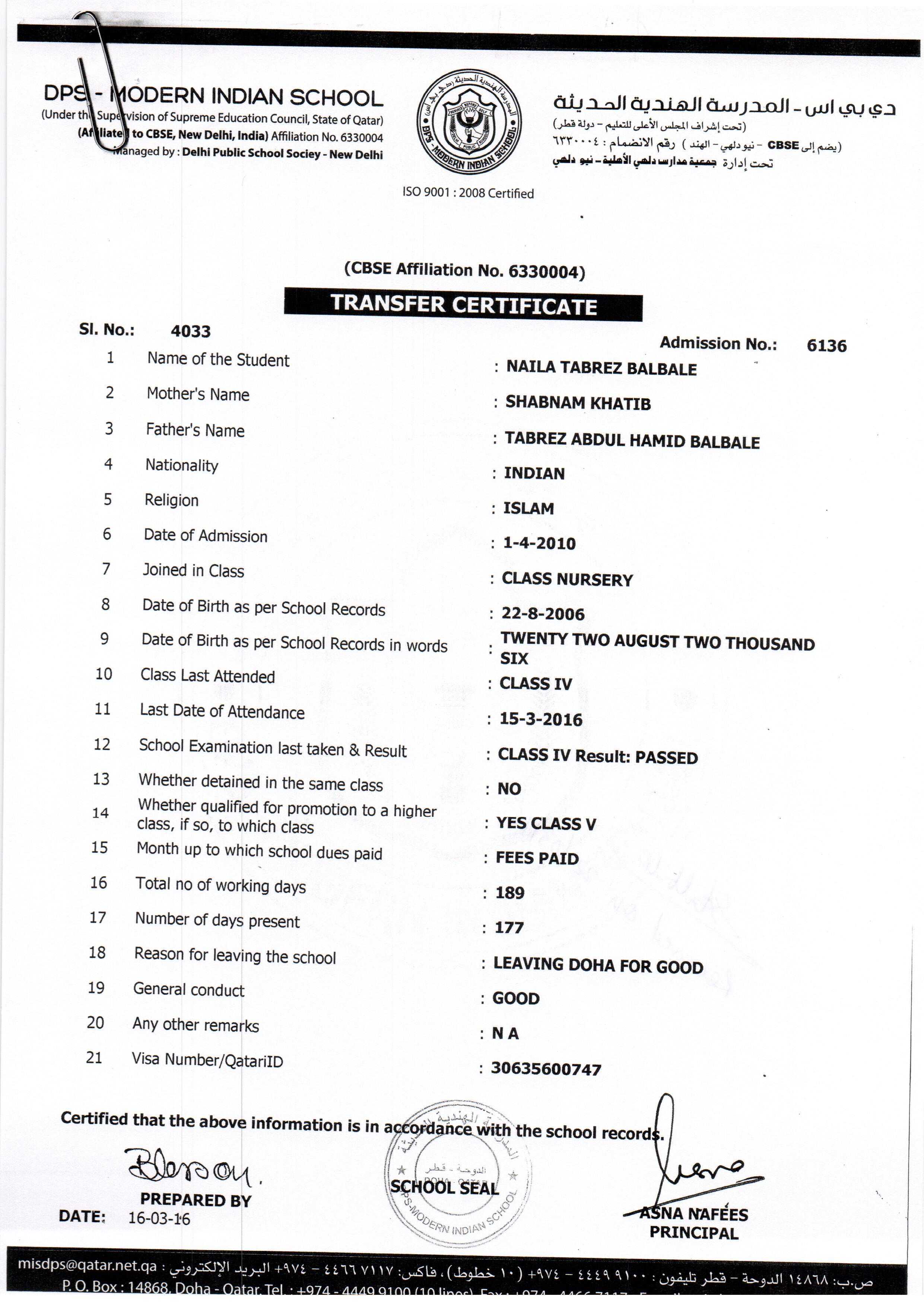 6136 Class IV NAILA TABREZ BALBALE