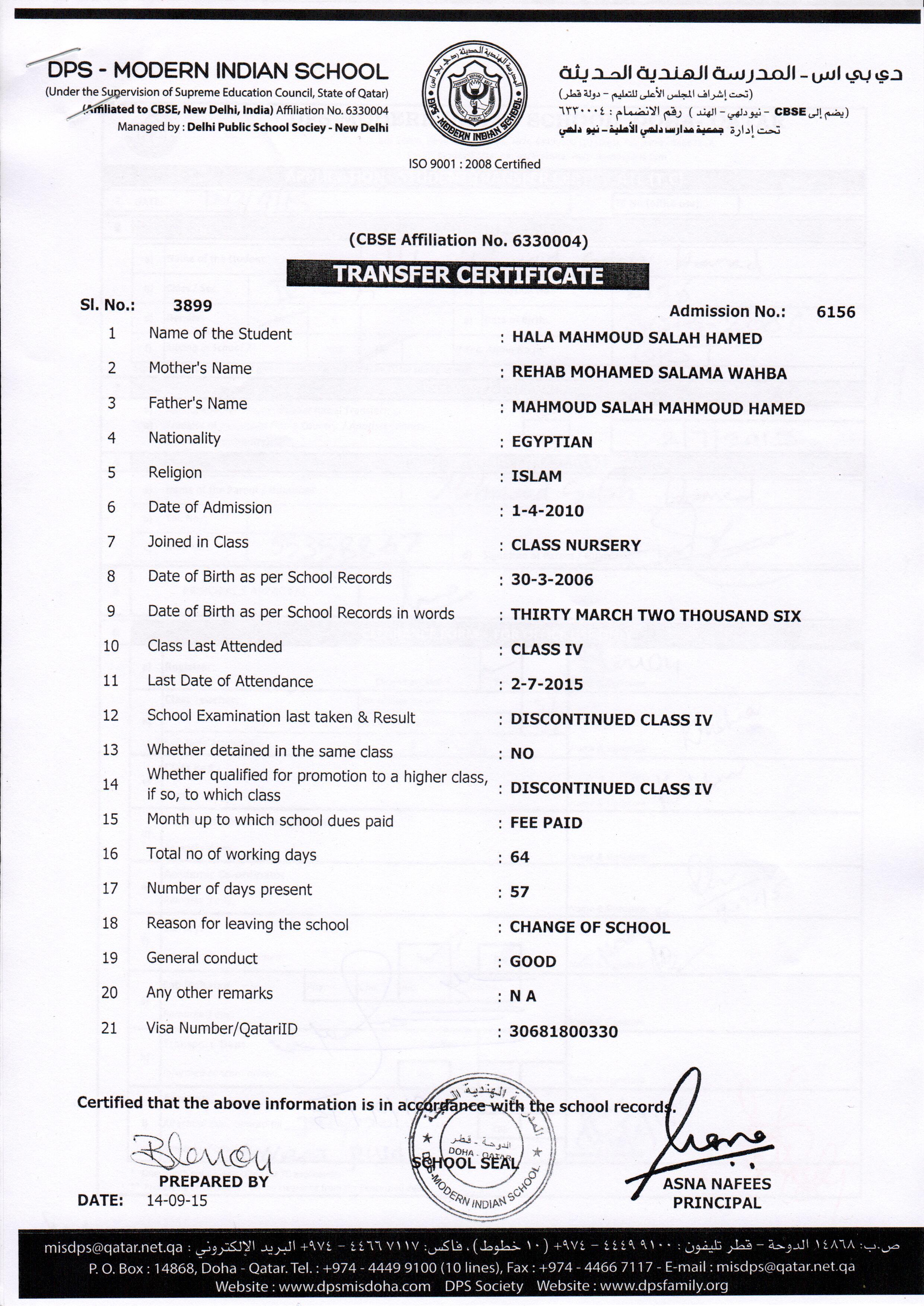 6156 Class IV HALA MAHMOUD SALAH HAMED
