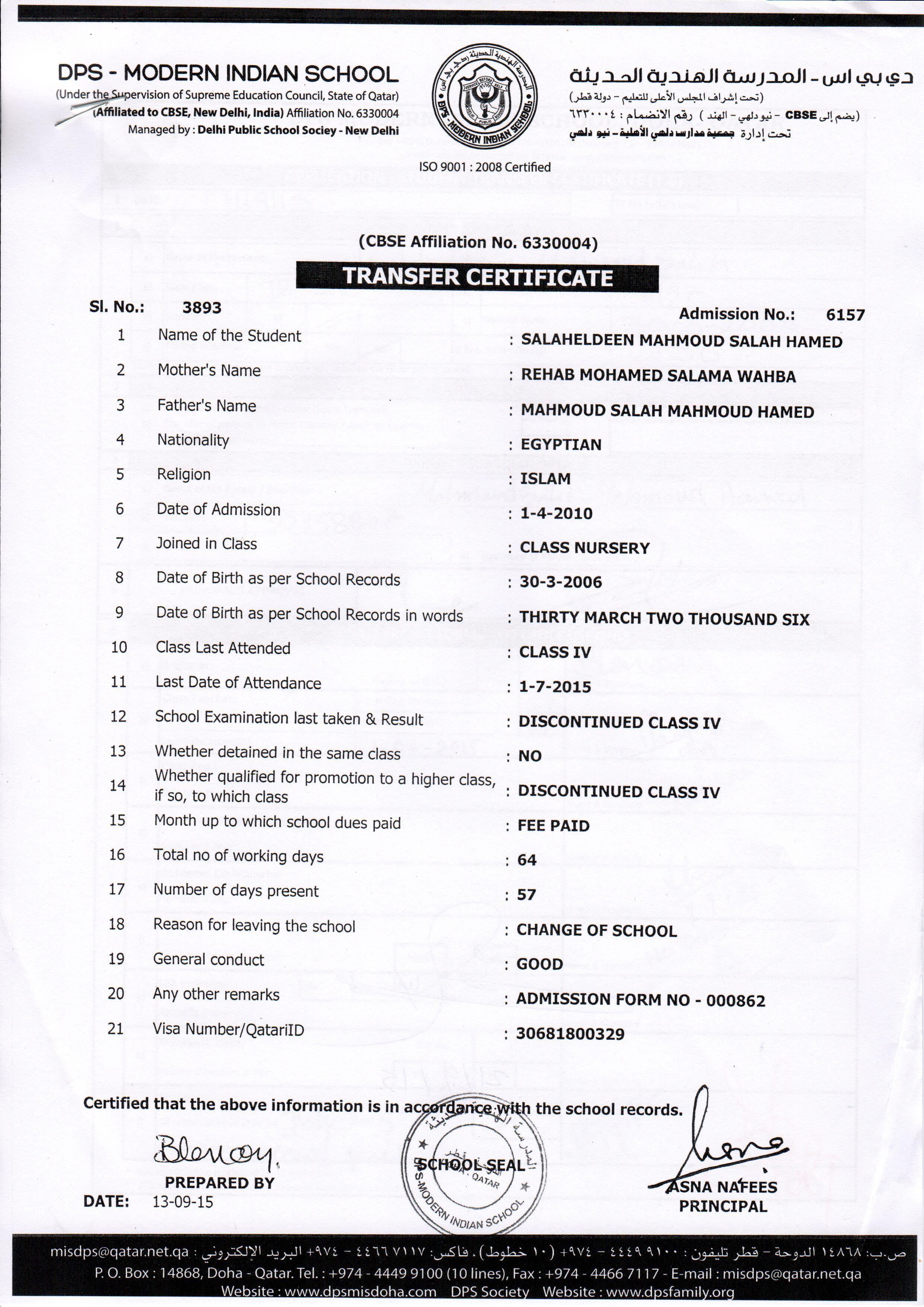6157 Class IV SALAHELDEEN MAHMOUD SALAH HAMED