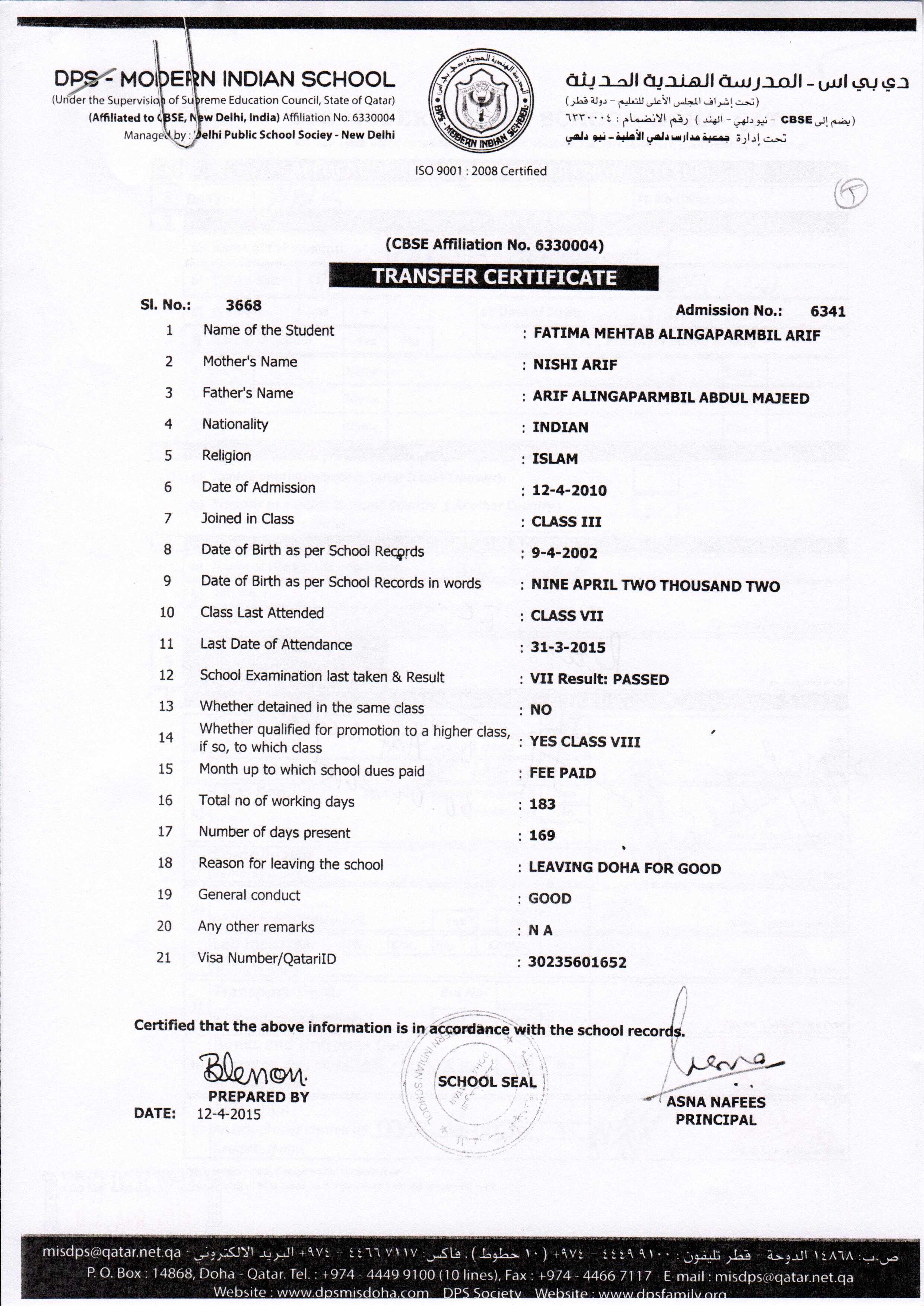 6341 Class VIII FATIMA MEHTAB ALINGAPARMBIL ARIF