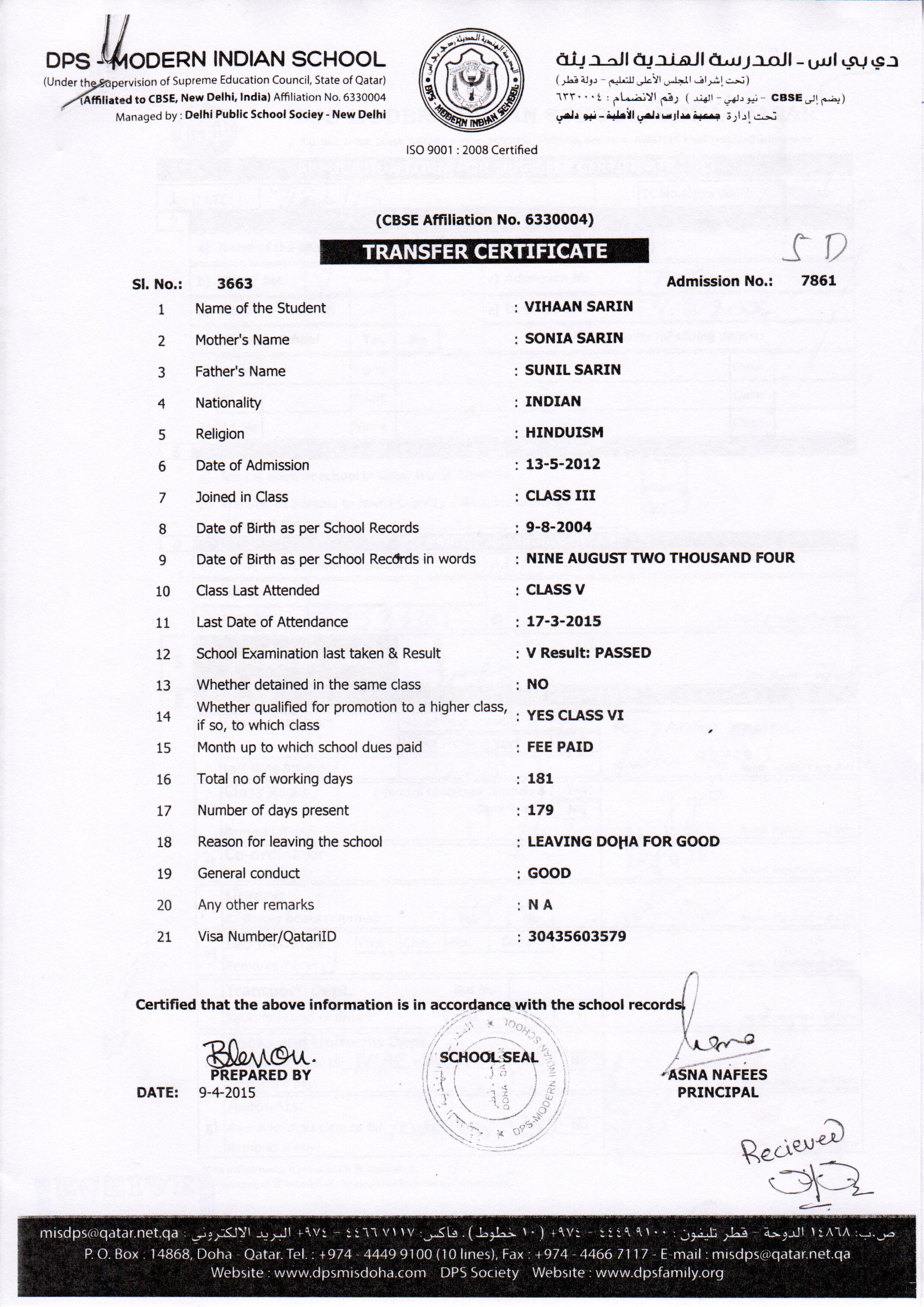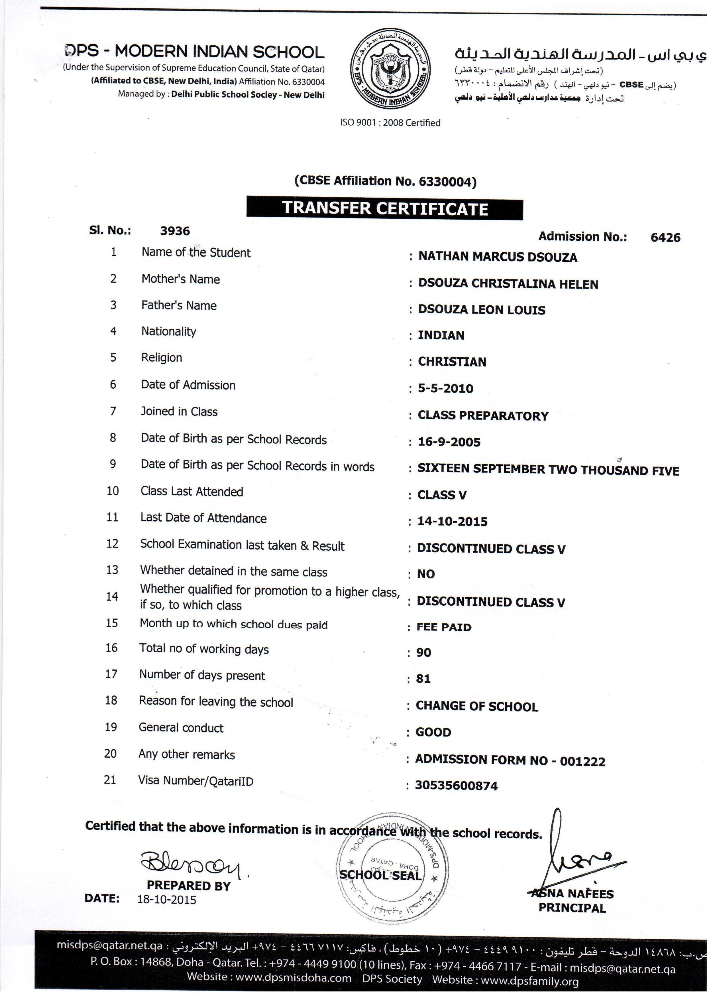 6426 Class V NATHAN MARCUS DSOUZA