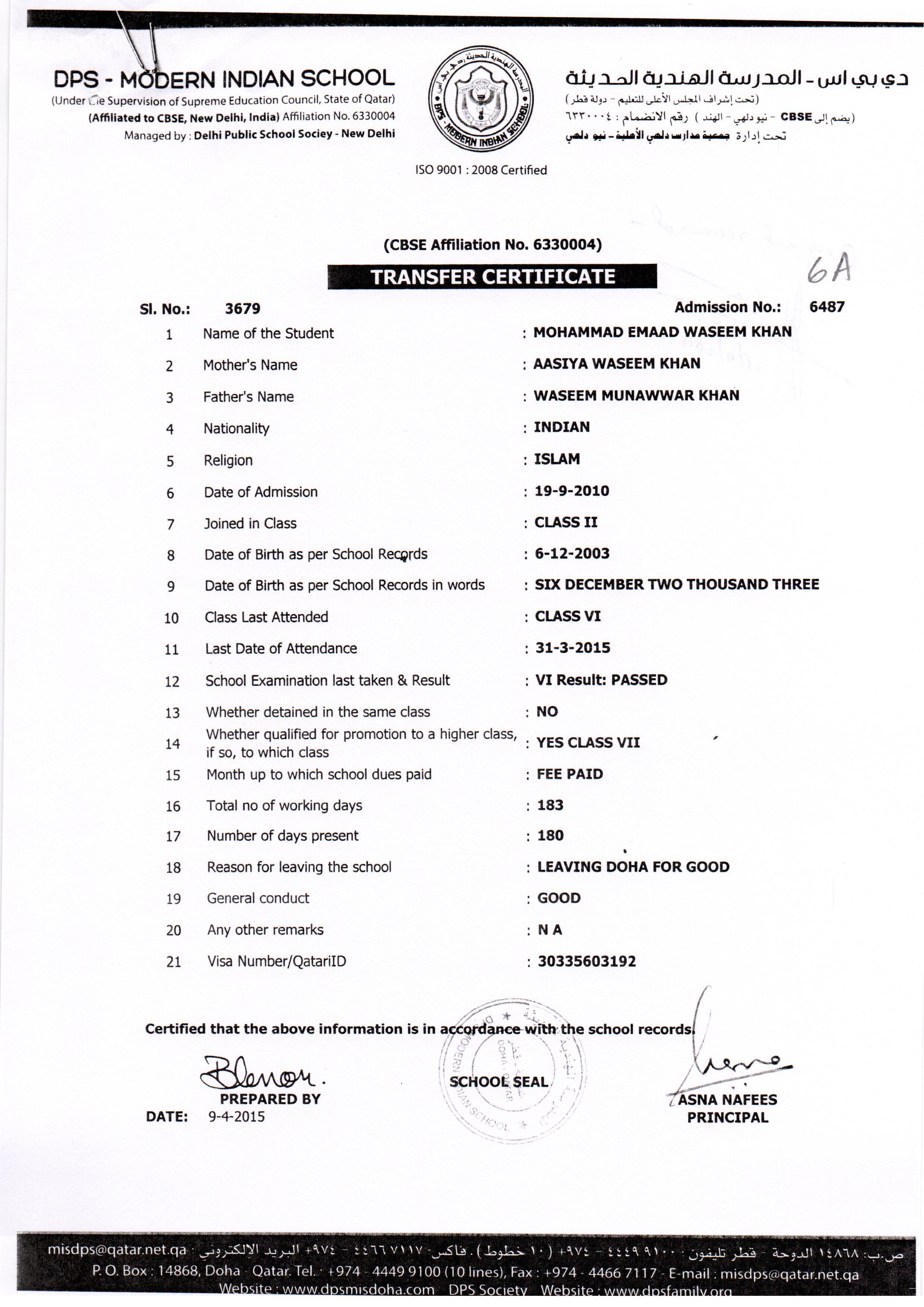 6487 Class VII MOHAMMAD EMAAD WASEEM KHAN