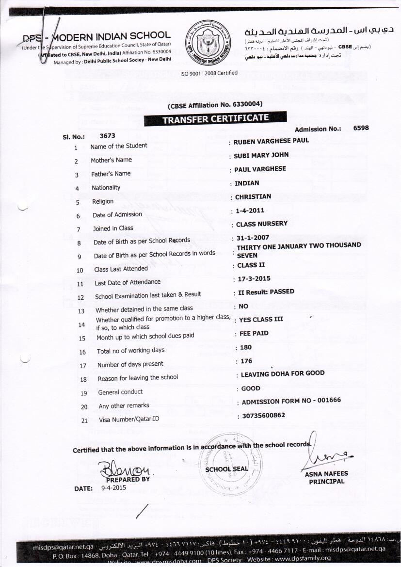 6598 Class III RUBEN VARGHESE PAUL