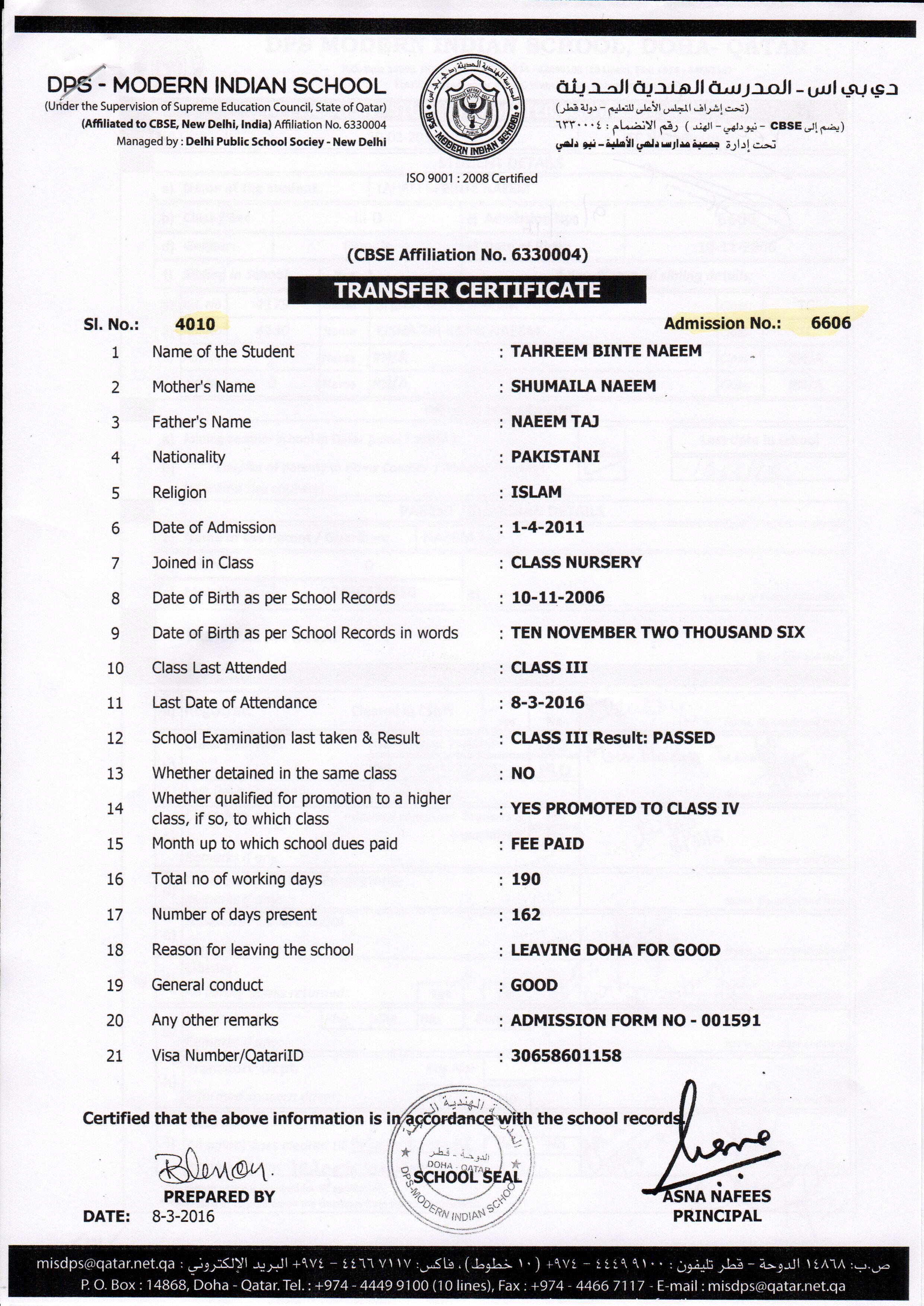 6606 Class III TAHREEM BINTE NAEEM