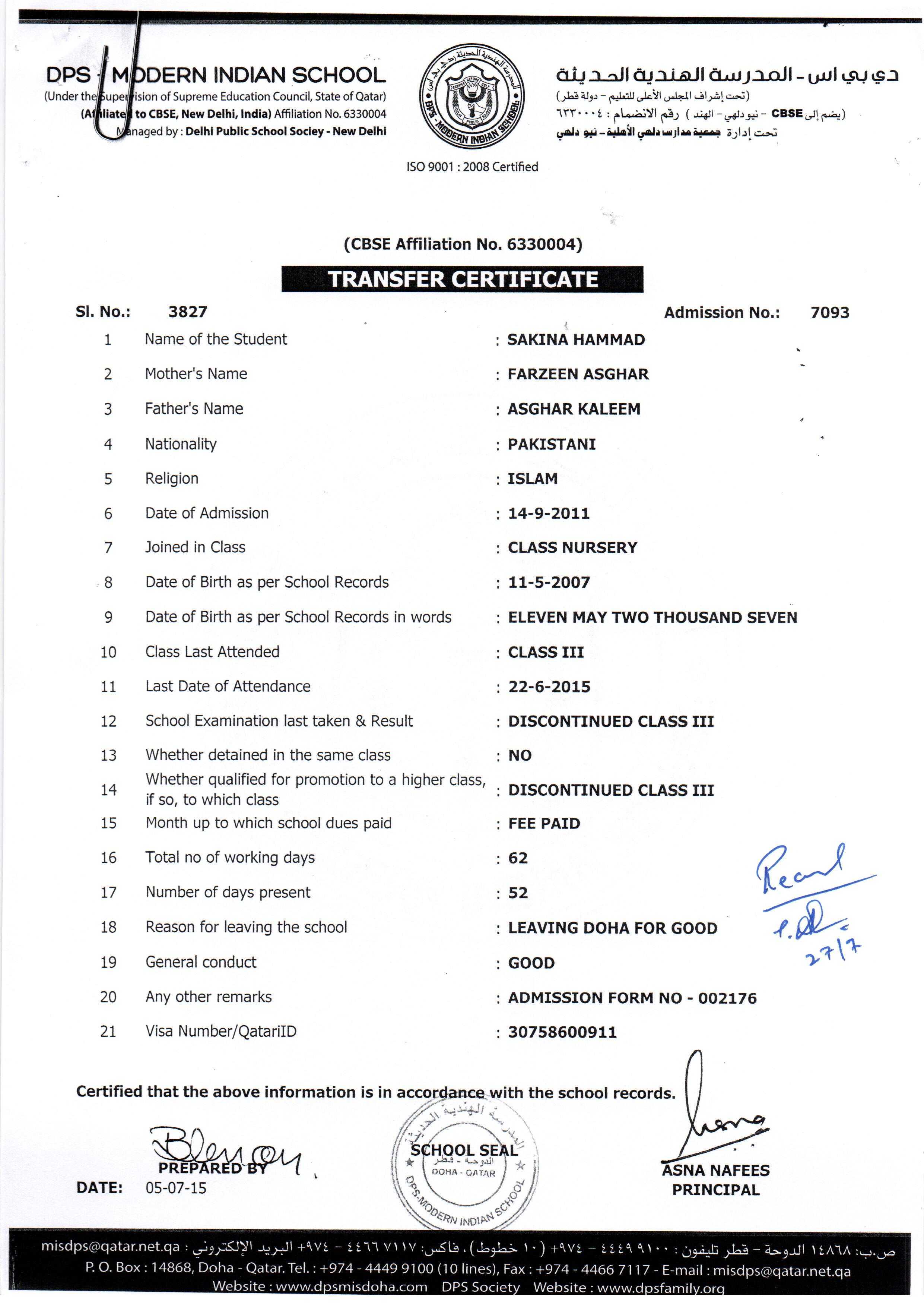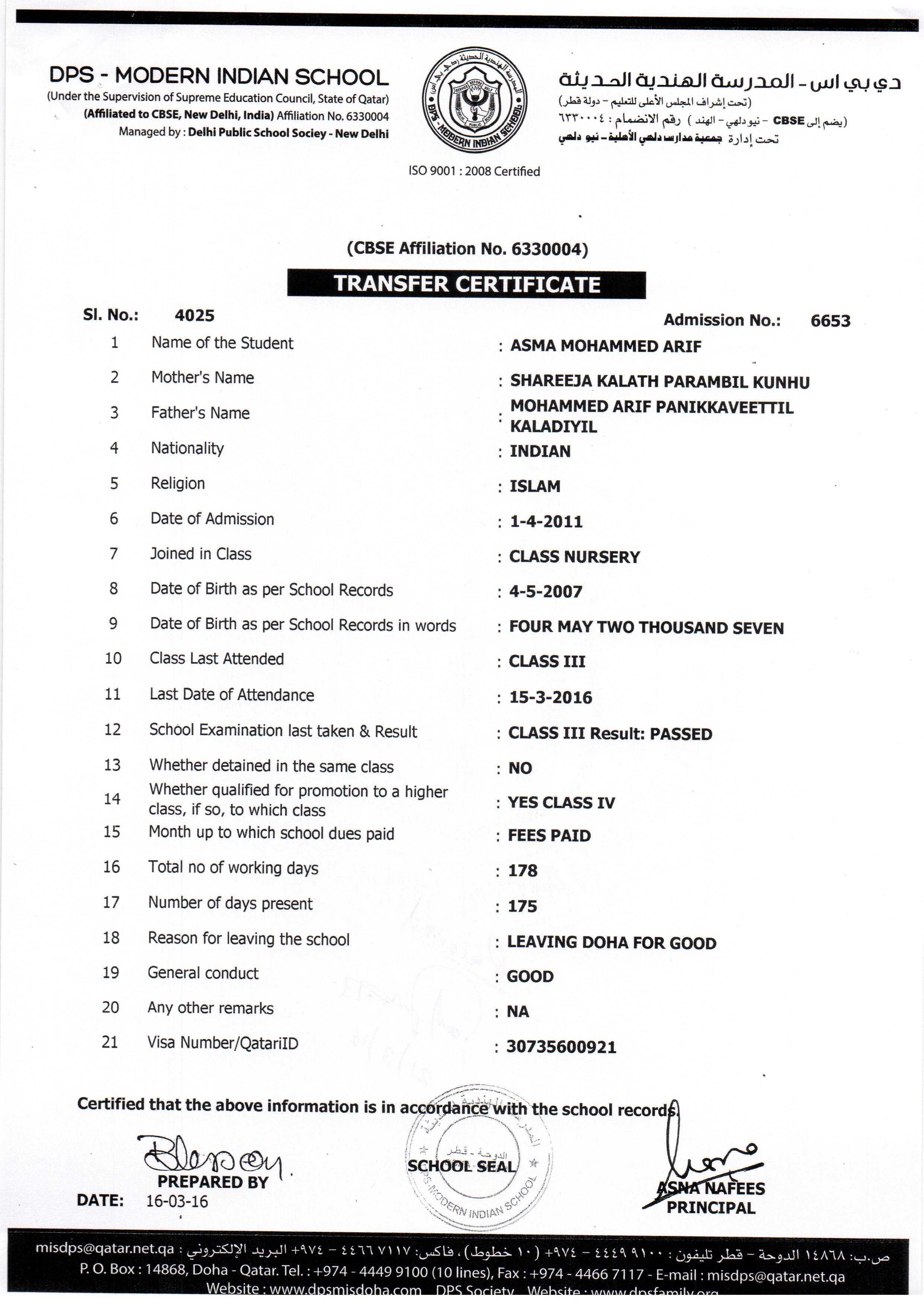 6653 Class III ASMA MOHAMMED ARIF