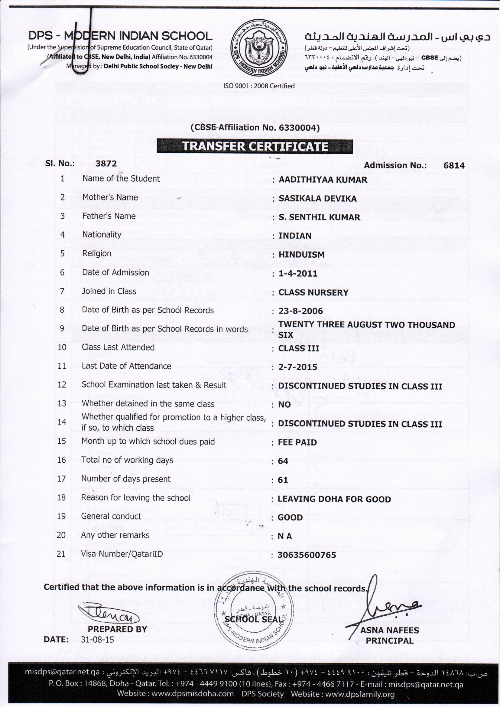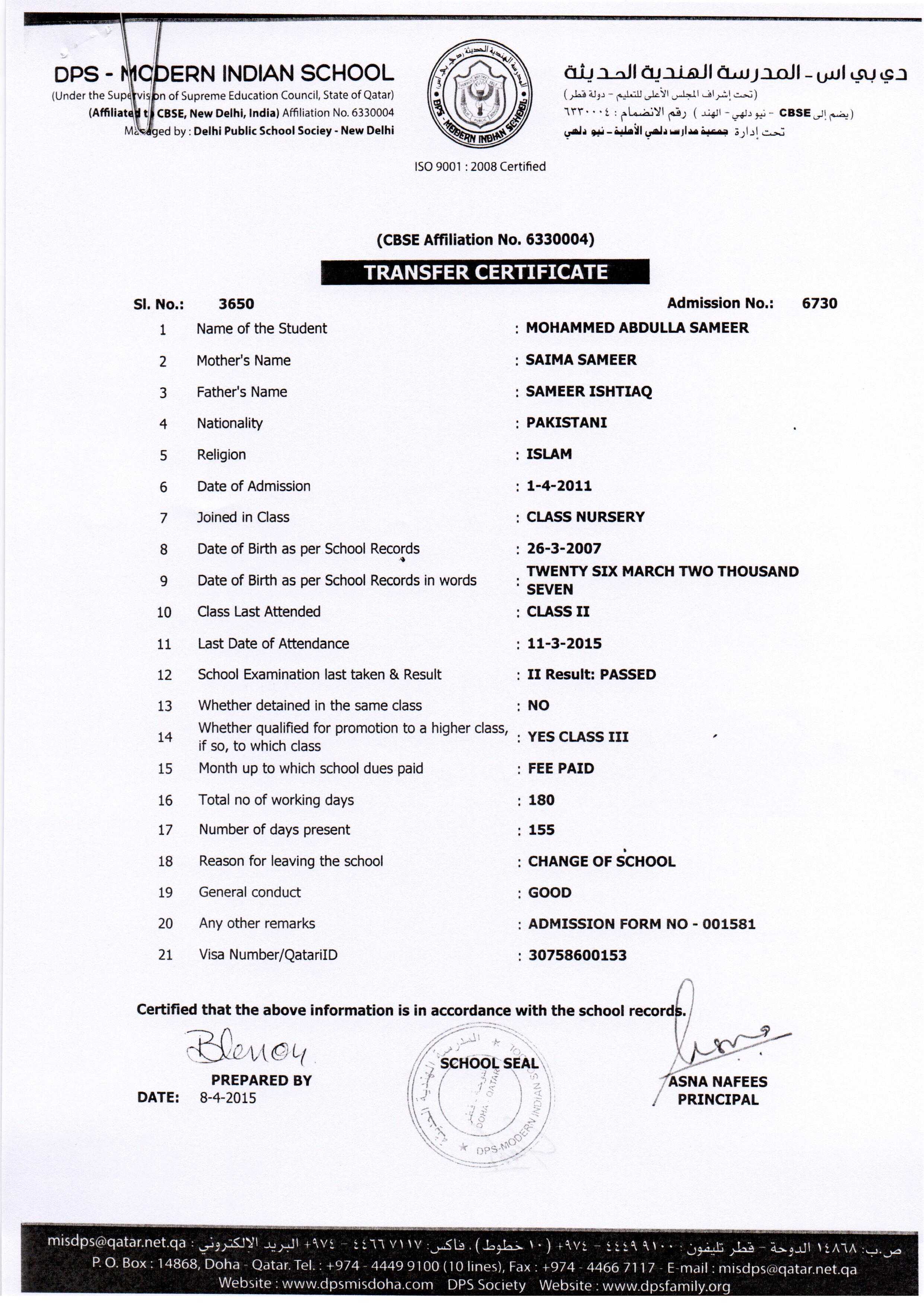 6730 Class III MOHAMMED ABDULLA SAMEER