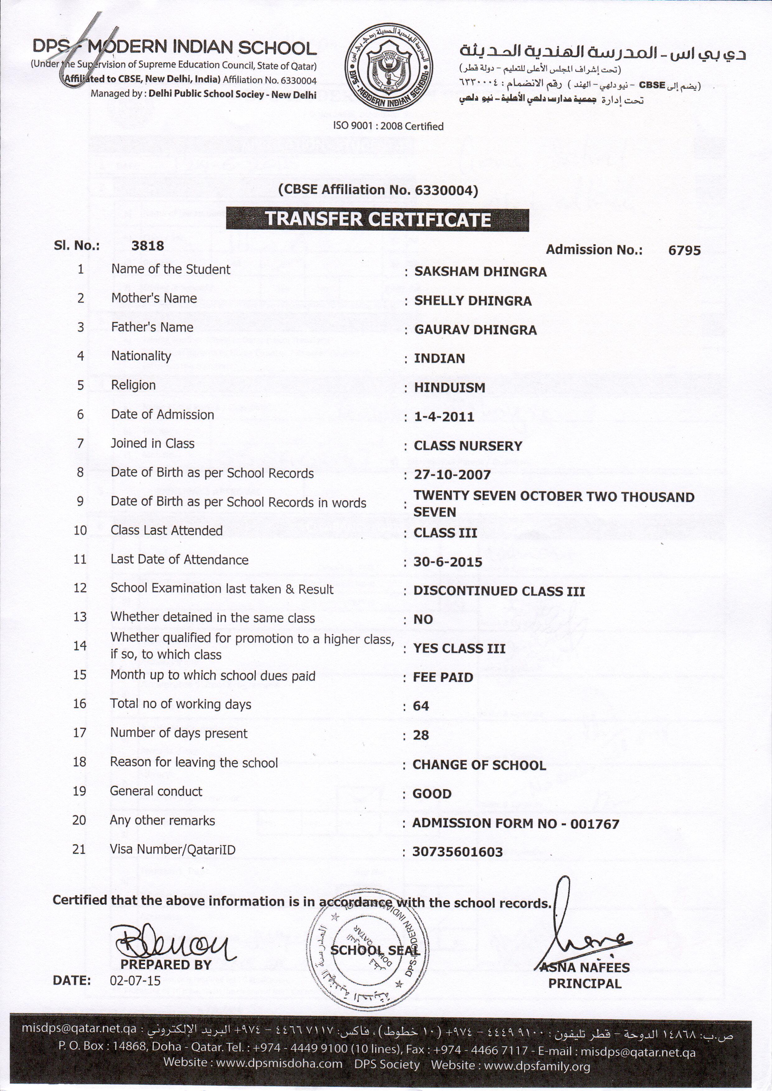 6795 Class III SAKSHAM DHINGRA