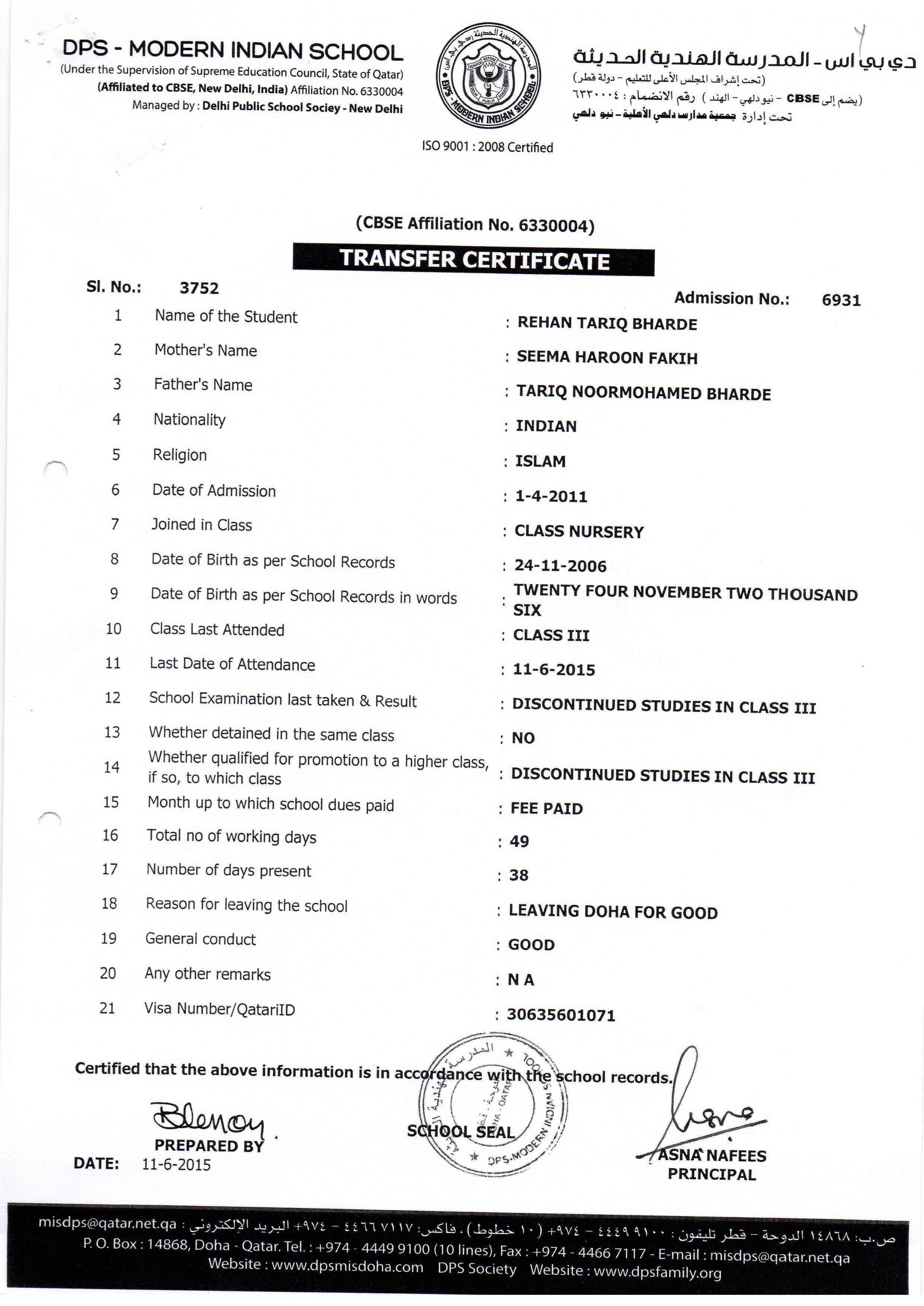 6931 Class III REHAN TARIQ BHARDE