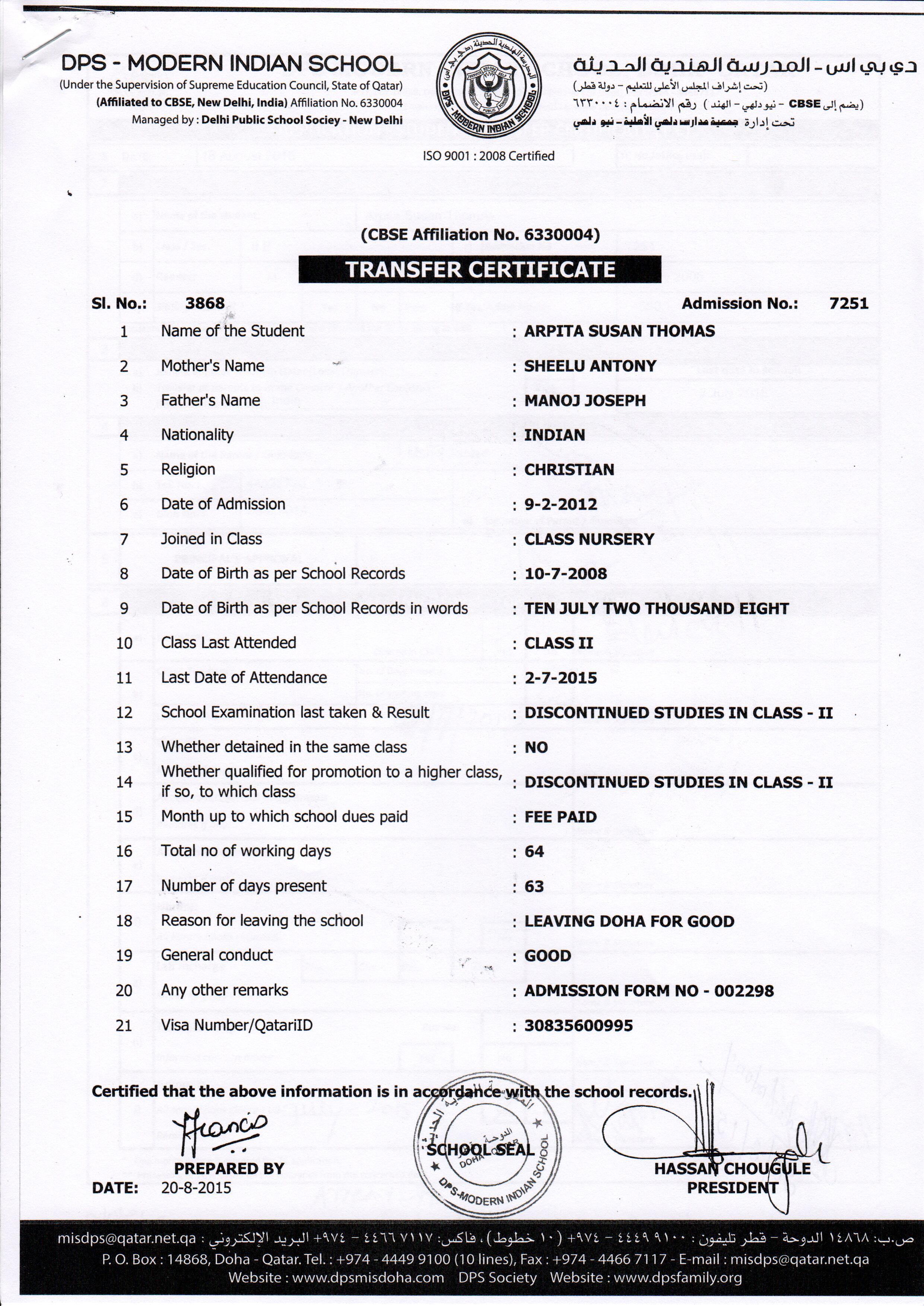 7251 Class II ARPITA SUSAN THOMAS