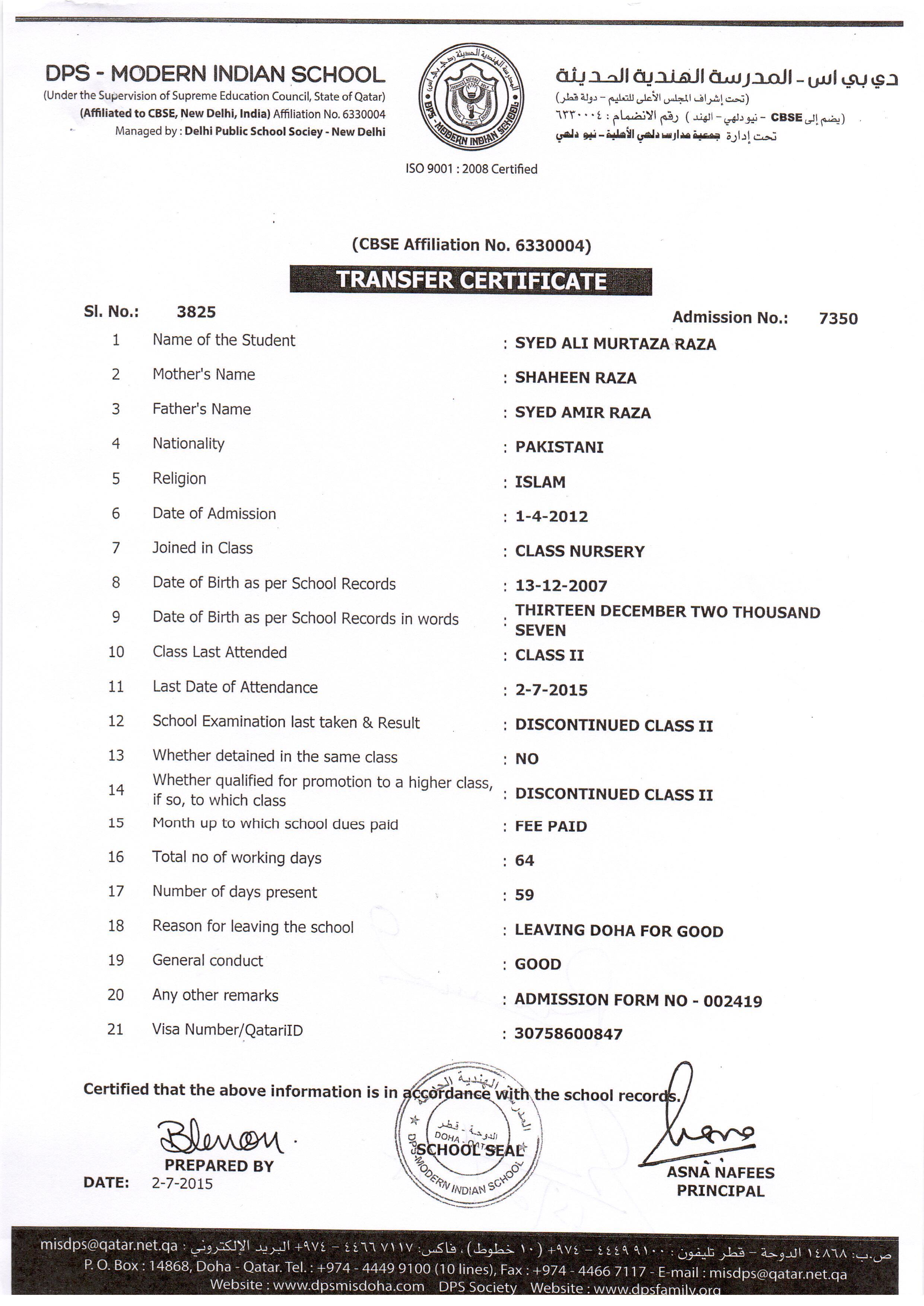 7350 Class II SYED ALI MURTAZA RAZA