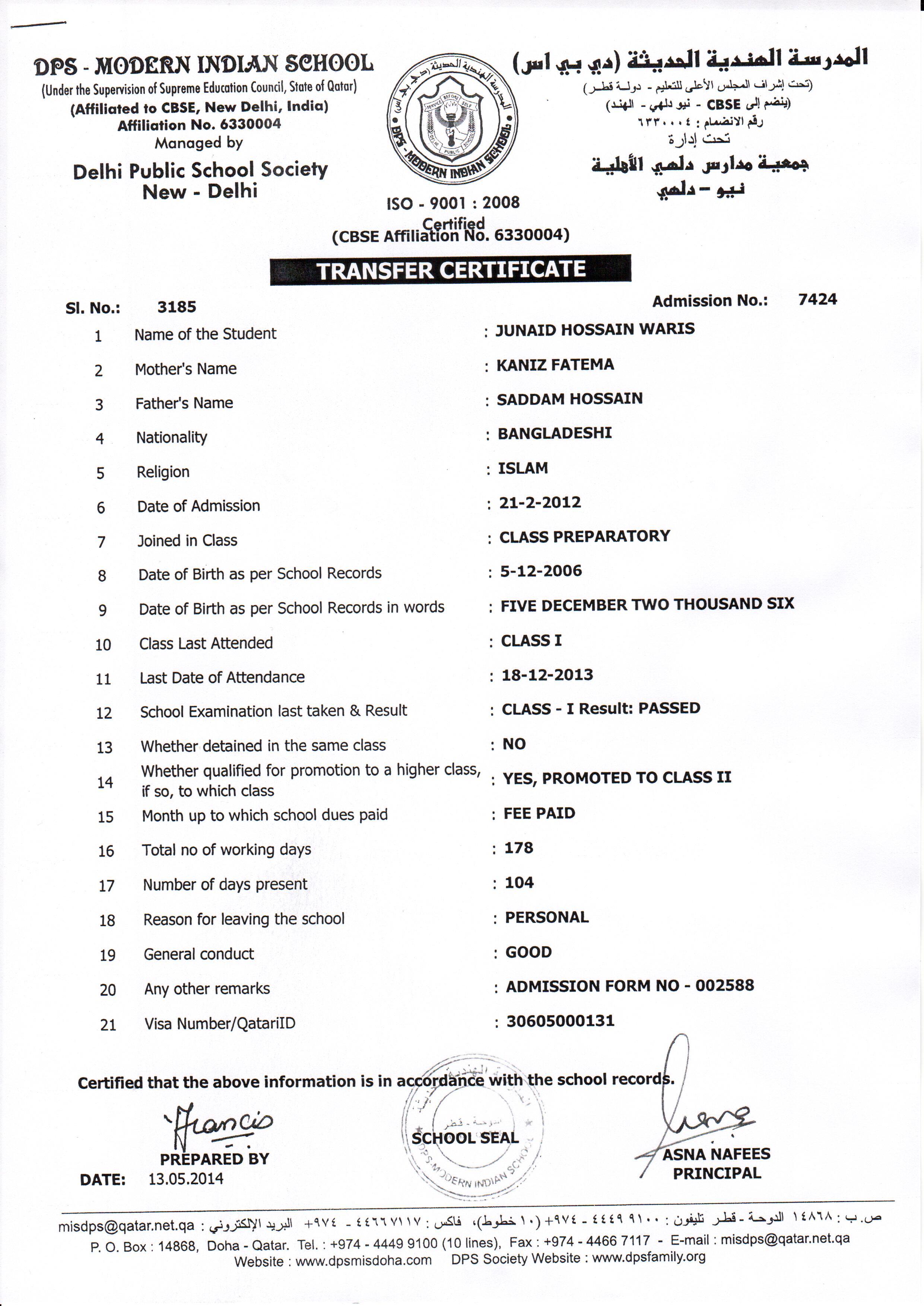 7424 Class II JUNAID HOSSAIN WARIS