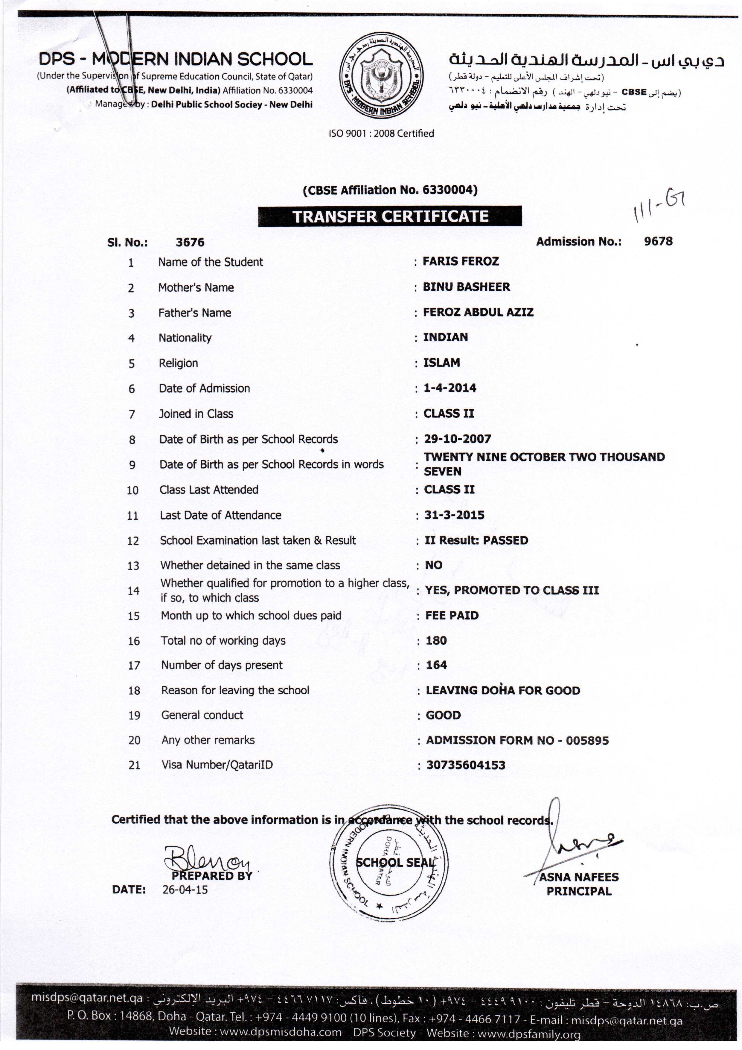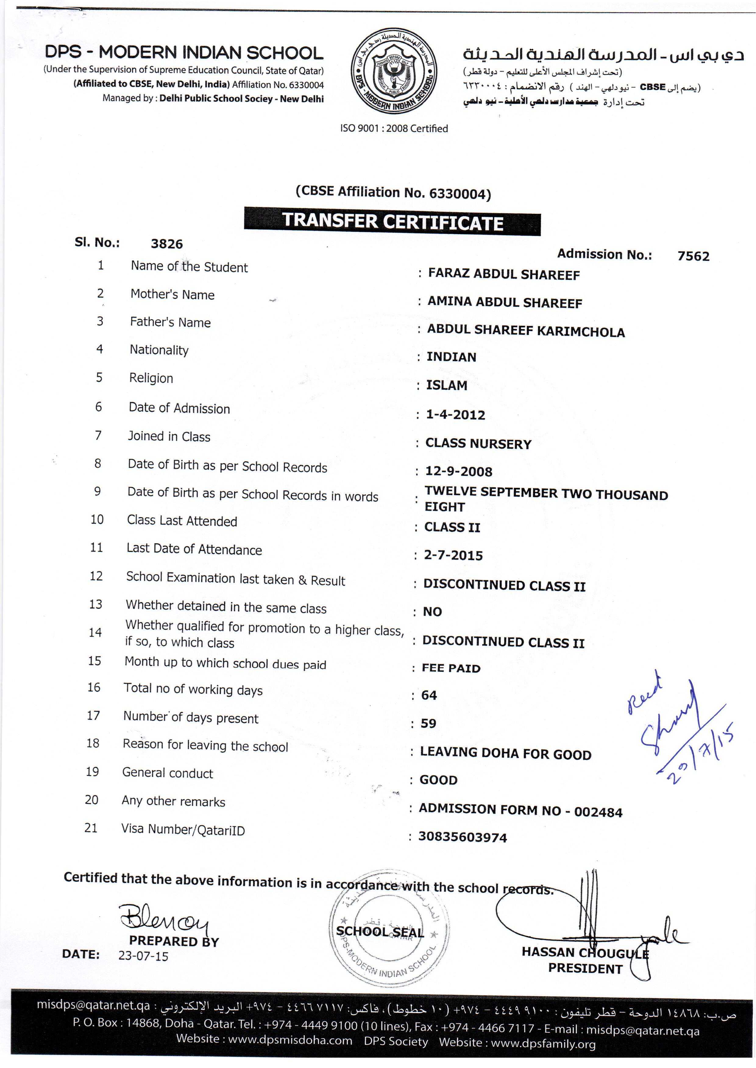 7562 Class II FARAZ ABDUL SHAREEF