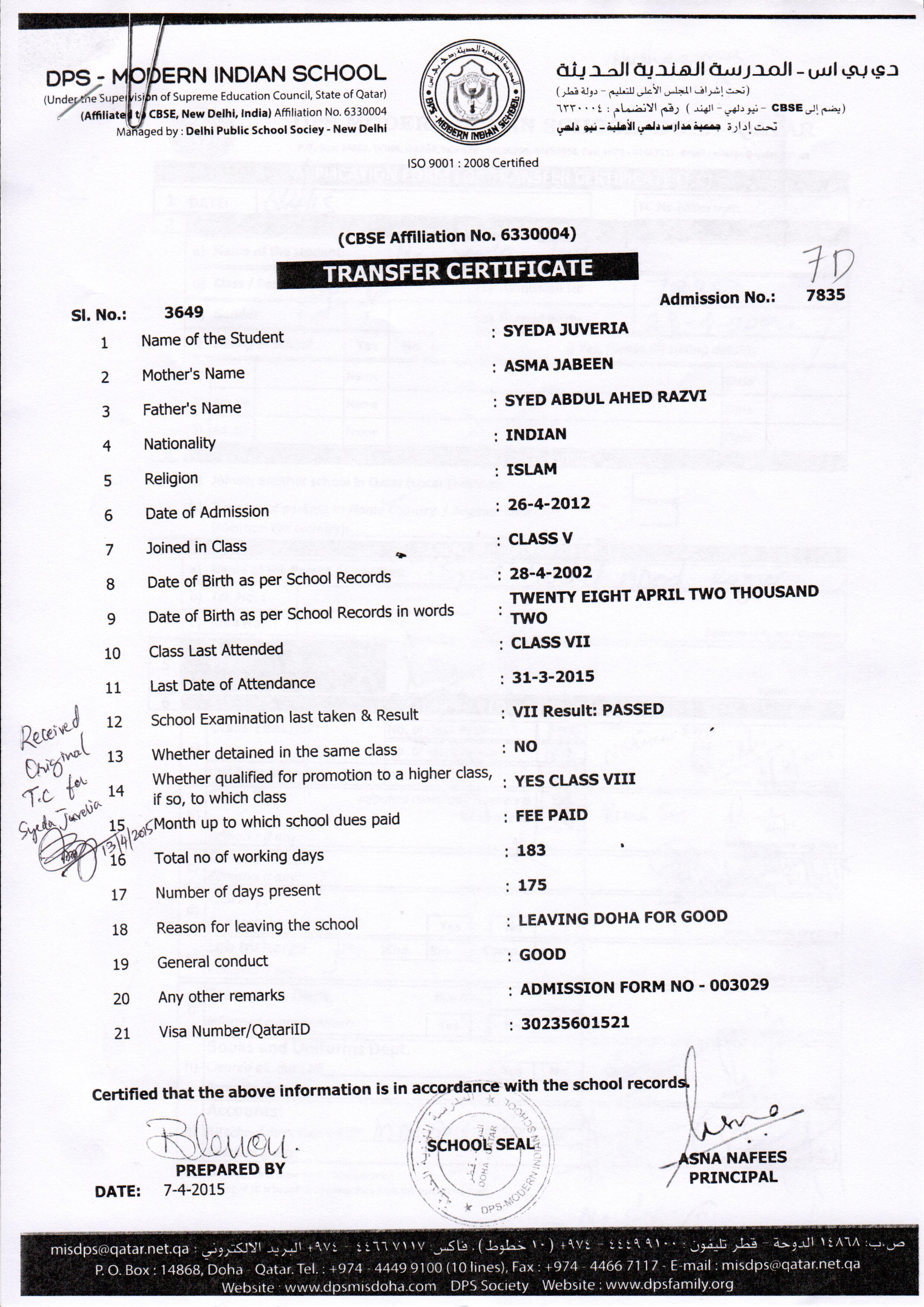7834 Class V SYED MUSAIB KHALED