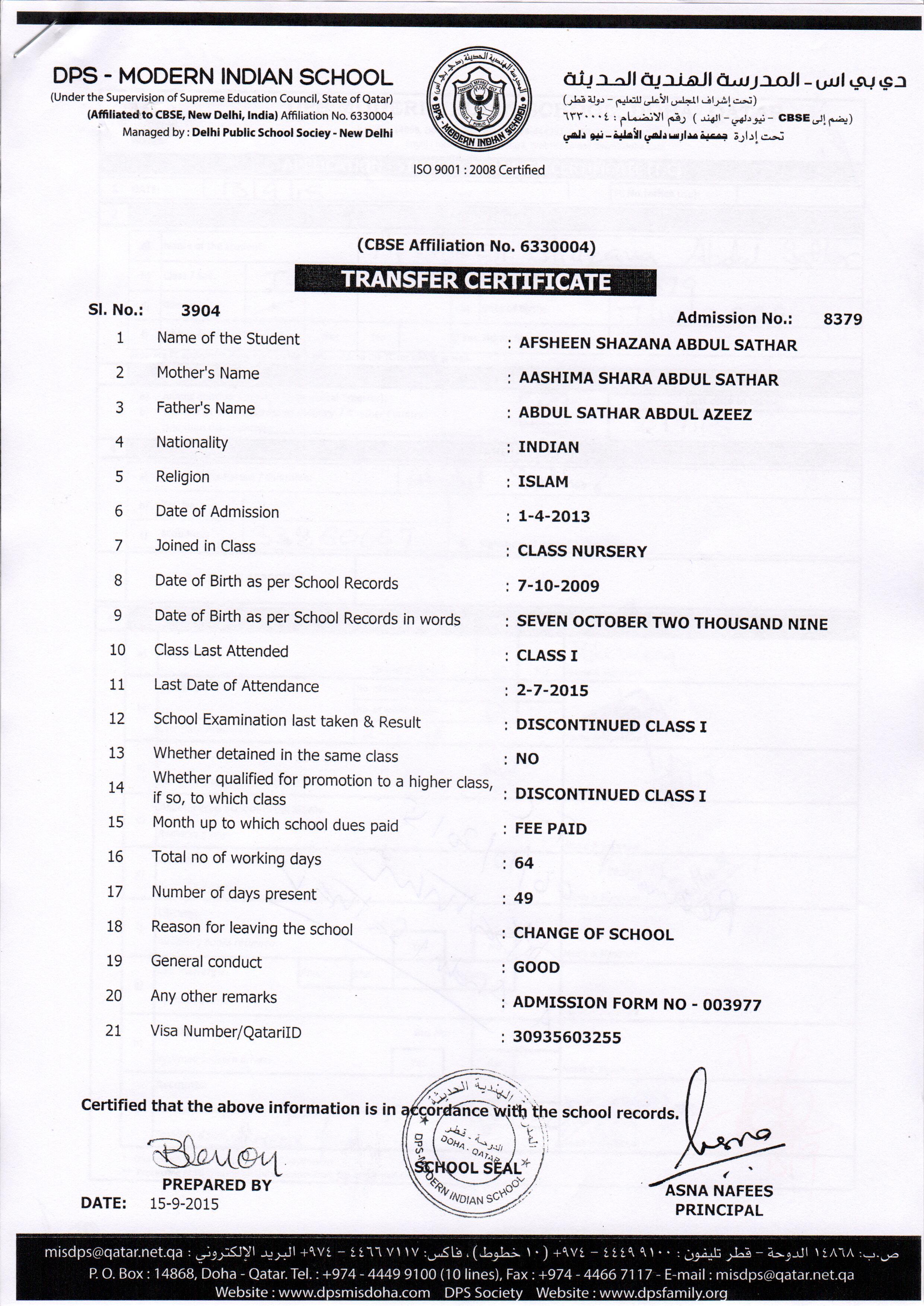 8379 Class-I AFSHEEN SHAZANA ABDUL SATHAR