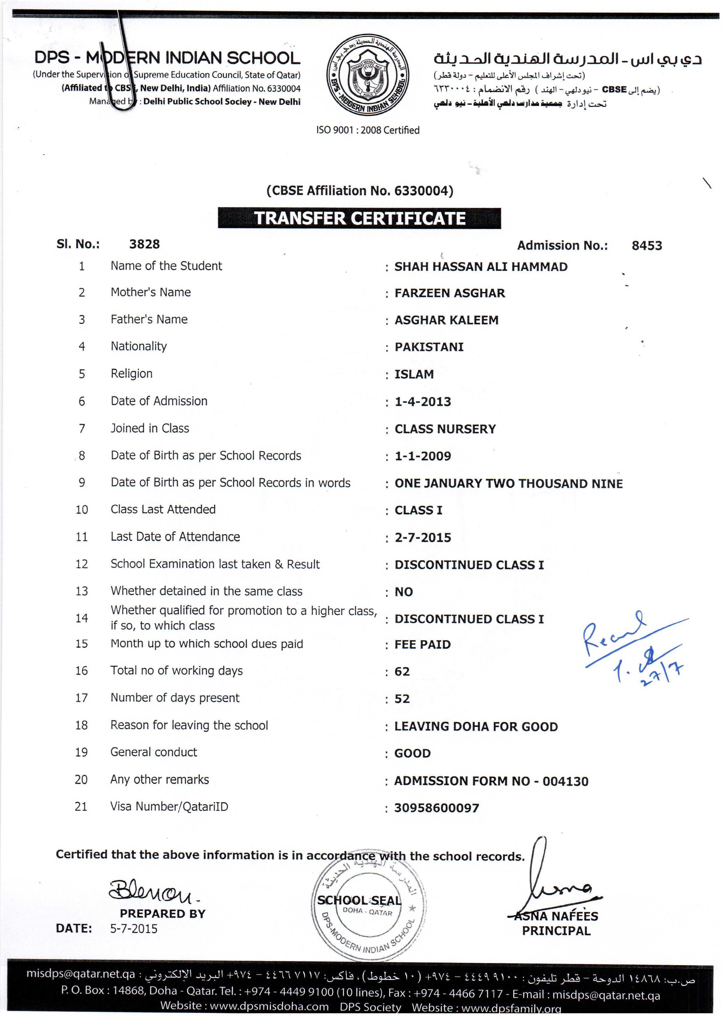 8453 Class-I SHAH HASSAN ALI HAMMAD