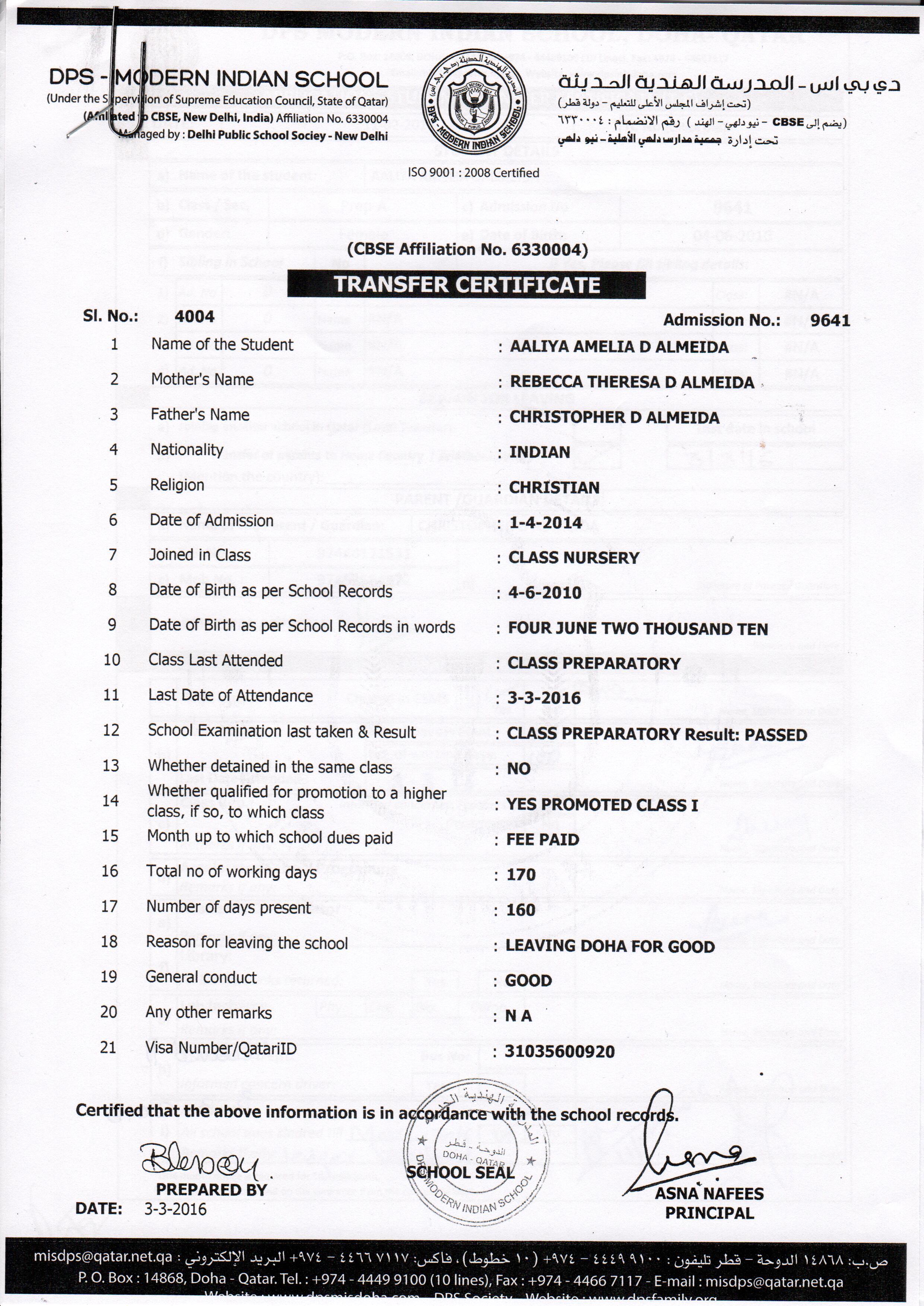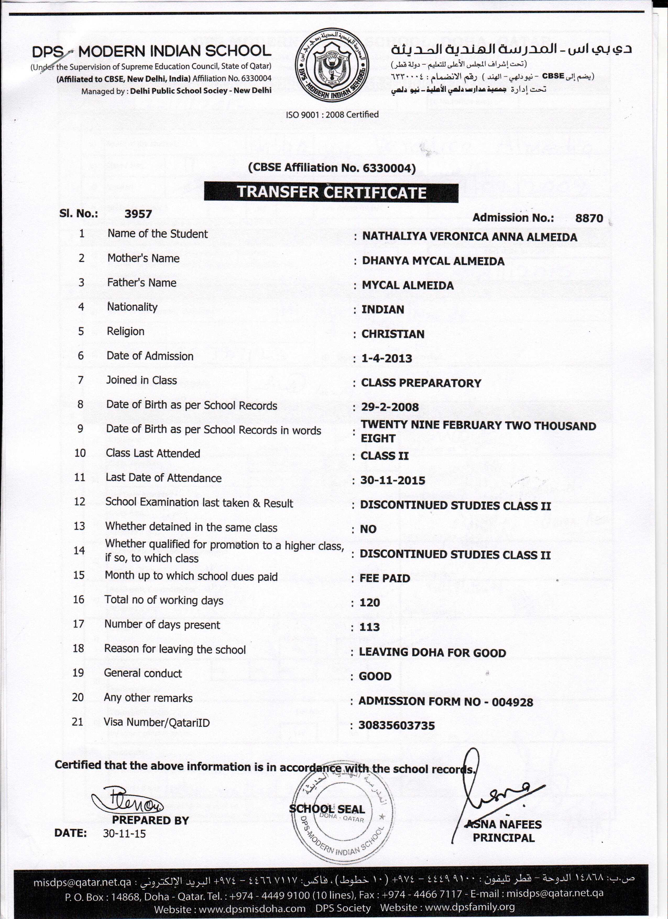 8870 Class II NATHALIYA VERONICA ANNA ALMEIDA