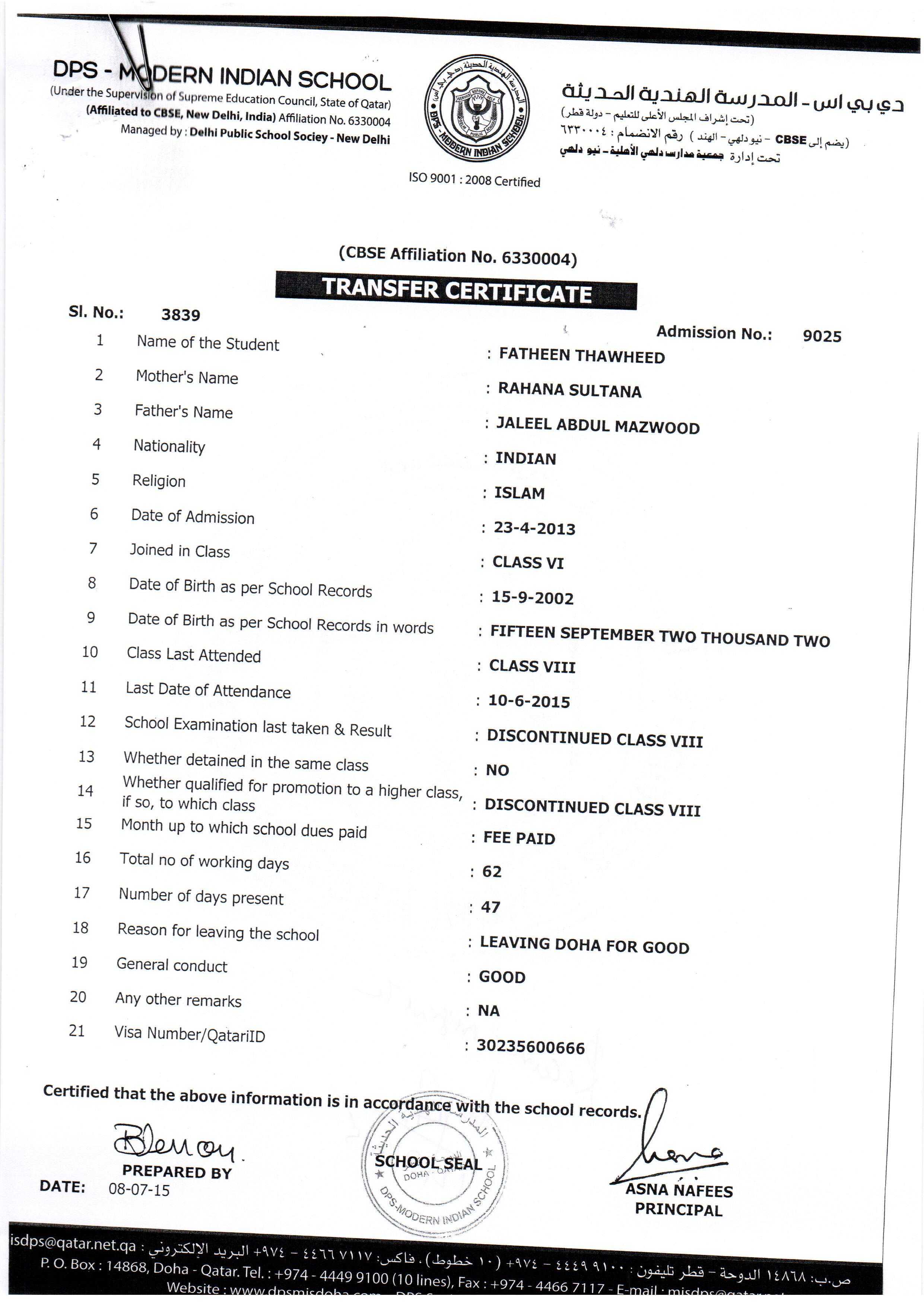 9025 Class VIII FATHEEN THAWHEED