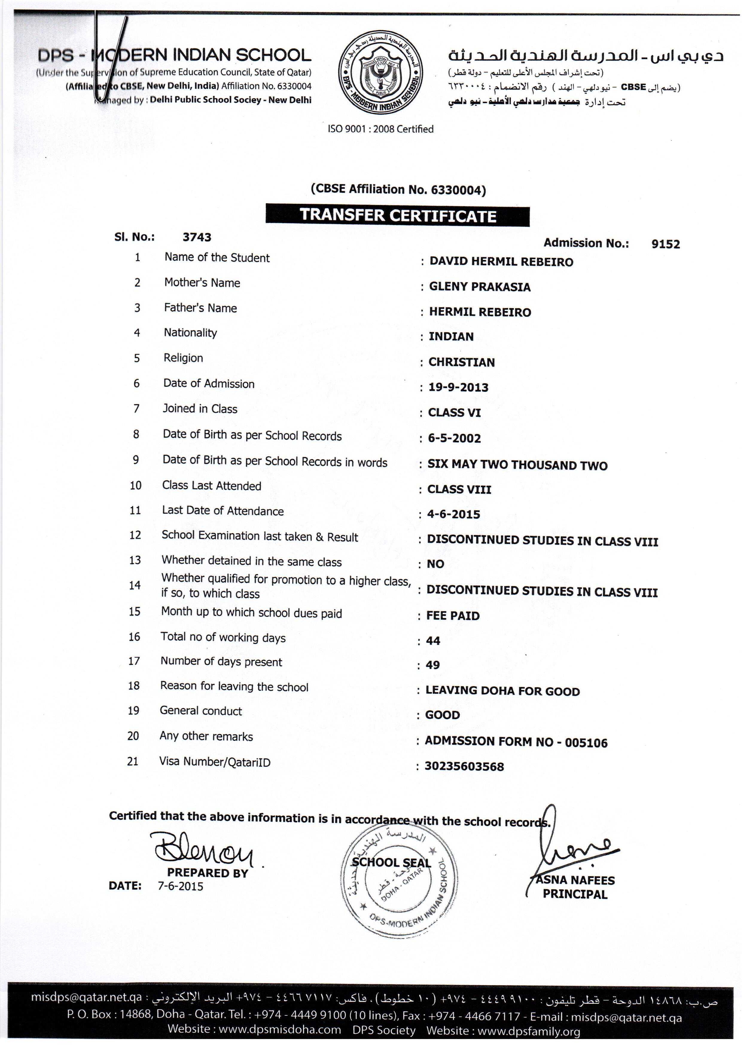9152 Class VIII DAVID HERMIL REBEIRO