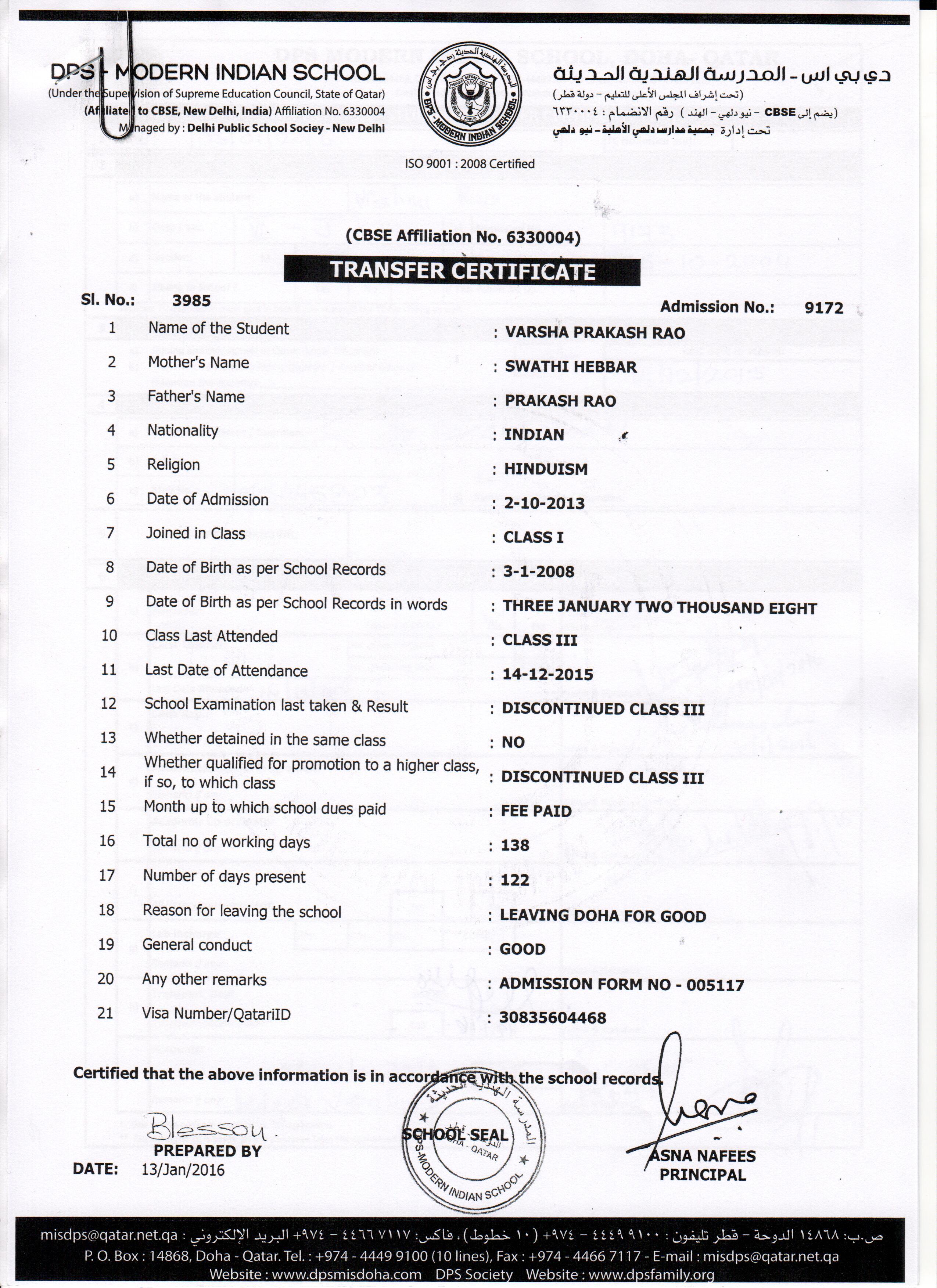 9172 Class III VARSHA PRAKASH RAO