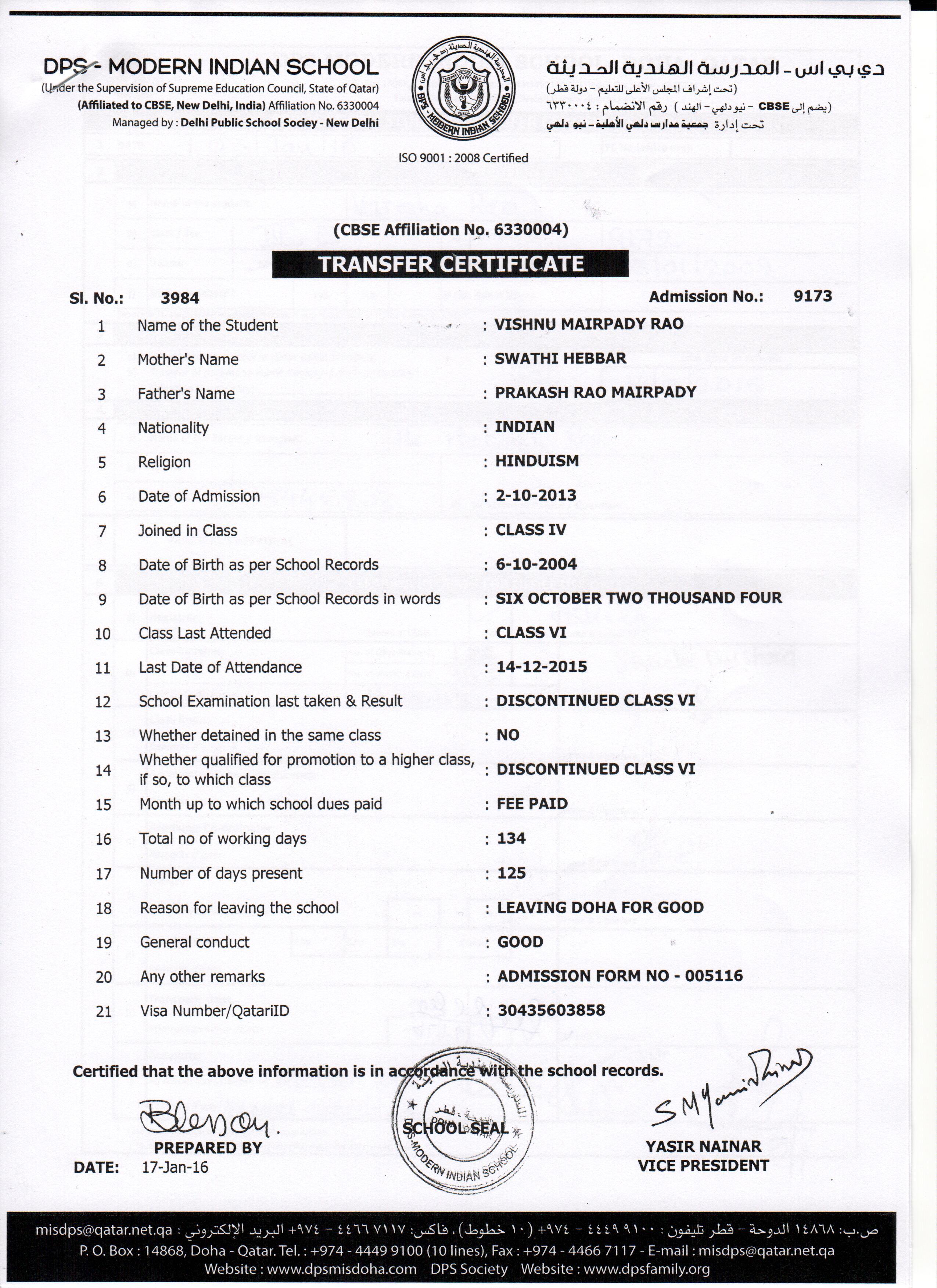 9173 Class VI VISHNU MAIRPADY RAO