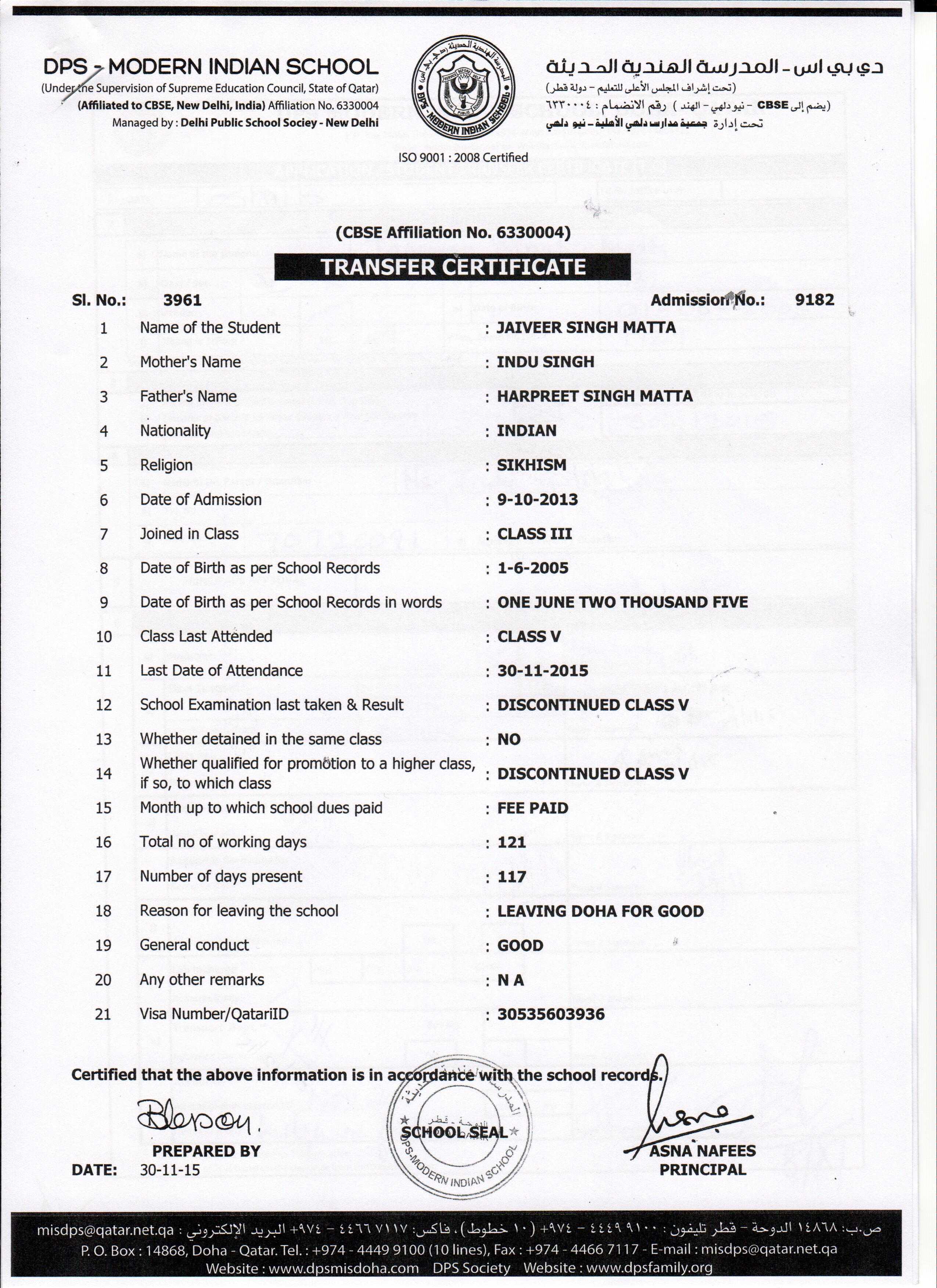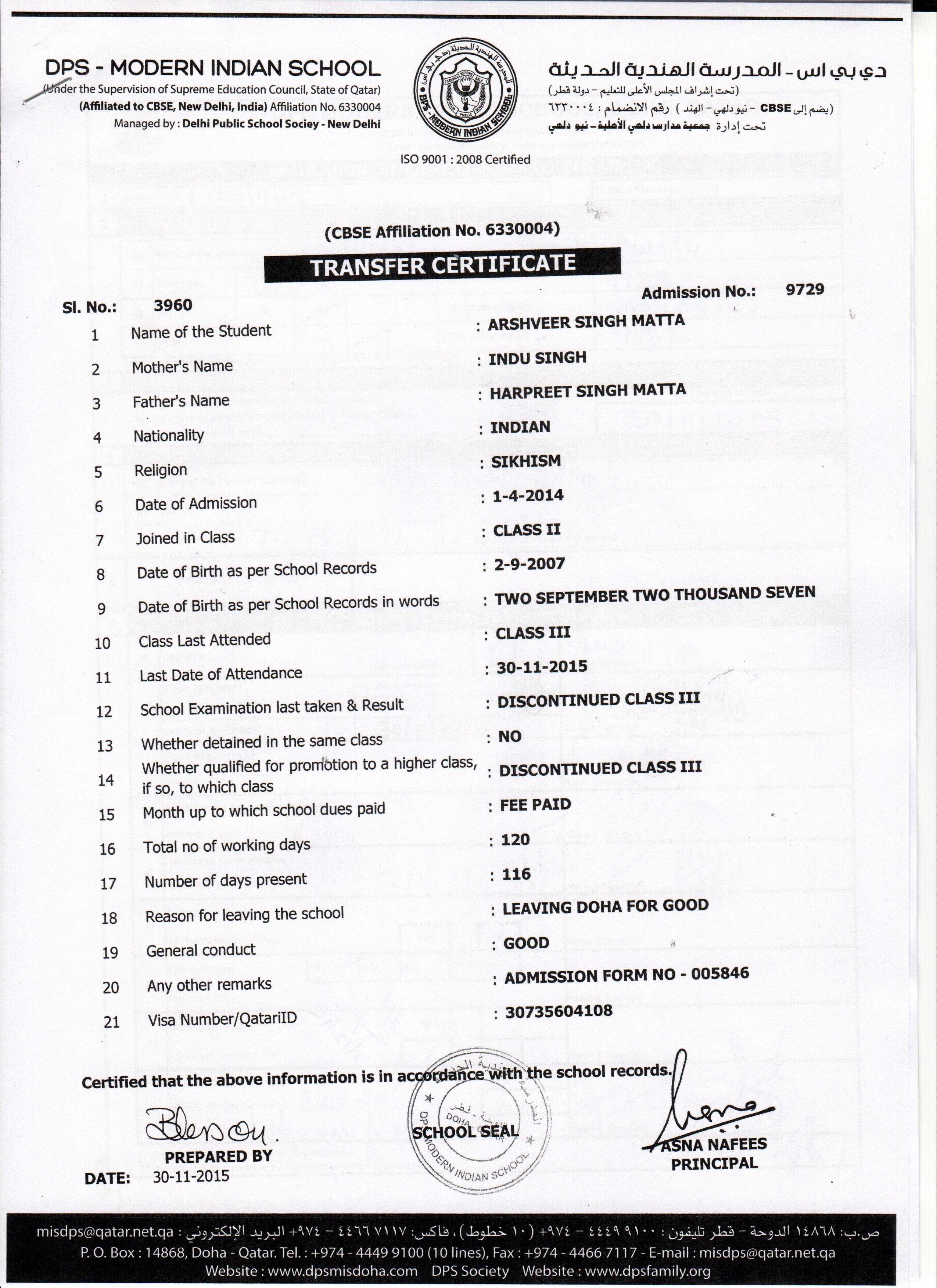 9729 Class III ARSHVEER SINGH MATTA