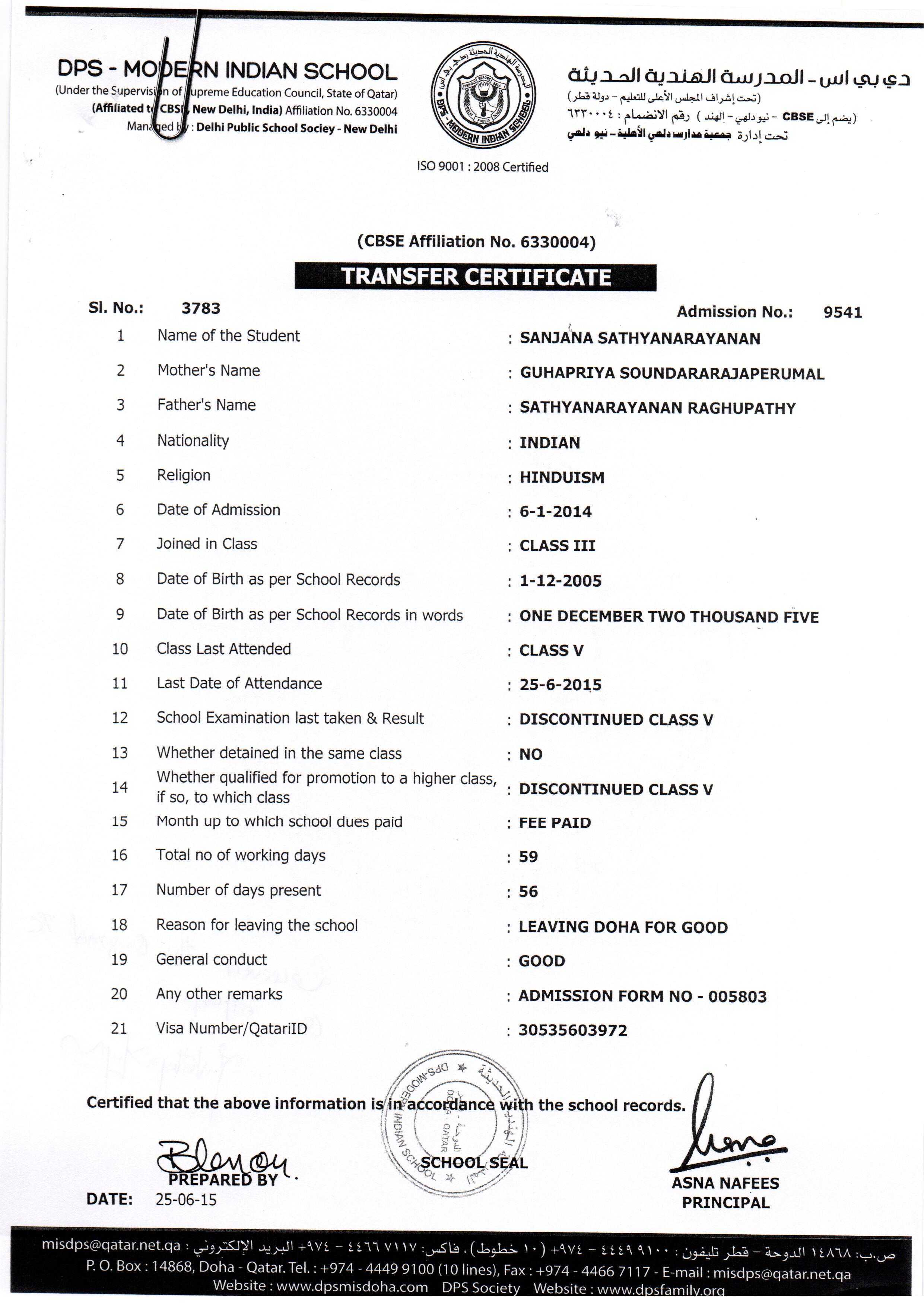 9541 Class V SANJANA SATHYANARAYANAN