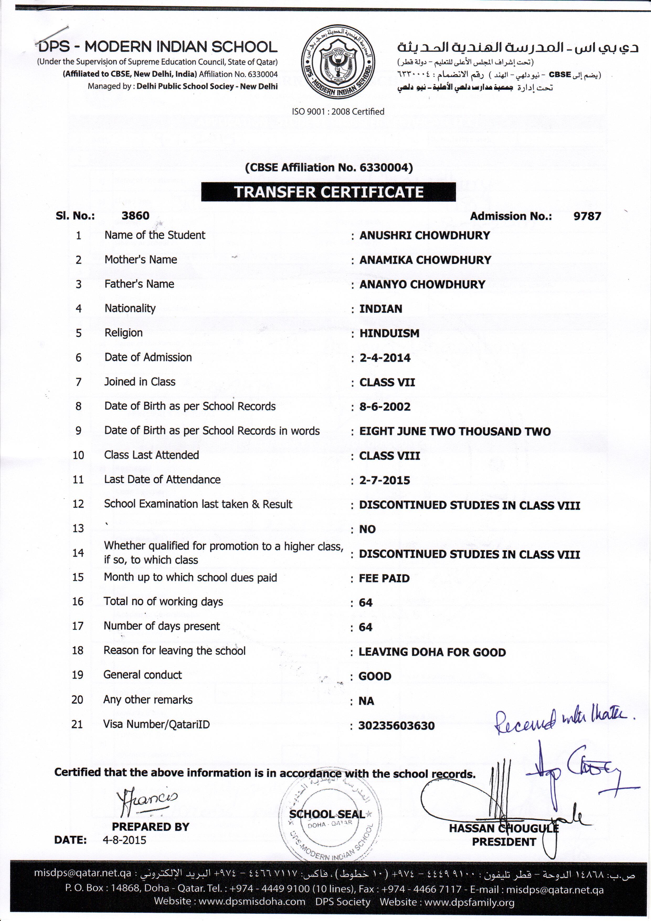9787 Class VIII ANUSHRI CHOWDHURY
